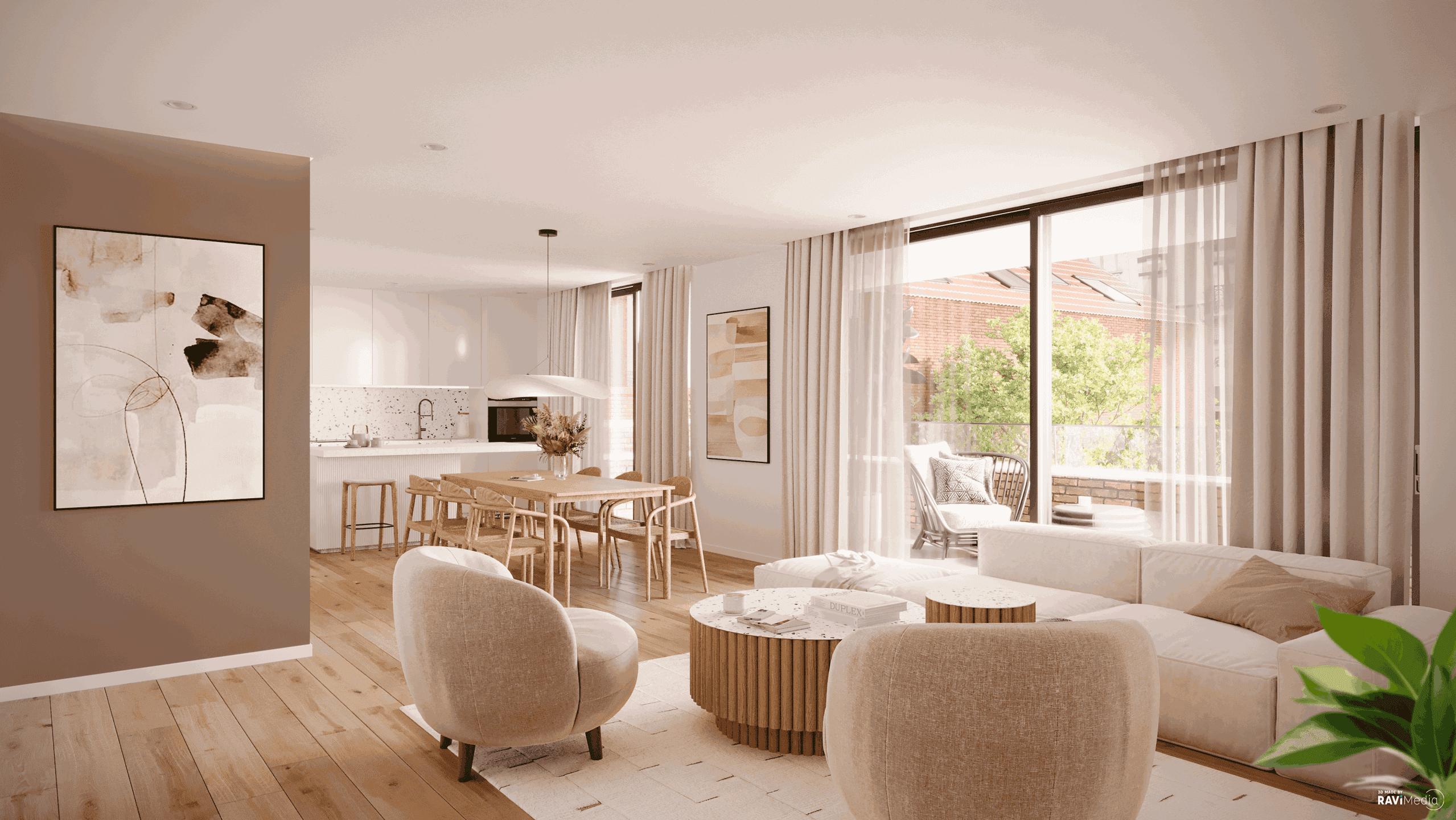 SAINT-GILLES - Located just a stone's throw from the Ma Campagne district, close to the Châtelain and a host of amenities (shops, schools, tram 81 and 97, bus 136), beautiful 138.8 m² DUPLEX APARTMENT (3bed/3shower) with a large 24 m² TERRACE and 104 m² GARDEN. Located on the ground and 1st floors, the ground floor comprises an entrance hall with cloakroom area and guest WC, a beautiful 38.3 m² living room with super-equipped open-plan kitchen opening onto the terrace and garden, and a utility room. A staircase leads to the upper floor, where a night hall leads to 3 large bedrooms (16, 11.5 and 12.5 m²), each with its own en suite shower room and own WC. With its classic contemporary architecture, the 5-storey building will win you over with its light, quality finishes and level of amenities (solar panels, dual-flow ventilation, high-performance insulation). EPB A- to B+. Cellar in addition. Parking optional. Bike room and stroller room available. Land sale subject to registration duty (12.5%) and construction subject to VAT (21%). Possibility of 6% VAT, subject to conditions. Find out more at L&P!