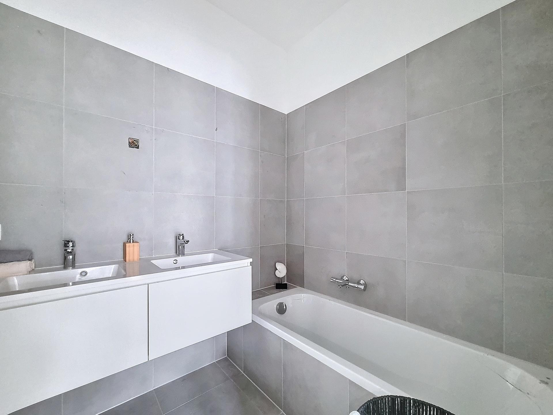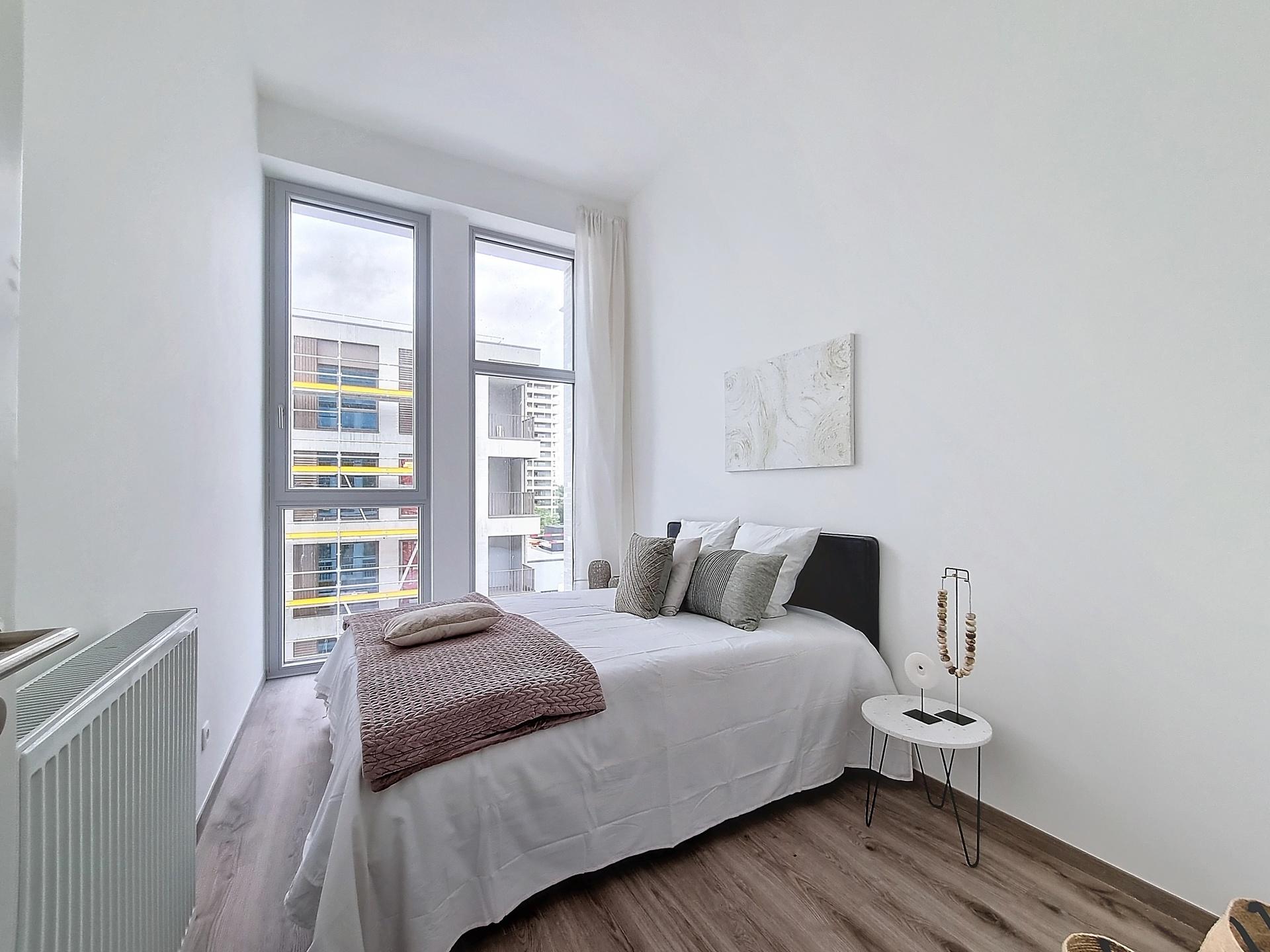 ANDERLECHT, in a fast developing area located between the Midi train station, the canal and Cureghem, and close to the Ring and all facilities, the NEW project "Grande-Île" offers you an APARTMENT (2bed/1bath) of 94,99 m² with TERRACE. Located on the 5th floor, it consists of an entrance hall with cloakroom, toilet and laundry room, a living room of 36 m² opening onto a terrace and a super-equipped open kitchen. Two bedrooms and a bathroom (double sink, bath).The building, with its contemporary architecture, offers a perfect combination of sustainability, energy savings (PEB 2019 requirements: 30% zero energy) and control of common charges. Pleasant common roof GARDEN and access to various gardens within the complex. PEB A. Cellar and 2 bicycle storages included and parking available at an additional cost. Sale of the land under registration rights (12,5%) and of the buildings under VAT (21%). To be discovered exclusively at L&P !