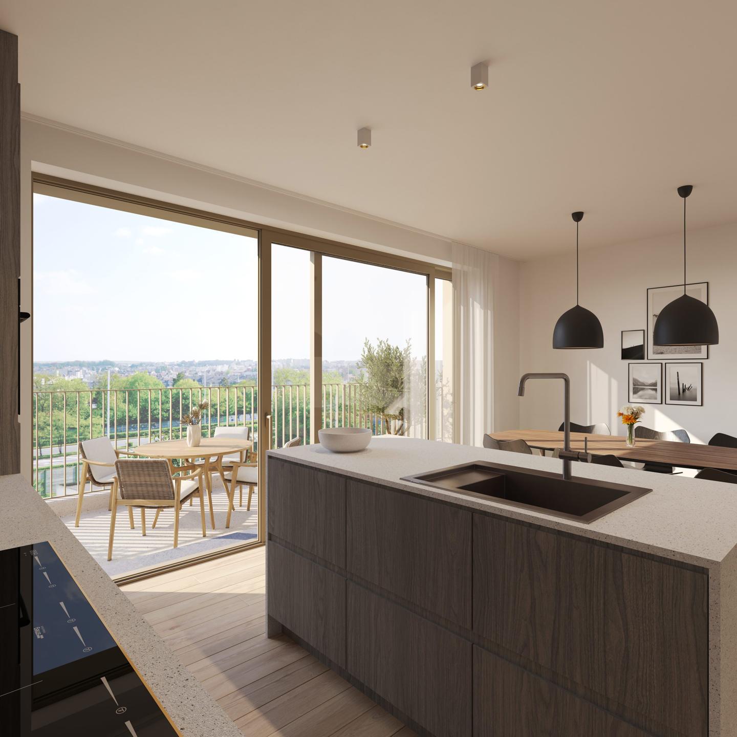 EVERE, on the edge of Woluwe-St-Lambert, in a dynamic and fast-developing neighbourhood, beautiful NEW APARTMENT (1bed/1shwr) of 73 m² with a south-west facing TERRACE of 10.6 m² and a beautiful SHARED GARDEN. Located on the 3rd floor, it consists of an entrance hall with cloakroom space and separate WC, a 31,7 m² living room with fully equipped open kitchen giving access to the terrace, a laundry room, and a 14 m² bedroom with its adjoining shower room (sink, shower). Ideally located, the apartment enjoys direct access to numerous amenities: NATO, E40, Ring, airport, bus, tram, train, shops, schools, parks and sports centres, offering a practical and pleasant living environment. Advanced energy performance and a strong focus on sustainability thanks to features such as solar panels, underfloor heating, heat pumps, double-flow ventilation, etc. EPC A. Cellar included and mandatory purchase of a parking space at extra cost. Secure shared bike room, including space for cargo bikes. Land sold under registration duties (12.5%) and construction under the VAT regime (21%). Possibility of 6% VAT, subject to conditions. Available exclusively at L&P!