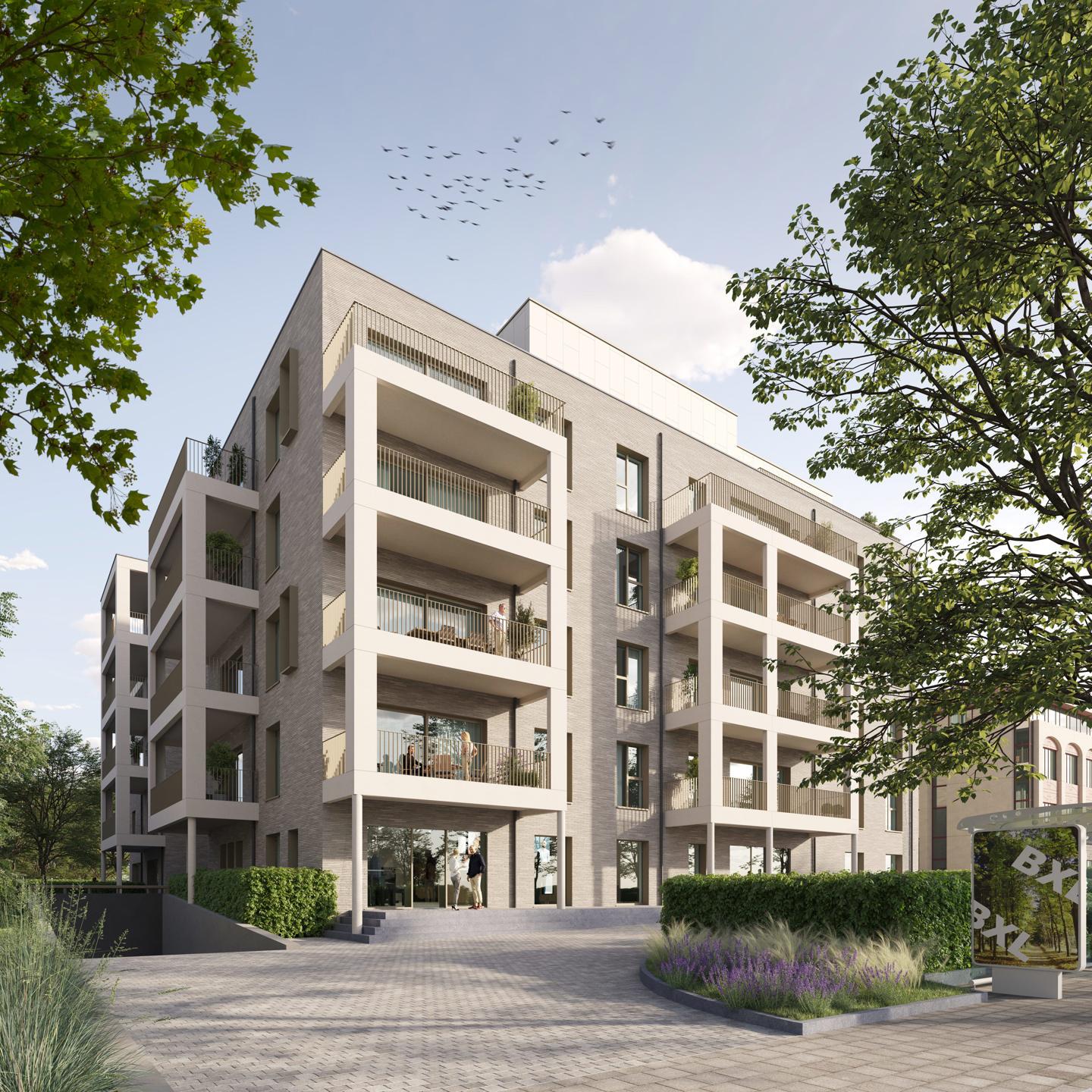 EVERE, on the edge of Woluwe-St-Lambert, in a dynamic and fast-developing neighbourhood, beautiful NEW APARTMENT (2bed/1shower) of 96.5 m² with a 12.6 m² TERRACE and a nice SHARED GARDEN. Located on the 2nd floor, it consists of an entrance hall with cloakroom area and separate toilet, a 30.2 m² living room with a fully equipped open kitchen leading to the terrace, two bedrooms of 14.8 and 9.6 m², a shower room (double sink, shower), and a large laundry room. Ideally located, the apartment enjoys direct access to numerous amenities (NATO, E40, Ring, airport, bus, tram, train, shops, schools, parks and sports centres), offering a practical and pleasant living environment. Advanced energy performance and a strong focus on sustainability thanks to features such as solar panels, underfloor heating, heat pumps, double-flow ventilation, etc. EPC A. Cellar included and mandatory purchase of a parking space at extra cost. Secure shared bike room, including space for cargo bikes. Land sold under registration duties (12.5%) and construction under the VAT regime (21%). Possibility of 6% VAT, subject to conditions. Available exclusively at L&P!