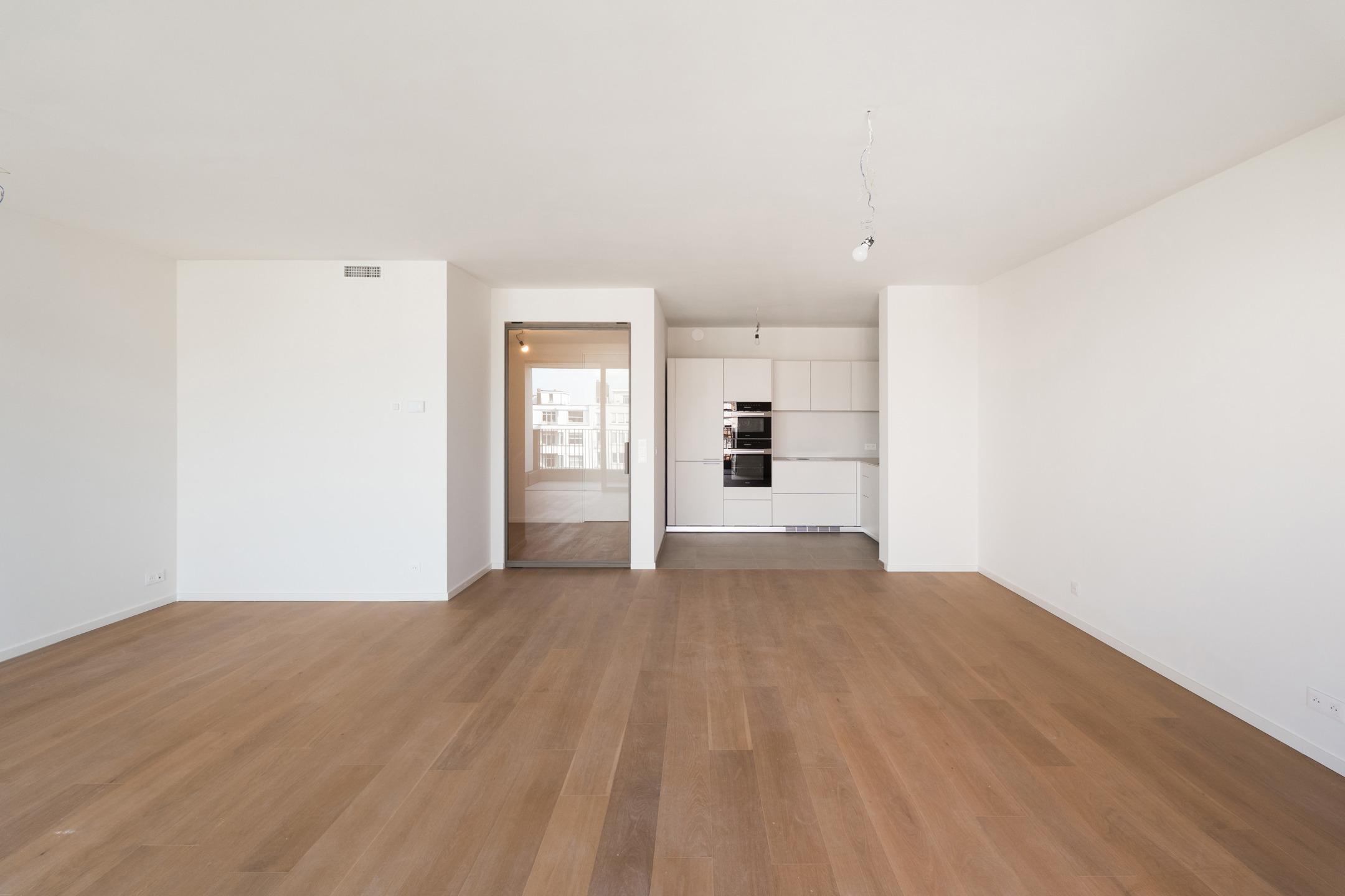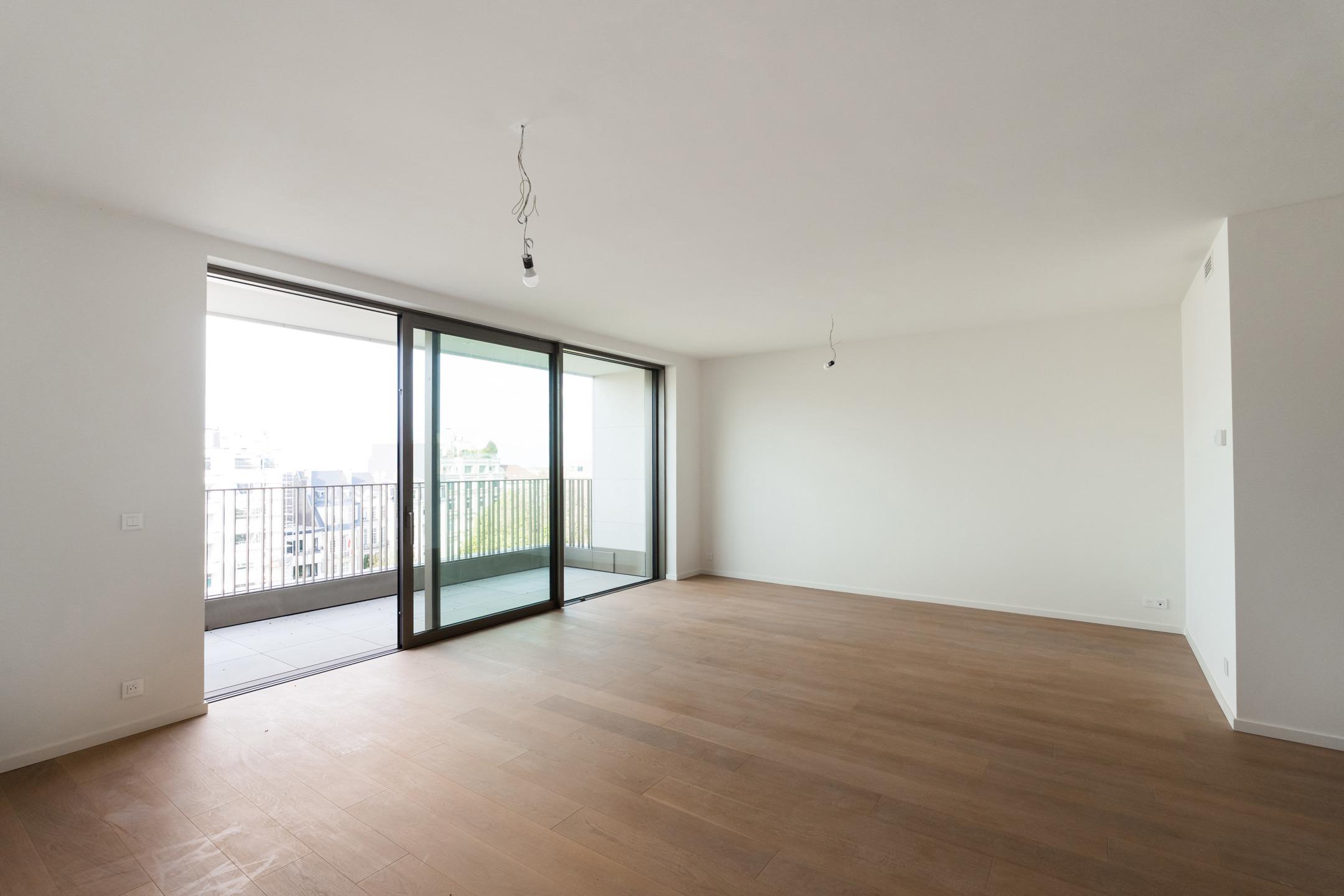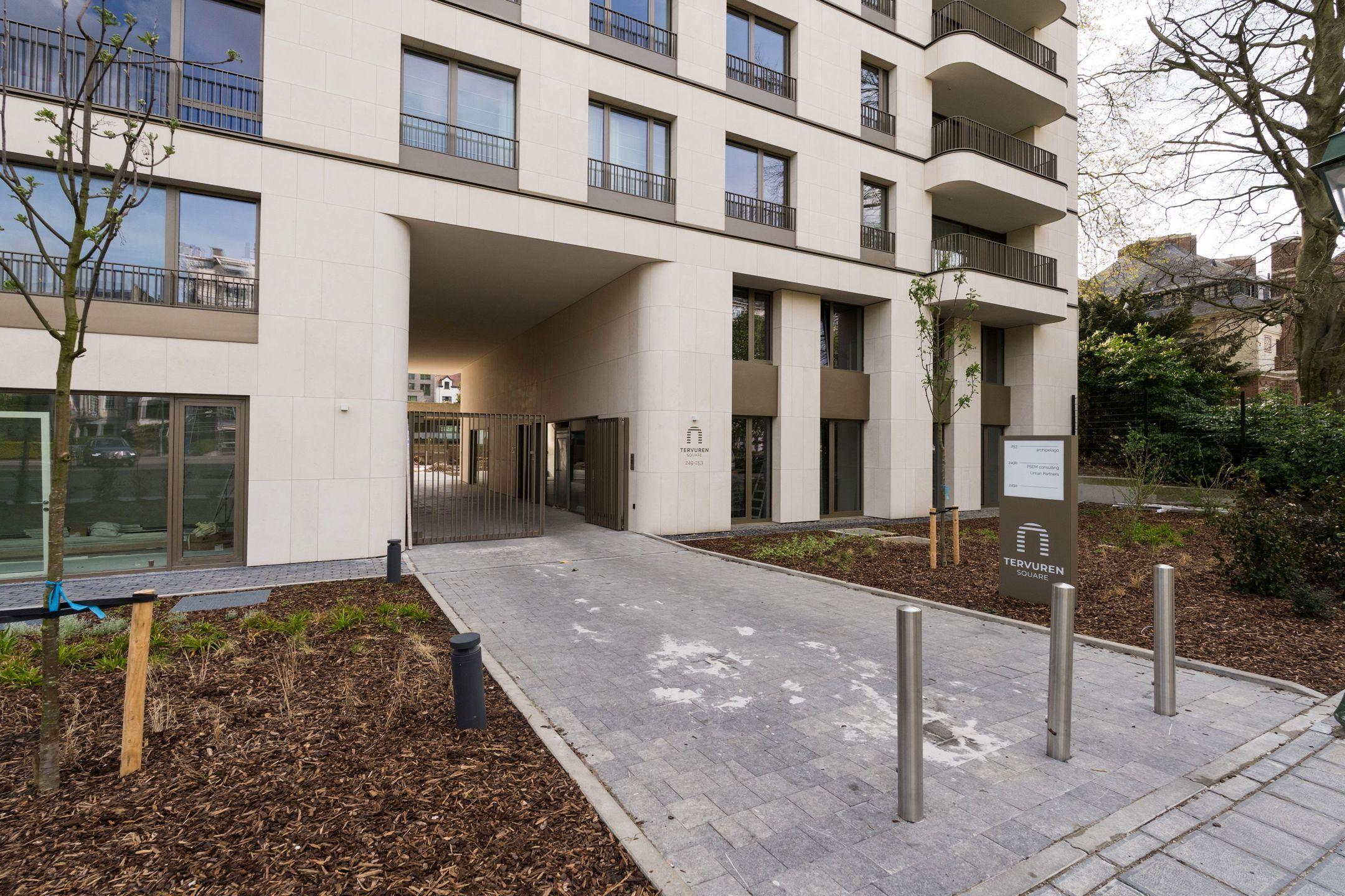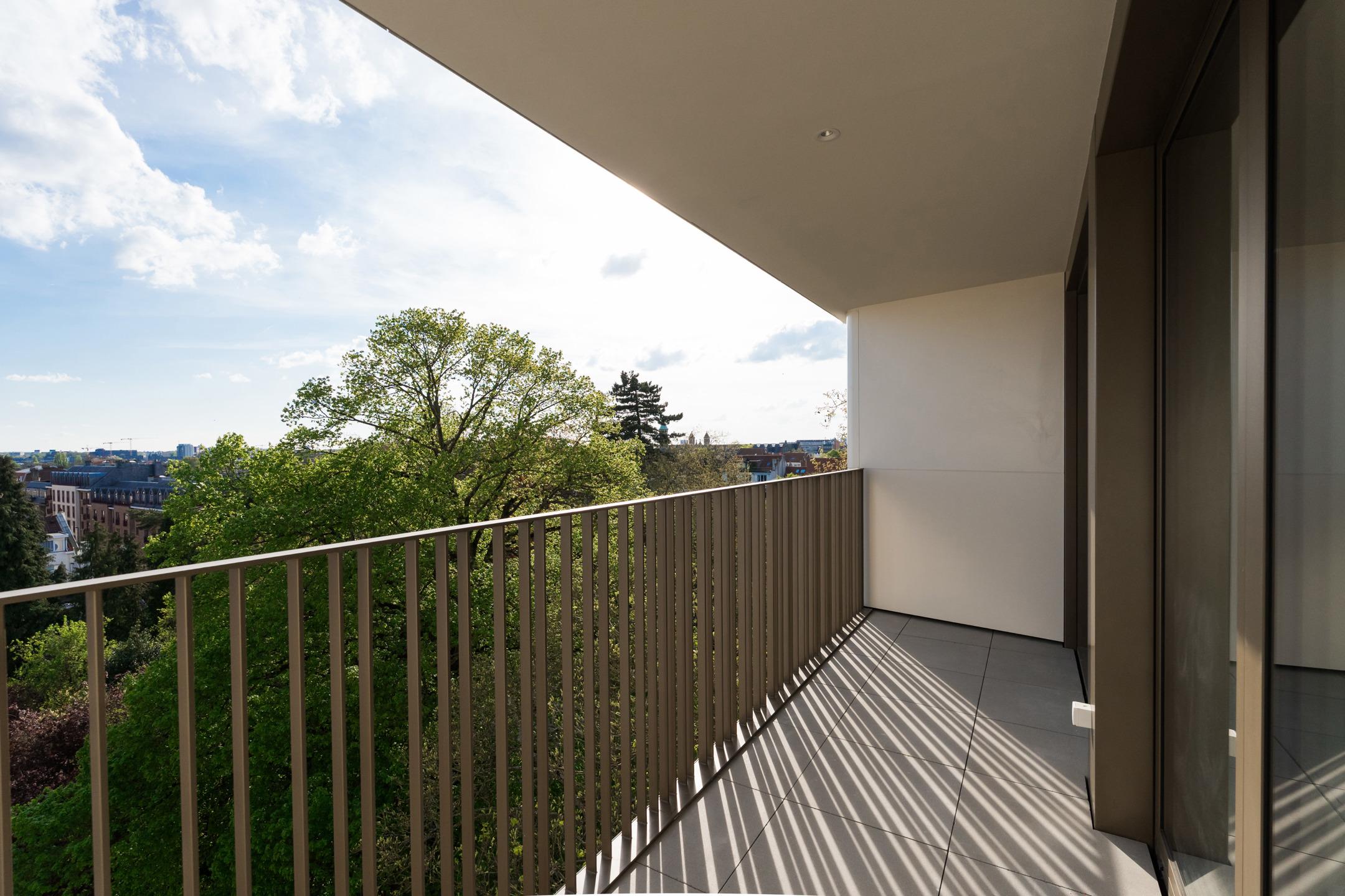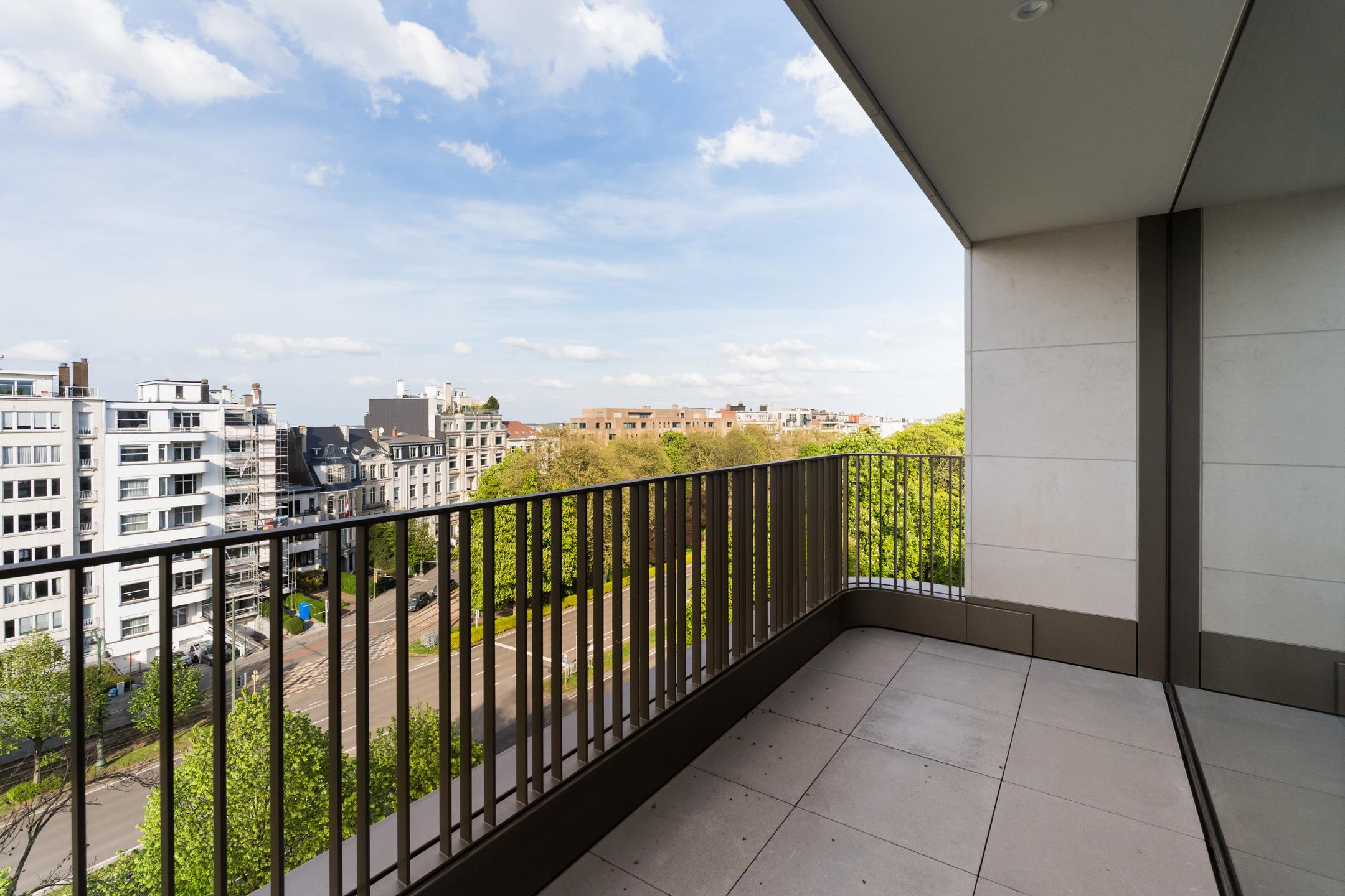 WOLUWE-SAINT-PIERRE - On the beautiful Tervueren Avenue, in the highly sought-after neighborhood between Montgomery Roundabout and the Mellaerts Ponds, spacious 133.5 m² APARTMENT (2 bdrms/1 bathrm/1 showerrm) of high standing, complemented by two TERRACES and a beautiful COMMUNAL GARDEN in the inner courtyard. Located on the 7th floor, it consists of an entrance hall with a cloakroom and guest toilet. Large living room with open, fully-equipped kitchen. Two beautiful bedrooms, one with an en-suite bathroom. Shower room in the night hall. Separate laundry room. Refined and timeless architecture with exceptional finish quality (reinforced doors, BULTHAUP kitchens, MIELE appliances, home automation system, underfloor heating,...). Built-in wardrobes, lighting and curtains included in the price. Furniture available at extra cost. Sustainable materials and the most advanced techniques to ensure optimal energy and acoustic performance (GEOTHERMAL ENERGY, thorough insulation, underfloor heating,...). EPC: A-. Mandatory cellar and parking at extra cost. Cargo bike and motorbike spaces included. Sale of land subject to registration duties (12.5%) and buildings subject to VAT (21%) Discover it at L&P!