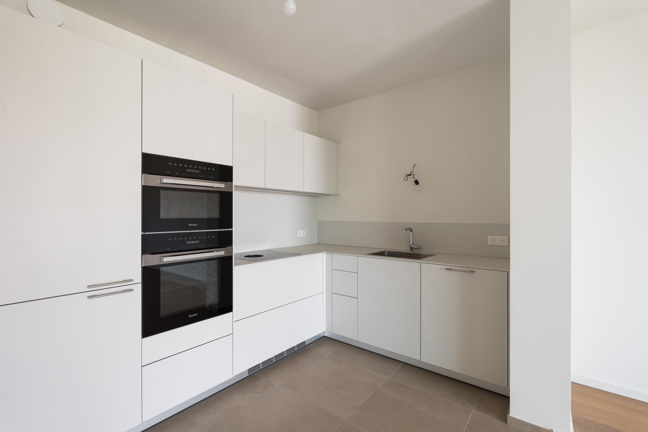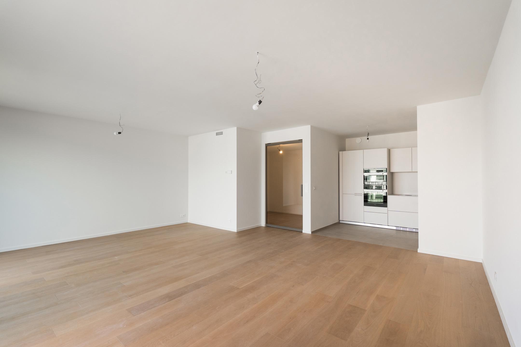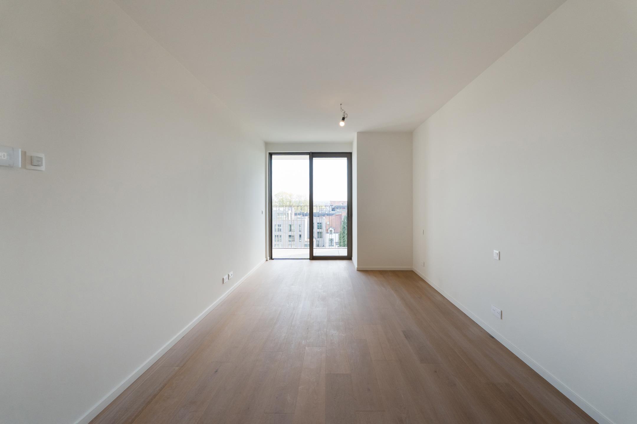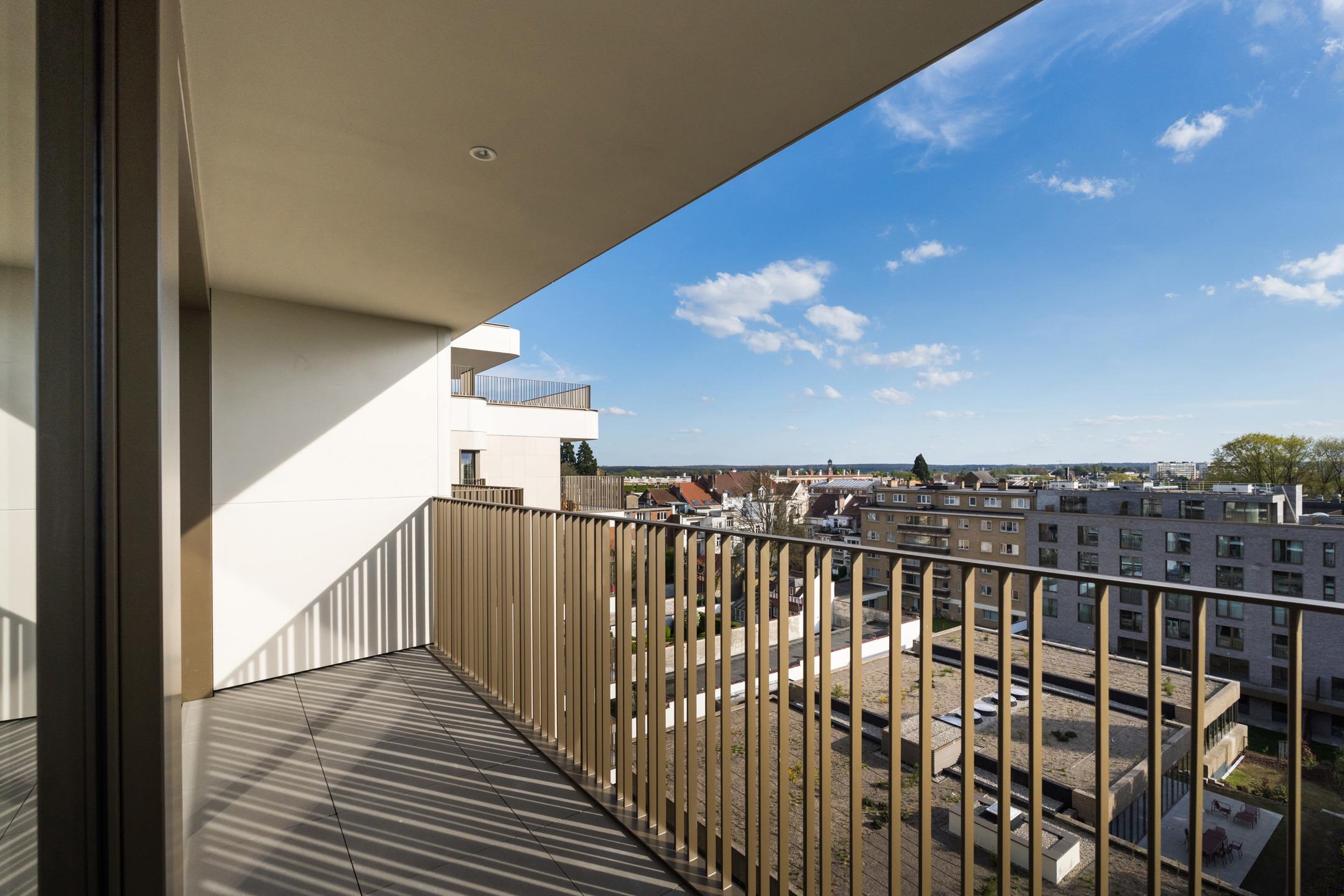 WOLUWE-SAINT-PIERRE - On the beautiful Tervueren Avenue, in the highly sought-after neighborhood between Montgomery Roundabout and the Mellaerts Ponds, spacious 133.5 m² APARTMENT (2 bdrms/1 bathrm/1 showerrm) of high standing, complemented by two TERRACES and a beautiful COMMUNAL GARDEN in the inner courtyard. Located on the 7th floor, it consists of an entrance hall with a cloakroom and guest toilet. Large living room with open, fully-equipped kitchen. Two beautiful bedrooms, one with an en-suite bathroom. Shower room in the night hall. Separate laundry room. Refined and timeless architecture with exceptional finish quality (reinforced doors, BULTHAUP kitchens, MIELE appliances, home automation system, underfloor heating,...). Built-in wardrobes, lighting and curtains included in the price. Furniture available at extra cost. Sustainable materials and the most advanced techniques to ensure optimal energy and acoustic performance (GEOTHERMAL ENERGY, thorough insulation, underfloor heating,...). EPC: A-. Mandatory cellar and parking at extra cost. Cargo bike and motorbike spaces included. Sale of land subject to registration duties (12.5%) and buildings subject to VAT (21%) Discover it at L&P!