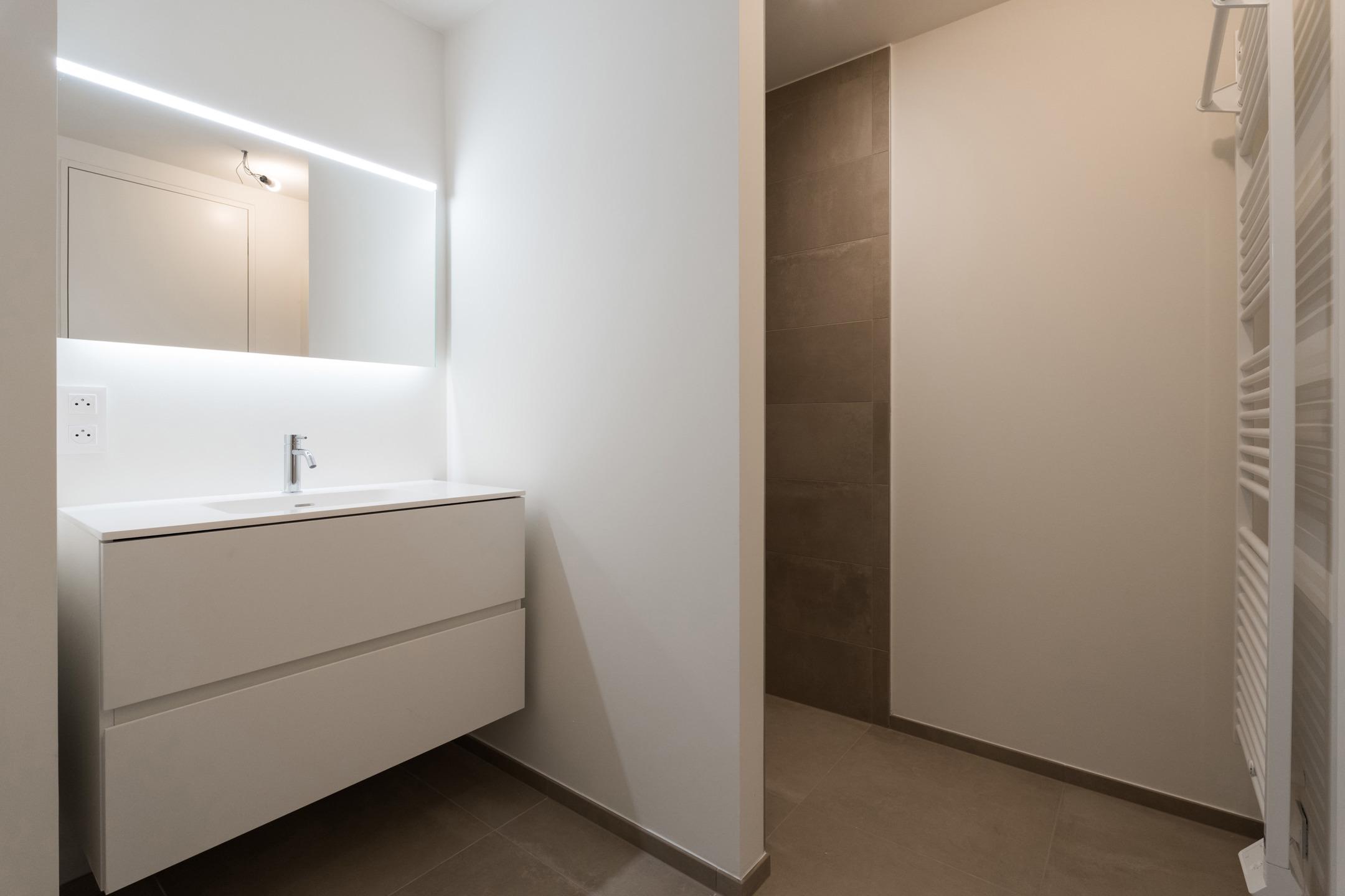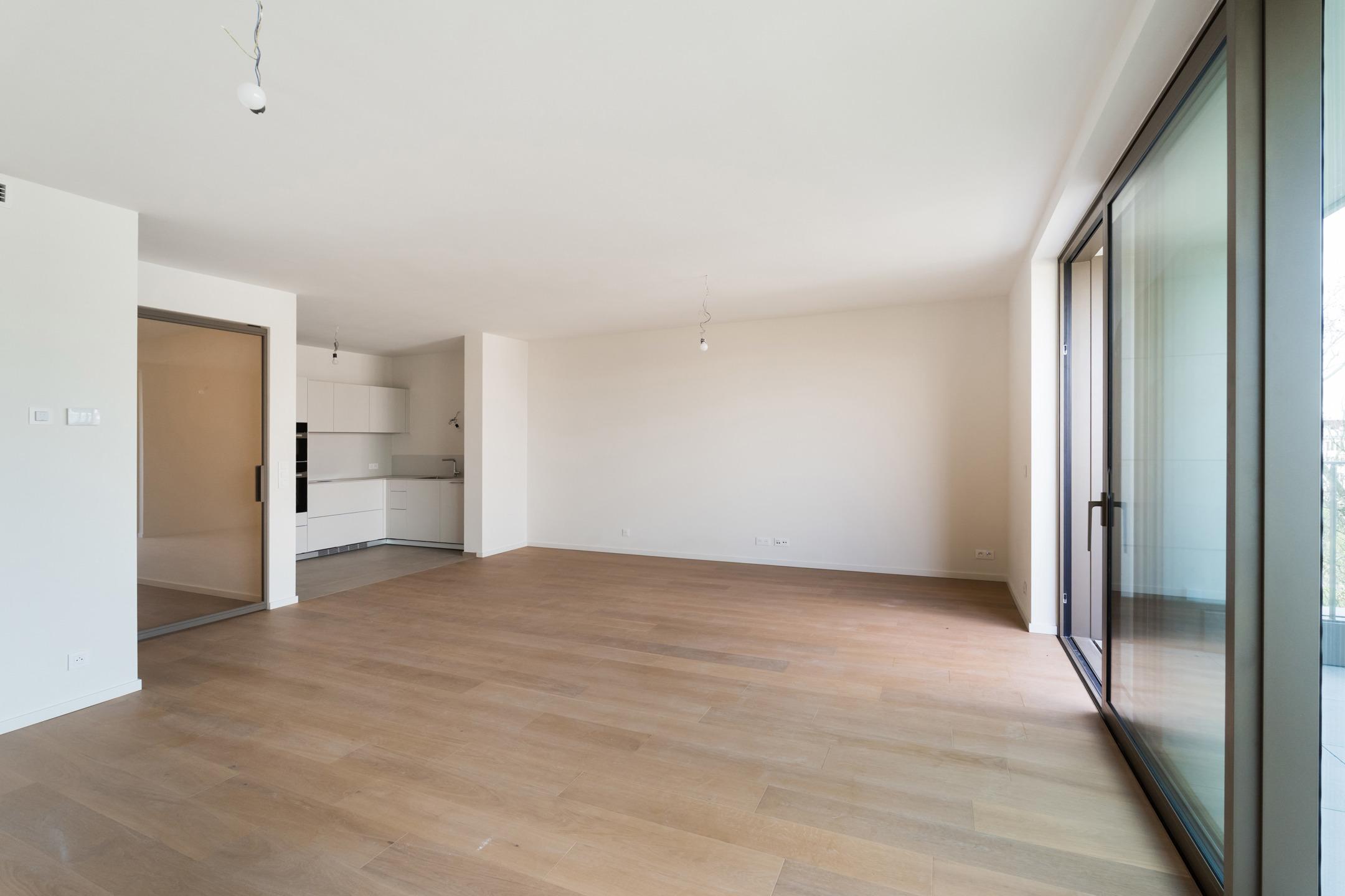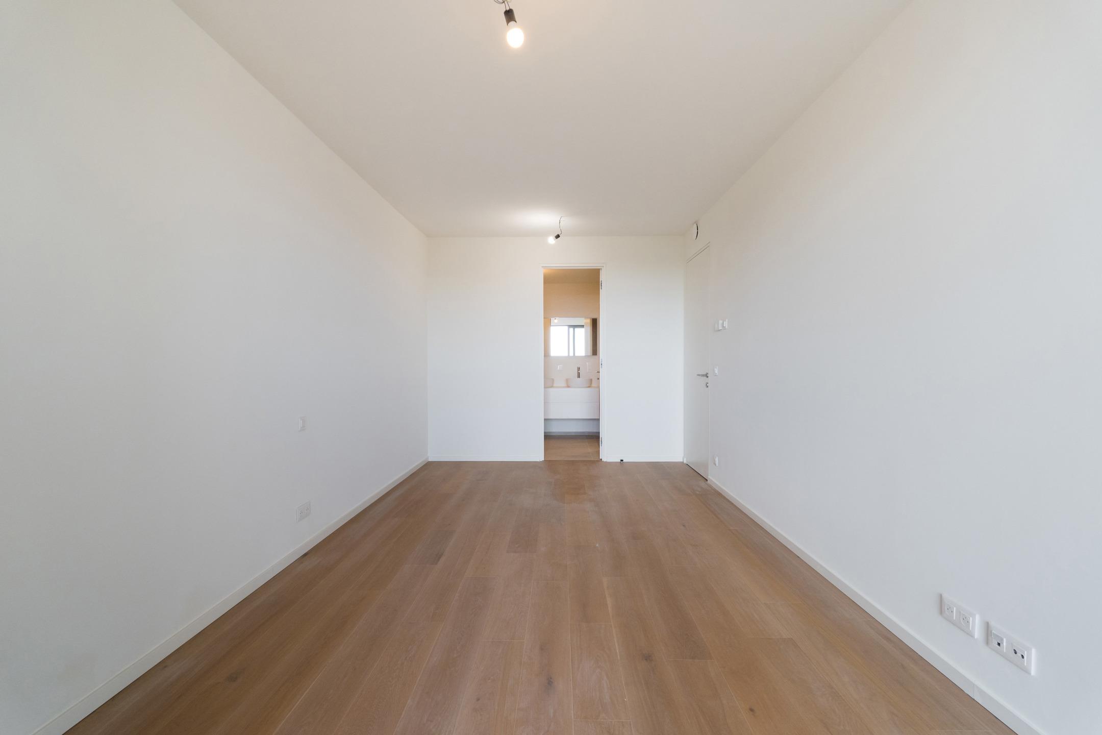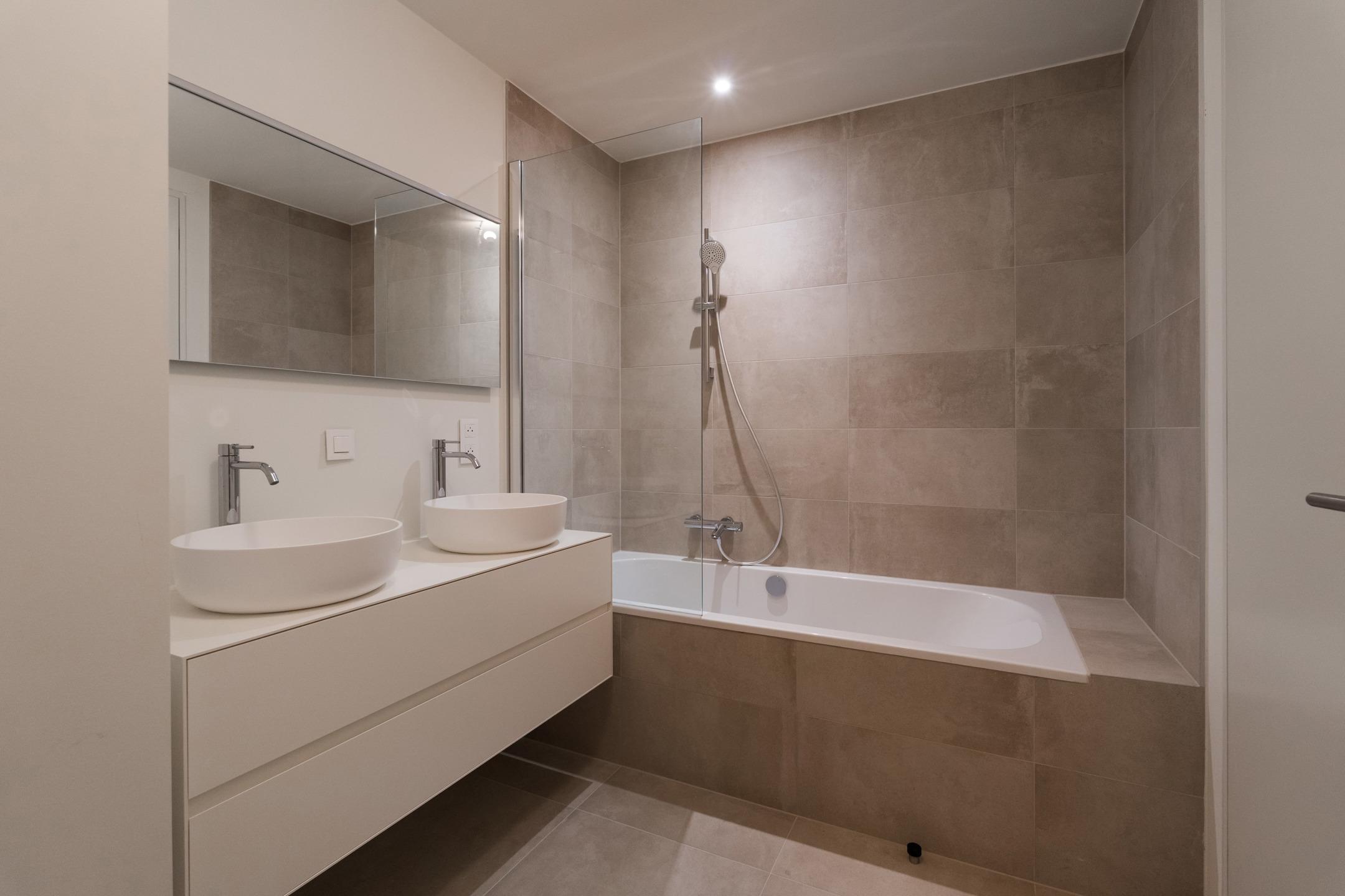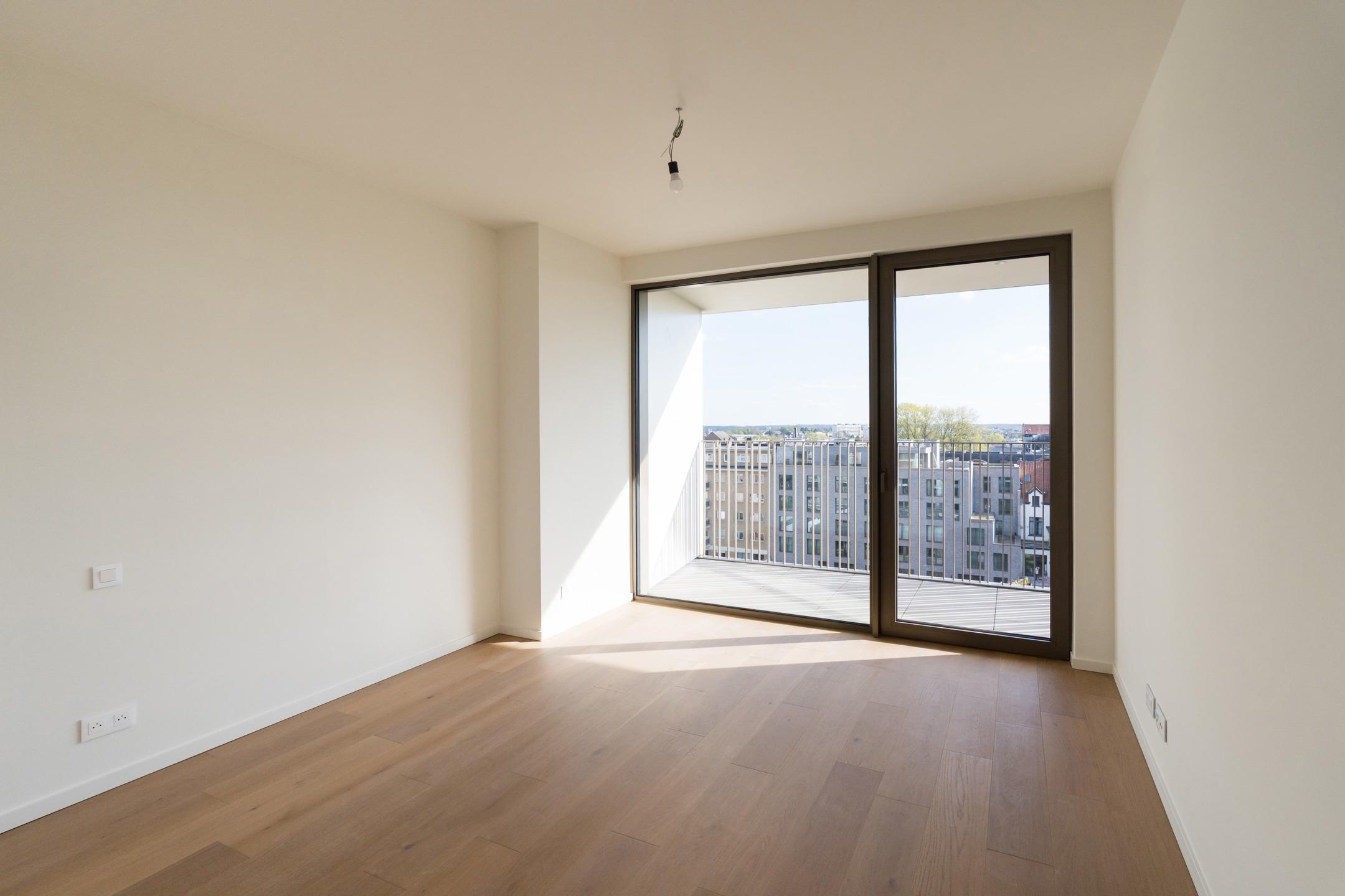 WOLUWE-SAINT-PIERRE - On the beautiful Tervueren Avenue, in the highly sought-after neighborhood between Montgomery Roundabout and the Mellaerts Ponds, spacious 133.5 m² APARTMENT (2 bdrms/1 bathrm/1 showerrm) of high standing, complemented by two TERRACES and a beautiful COMMUNAL GARDEN in the inner courtyard. Located on the 7th floor, it consists of an entrance hall with a cloakroom and guest toilet. Large living room with open, fully-equipped kitchen. Two beautiful bedrooms, one with an en-suite bathroom. Shower room in the night hall. Separate laundry room. Refined and timeless architecture with exceptional finish quality (reinforced doors, BULTHAUP kitchens, MIELE appliances, home automation system, underfloor heating,...). Built-in wardrobes, lighting and curtains included in the price. Furniture available at extra cost. Sustainable materials and the most advanced techniques to ensure optimal energy and acoustic performance (GEOTHERMAL ENERGY, thorough insulation, underfloor heating,...). EPC: A-. Mandatory cellar and parking at extra cost. Cargo bike and motorbike spaces included. Sale of land subject to registration duties (12.5%) and buildings subject to VAT (21%) Discover it at L&P!