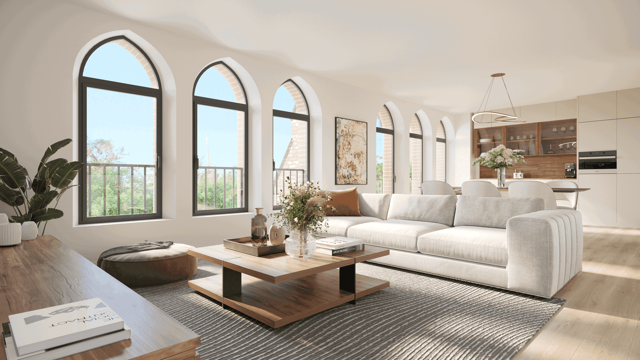UCCLE - In the charming, quiet residential area of Parvis Chantecler (with numerous schools, playground, Linkebeek and Moensberg train stations and bus services), beautiful 79.5 m² APARTMENT (1bed/1shower) with a lovely SHARED GARDEN. Located on the 2nd floor, it comprises an entrance hall with separate WC and utility room, a large living room with super-equipped open-plan kitchen, a bedroom and en-suite shower room (washbasin, shower). The apartment is part of an exceptional TOTAL REDEVELOPMENT project of the SAINT-JOSEPH CHURCH. This extensive renovation preserves the building's structure and character while offering contemporary and bright living spaces, high-quality finishes, and a high level of acoustic and thermal insulation. EPC from B to C. Cellar included. Parking required at an additional cost. Bicycle parking and secure bike storage area provided. Sale of the land subject to registration fees (12.5%) and the construction subject to VAT (21%). Possibility of 6% VAT, subject to conditions. Discover it now with L&P!