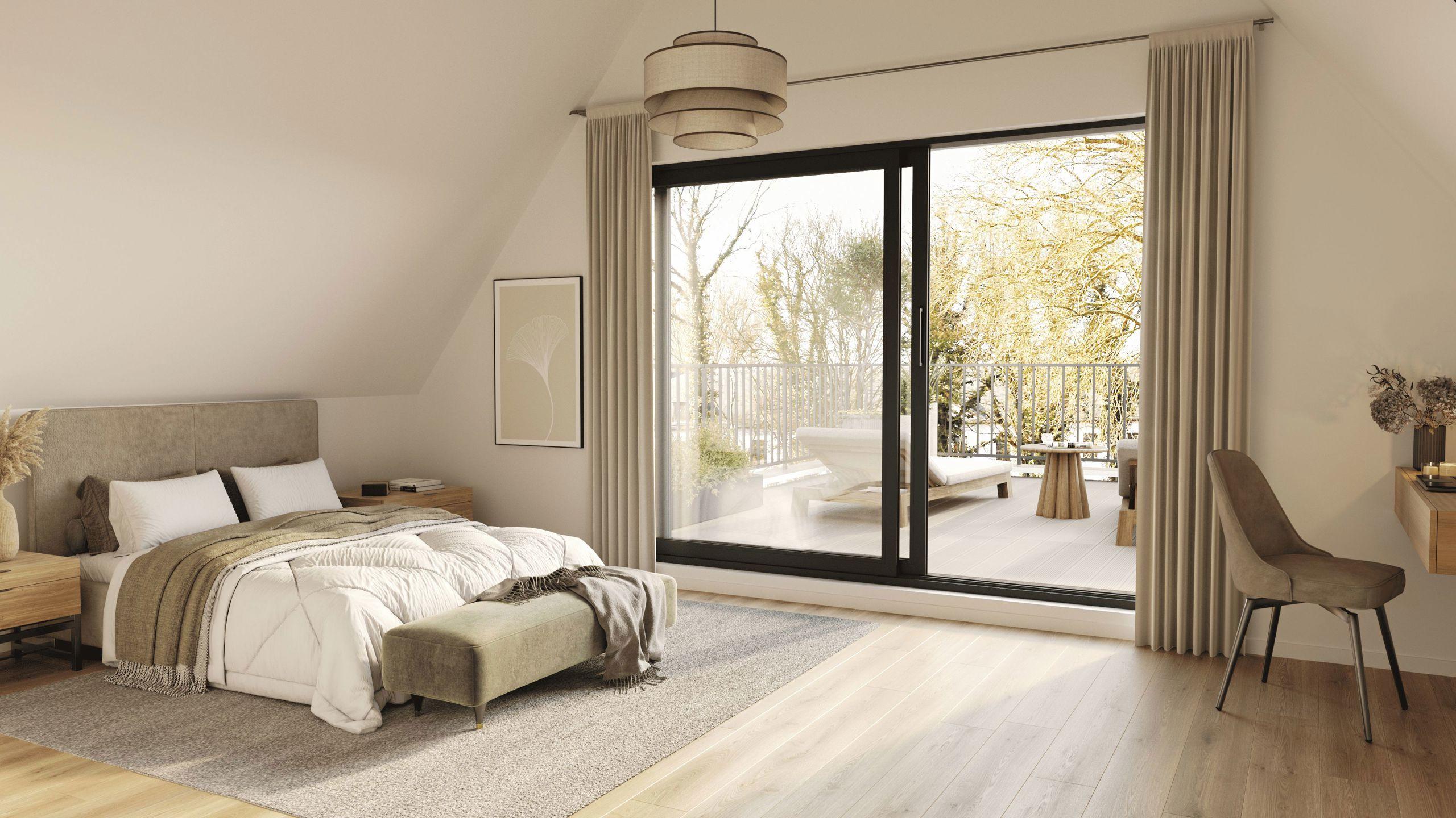 UCCLE - In the charming, quiet residential area of Parvis Chantecler (with numerous schools, playground, Linkebeek and Moensberg train stations and bus services), beautiful 130 m² APARTMENT (2bed/1bath/1shower) with a 5 m² TERRACE and a BALCONY that are perfectly oriented, as well as a lovely SHARED GARDEN. Located on the 1st floor, it comprises an entrance hall with cloakroom, guest WC and utility room, a large living room with super-equipped open-plan kitchen opening onto the south-east-facing terrace, a pantry, a master suite comprising a bedroom opening onto the south-west-facing balcony, a dressing room, a bathroom (washbasin, bath, WC), a second bedroom and its en suite shower room (washbasin, shower). The apartment is part of an exceptional TOTAL REDEVELOPMENT project of the SAINT-JOSEPH CHURCH. This extensive renovation preserves the building's structure and character while offering contemporary and bright living spaces, high-quality finishes, and a high level of acoustic and thermal insulation. EPC from B to C. Cellar included. Parking required at an additional cost. Bicycle parking and secure bike storage area provided. Sale of the land subject to registration fees (12.5%) and the construction subject to VAT (21%). Possibility of 6% VAT, subject to conditions. Discover it now with L&P!