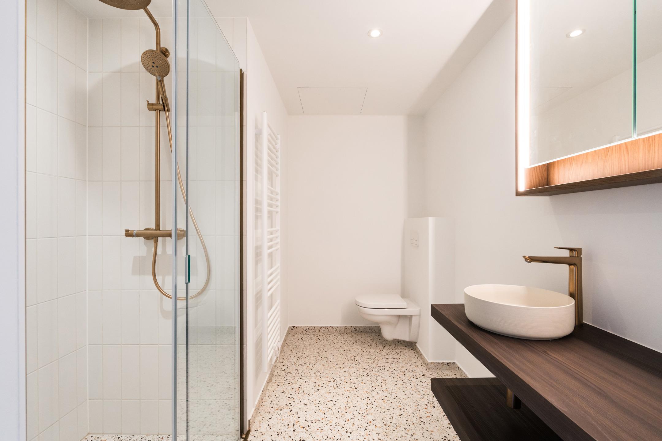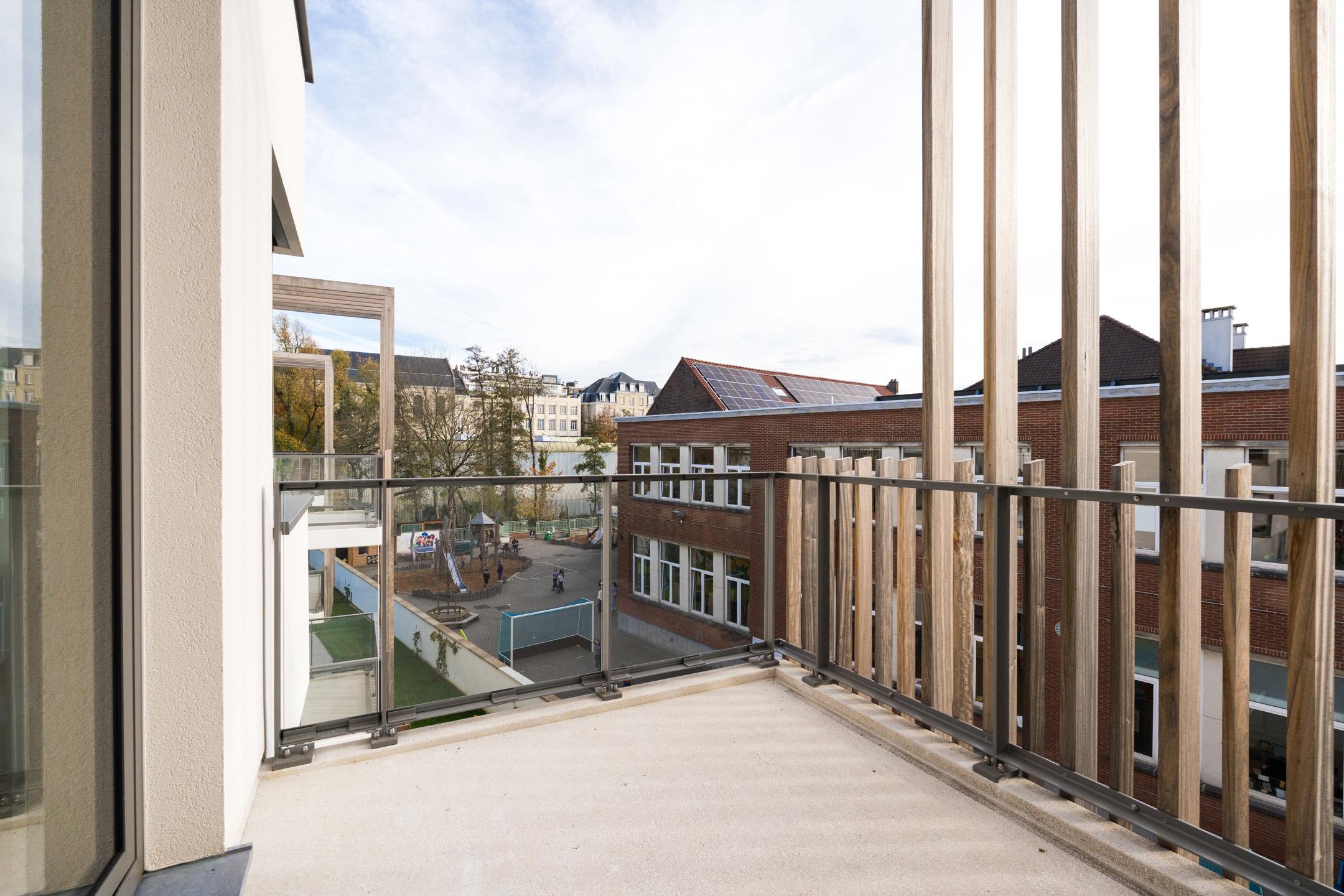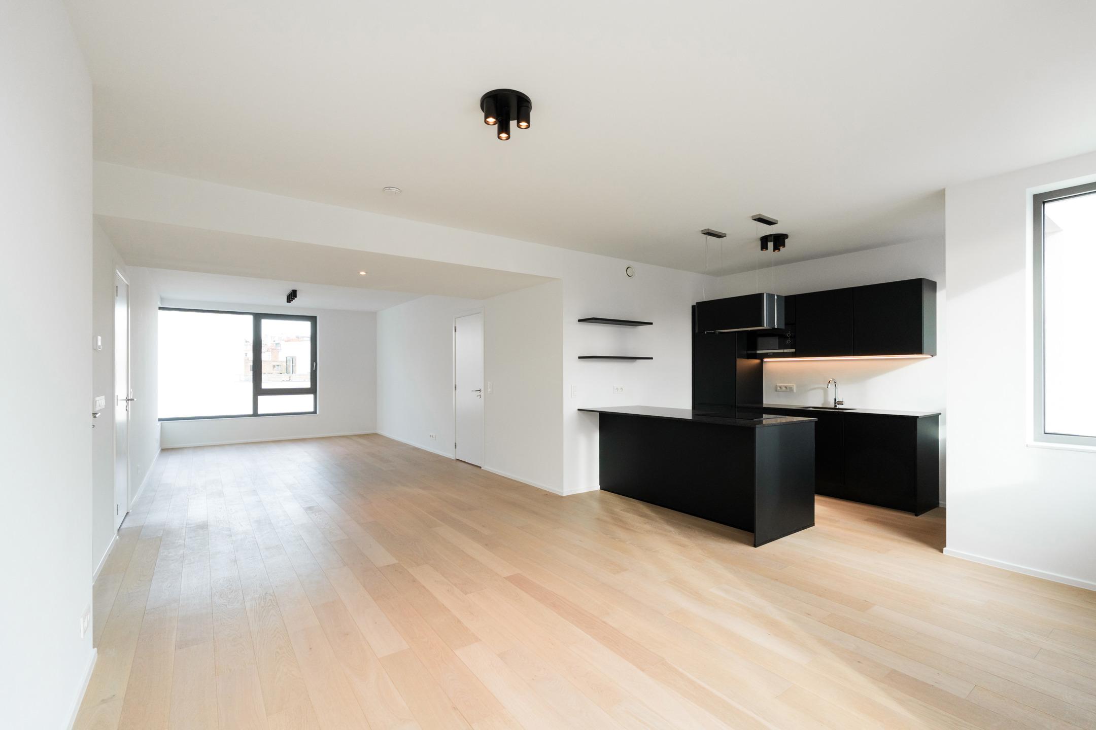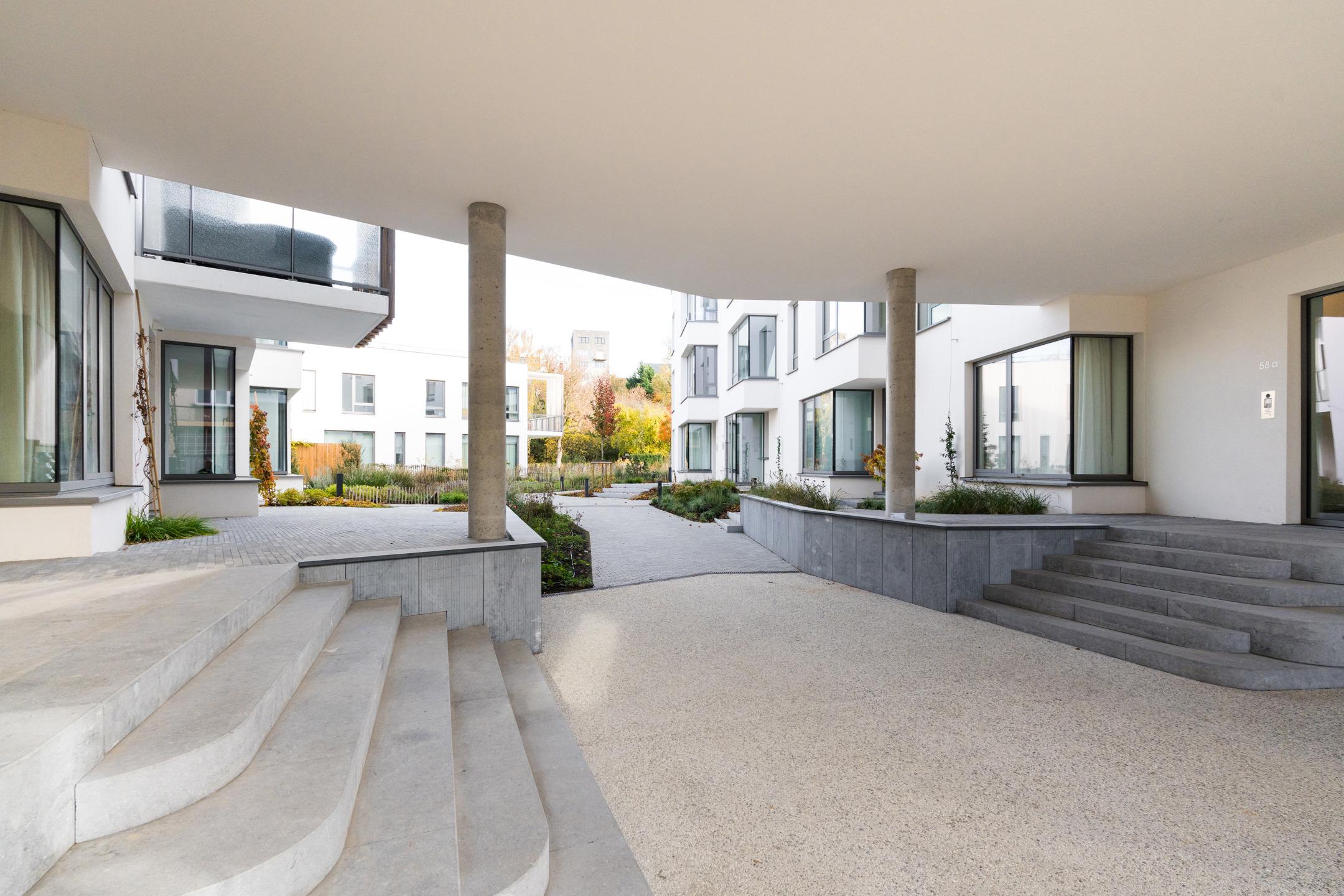 UCCLE - located between Square Coghen and Rue du Doyenné, just a stone's throw from Parvis Saint-Pierre, superb 66 m² NEW APARTMENT (2bed/1bath/1shower) of 113 m² with 8 m² south-facing TERRACE. Located on the 2nd floor of a small, modernist-inspired building, it comprises an entrance hall with guest WC and utility room, a bright 48 m² living room opening onto the terrace, a super-equipped open-plan kitchen, a master bedroom with en suite shower room (washbasin, shower, bronze taps, WC) and a second bedroom with en suite bathroom (washbasin, bath, bronze taps) adjoining a laundry room. It also benefits from a superb, secure SHARED GARDEN and boasts high-quality interior finishes and excellent energy performance (HEAT PUMP, UNDERGROUND HEATING, high levels of insulation). EPB A. Cellar included. Car and cargo bike parking available at extra cost. Sale subject to 21% VAT. Possibility of 6% VAT, subject to conditions. Find out more at L&P !