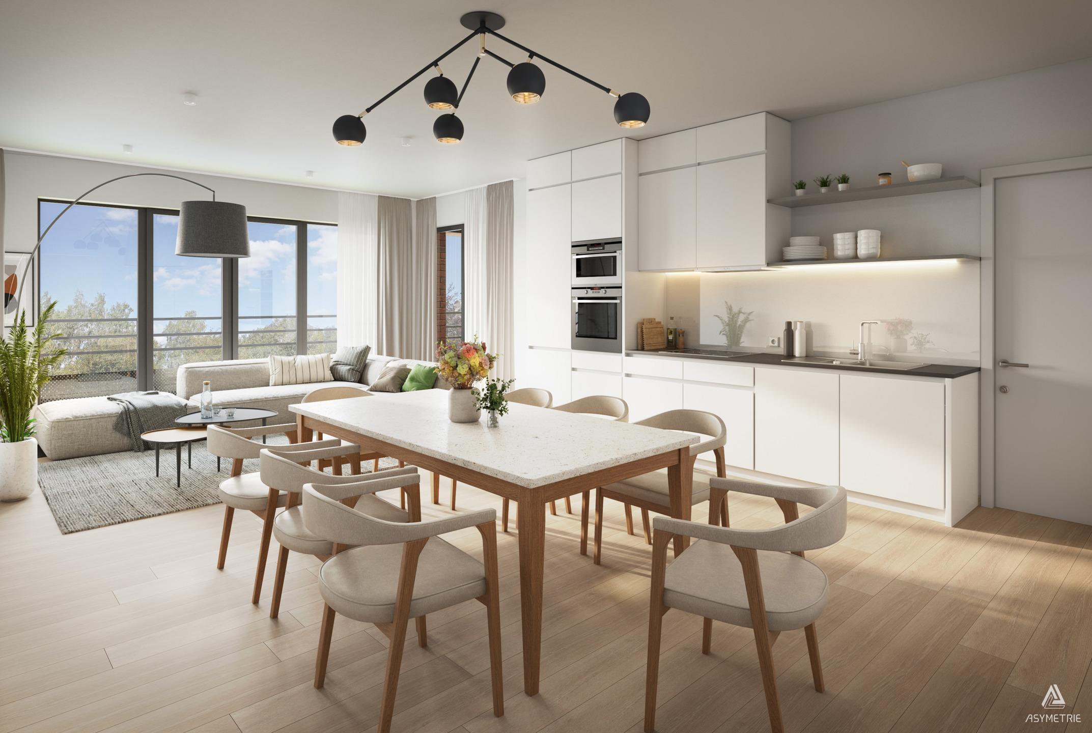 FOREST, close to Parc Duden, Forest Abbey and a host of facilities (shops, train, tram, bus), in a particularly quiet, family-friendly setting, beautiful 93.8 m² APARTMENT (2bed/1bath/1shower) with a large 40.7 m² corner TERRACE running the length of the flat, and a secure SHARED GARDEN in the backyard. Located on the 3rd floor, it comprises an entrance hall with cloakroom area and guest WC, a 29.9 m² living room with super-equipped open-plan kitchen, a night hall, a 14.8 m² master bedroom with en suite shower room (double washbasin, shower), a second 9.8 m² bedroom, a bathroom (washbasin, bath, WC) and a utility room. The living room and the two bedrooms open onto the terrace via large bay windows that let in plenty of light. The building meets today's comfort and sustainability criteria : maximum thermal and acoustic insulation, economical heating, double-flow ventilation. EPB A and B. Cellar and parking in addition. Sale of the land subject to 12.5% registration duty and the buildings subject to 21% VAT (6% VAT possible subject to certain conditions !!). Find out more at L&P !