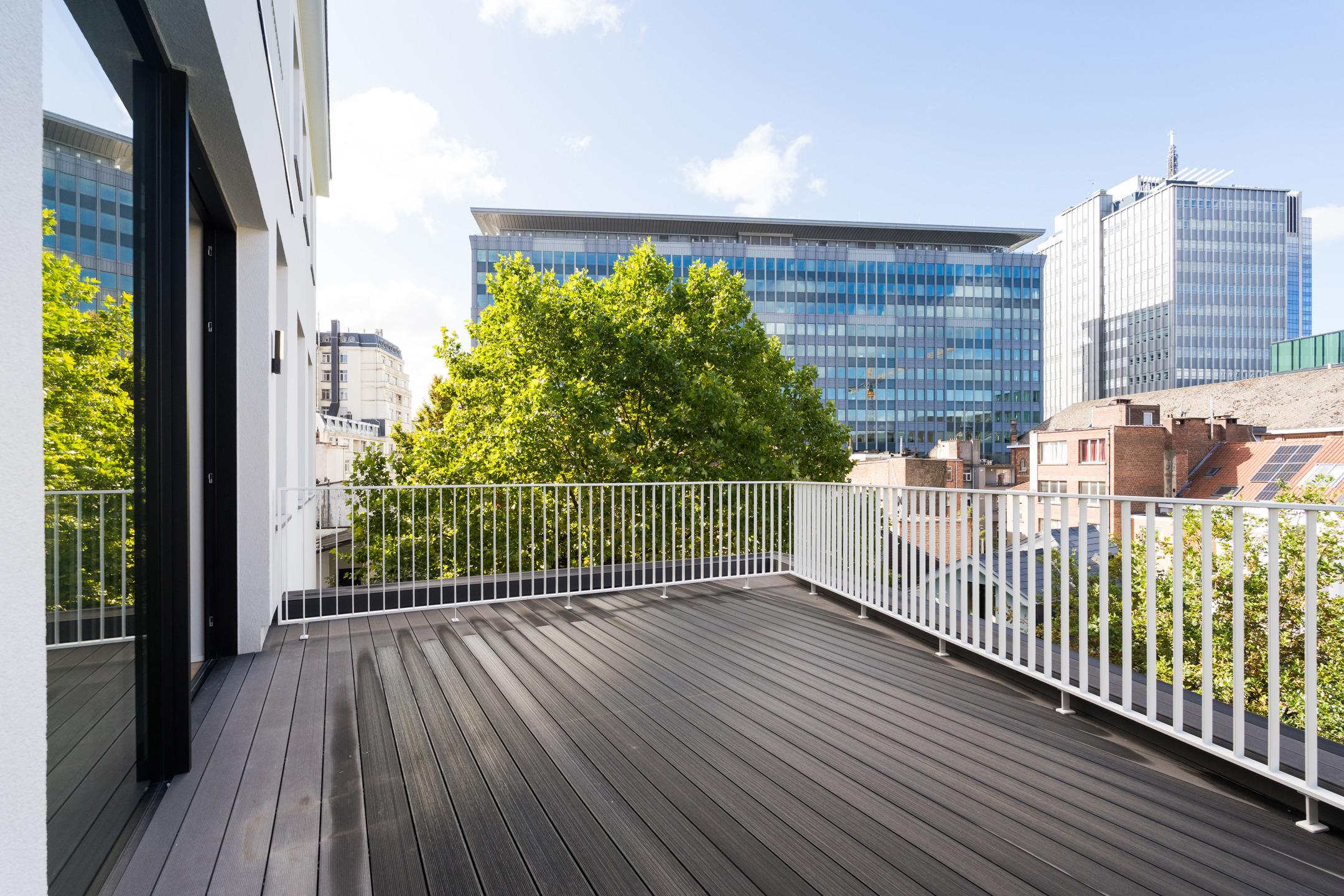 Located in the heart of Brussels, just steps from the Botanique and a few minutes from the European institutions, this stunning high-end APARTMENT (2bed/2shower) of 115 m² with a 9 m² terrace, is set within a REMARKABLE HISTORIC BUILDING that has undergone an extensive renovation. Located on the 2nd floor, it consists of an entrance hall with a cloakroom area, a beautiful 42 m² living room with fully equipped open kitchen opening onto the west-facing terrace. Two bedrooms (16 and 12 m²) each with its own en-suite shower room. A separate toilet, a laundry room and a technical room. Elegantly combining the timeless charm of period architecture (majestic hall, stained-glass dome, high ceilings, moldings...) with the latest comfort and performance technologies (solar panels, low-consumption heat pumps, underfloor heating, acoustic floors...), this apartment stands out for the impeccable quality of its renovation and its top-of-the-range features. It benefits from luxurious finishes designed down to the smallest detail: custom-made fittings and a refined atmosphere, for a uniquely comfortable daily life. EPC : B+. CELLAR INCLUDED. Sale under registration duties (12.5%). A rare opportunity to discover at L&P!