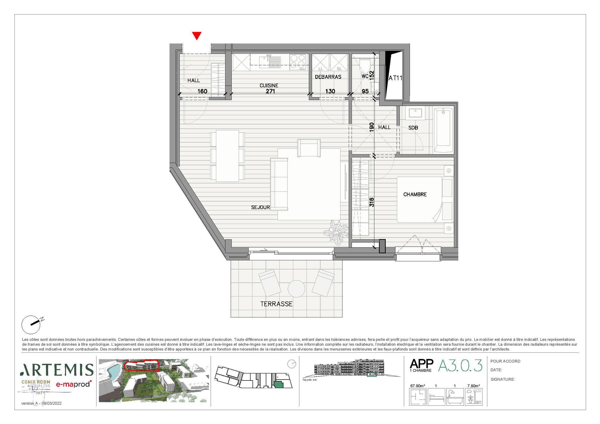 JAMBES – Dans un écrin de verdure, bel appartement contemporain (1CH/1SDB) de 67,90 m² situé au rez-de-chaussée de la résidence « ARTEMIS ». Il se compose d’une buanderie, d’un beau séjour de 32,70 m² avec cuisine ouverte donnant accès à la terrasse de 7,80 m², un hall de nuit, une salle d’eau et de 1 chambre. Vue verdoyante et dégagée. Châssis double vitrage en alu, Excellente isolation acoustique et thermique, ventilation simple flux, chauffage individuel au gaz, ascenseur, vidéophone. Parking et cave en sus. A proximité immédiate du centre-ville, de 2 gares et de 3 axes routiers majeurs. Livraison mars 2024. PEB provisoire "B". A découvrir chez L&P.