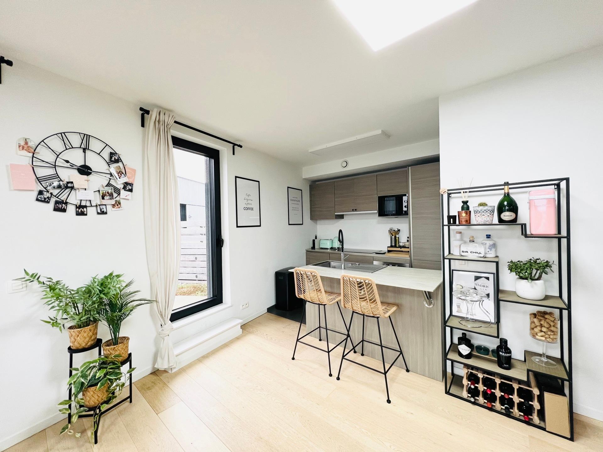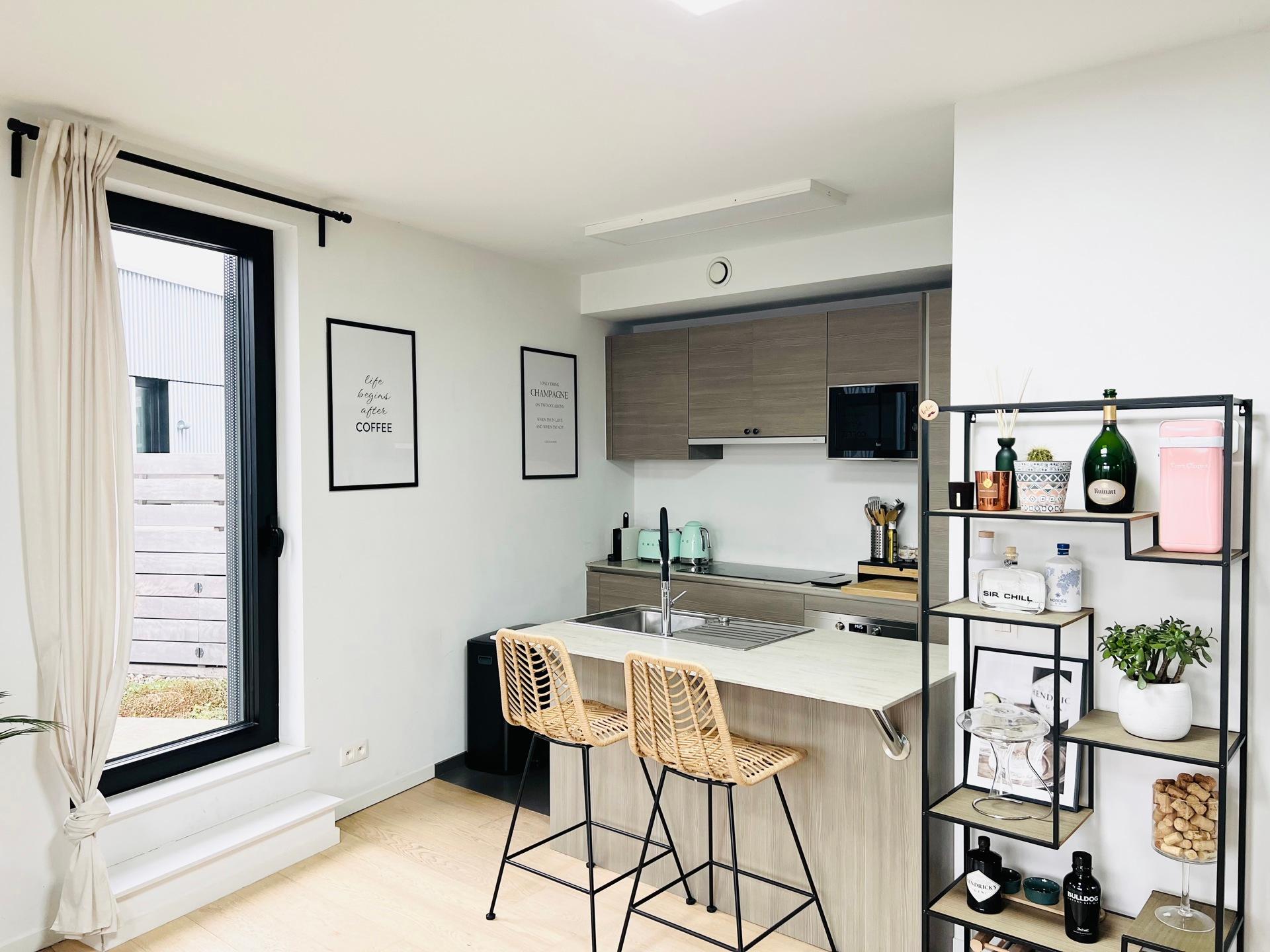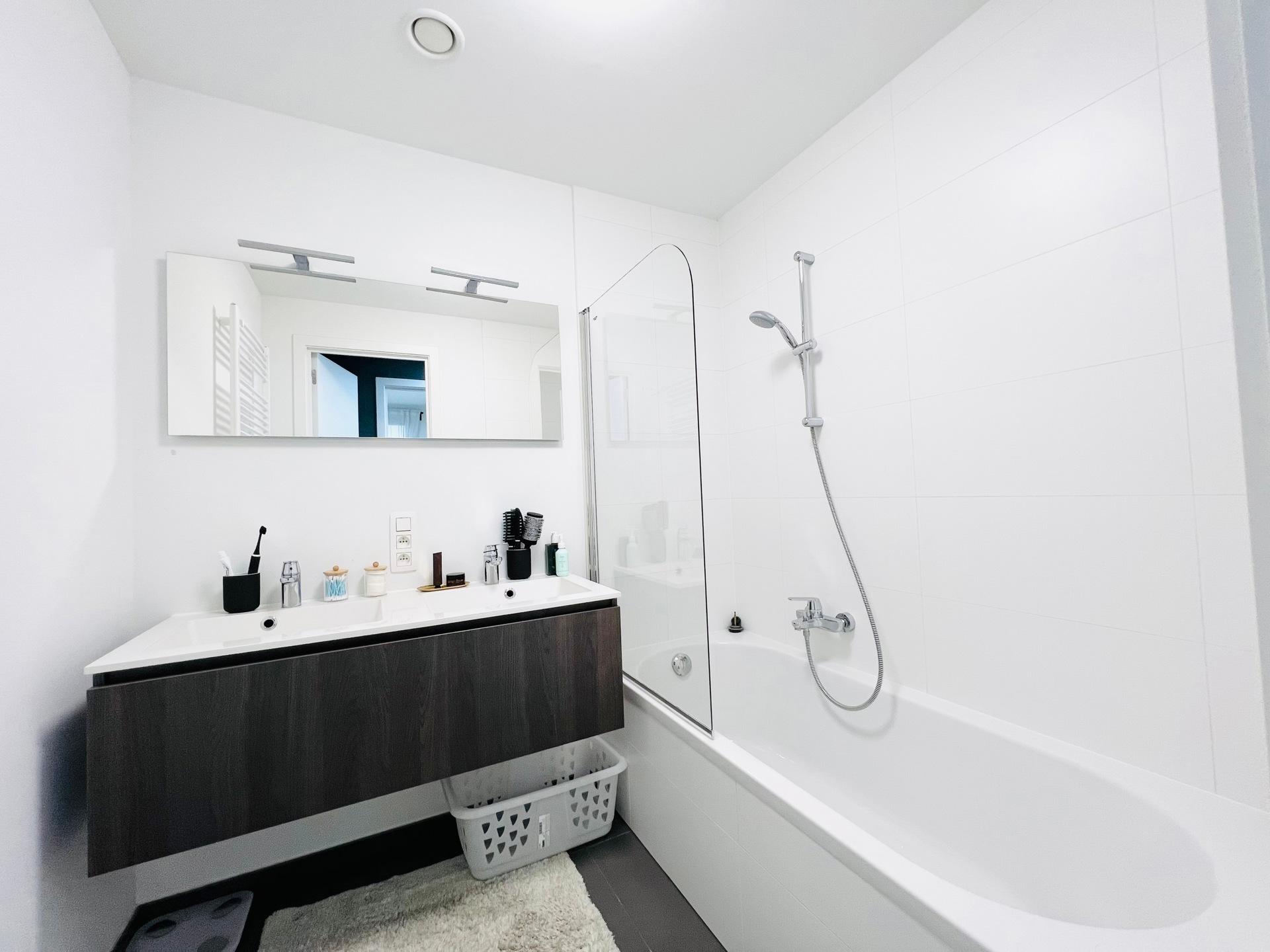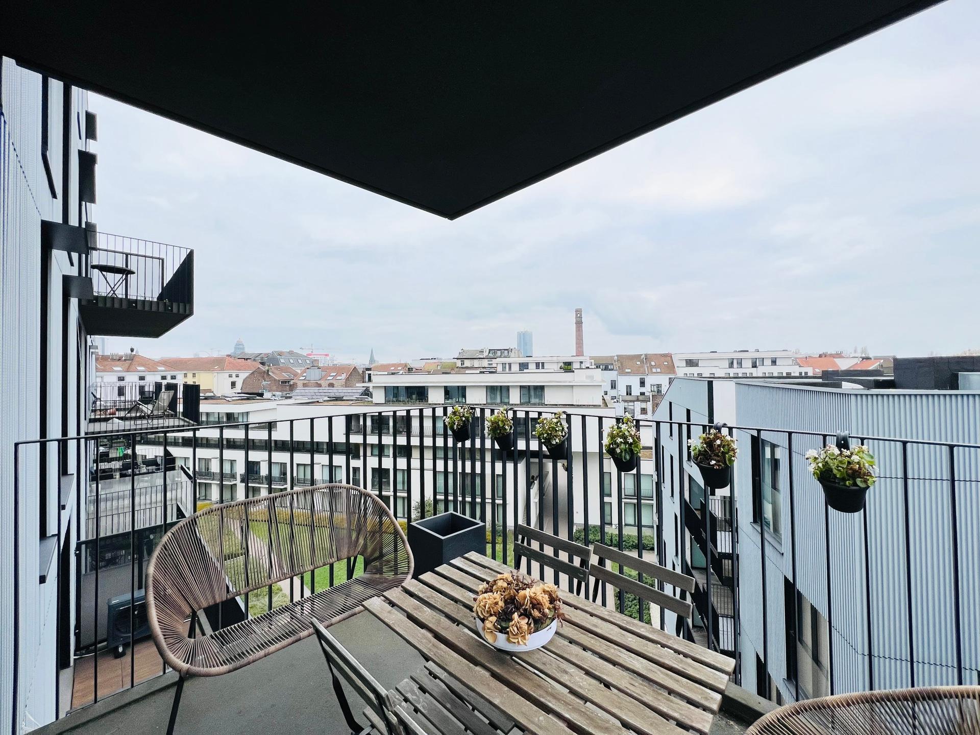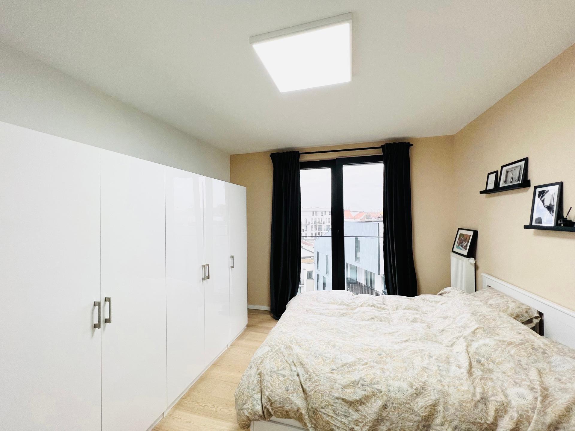 BRUSSELS, ideally located in the Dansaert district, steps from public transport, bright FURNISHED APARTMENT (2 Bedrooms/1 Bathroom/1 Shower Room) in excellent condition, approximately 90 sqm, with two lovely southwest-facing terraces and an indoor parking space. Situated on the 5th floor of a modern building (built in 2017), it comprises an entrance hall with a separate toilet, a pleasant living room, a fully equipped open-plan kitchen, and a laundry room. There are two bedrooms, a bathroom, and a shower room. An indoor parking space is included. There is also a cellar and a bicycle storage room. Monthly charges: €150 (heating, hot water, and maintenance of common areas). One-year lease accepted. Available immediately. EPC B (74). Discover it with L&P!
