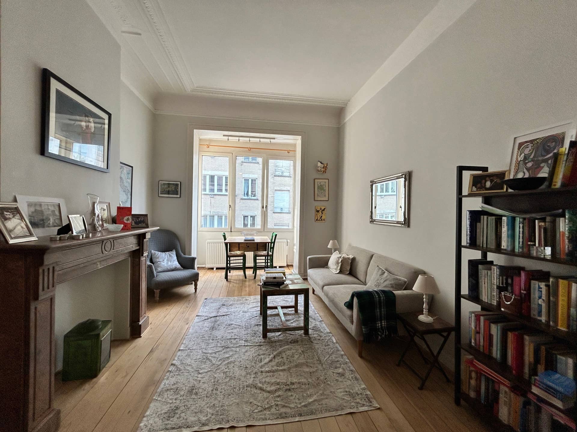 IXELLES, Ixelles ponds, Flagey, Châtelain, close to shops. This bright APARTMENT (1BDR/1BTHR) located on the 1st floor WITHOUT ELEVATOR of a Brussels mansion consists of an entrance hall, separate fully equipped kitchen of ±8 sqm, living room of ±26 sqm, bedroom area with fitted wardrobes of ±11 sqm, bathroom with toilet, cellar. Provisions of charges (water + common): 50€/month. To discover quickly at L&P!