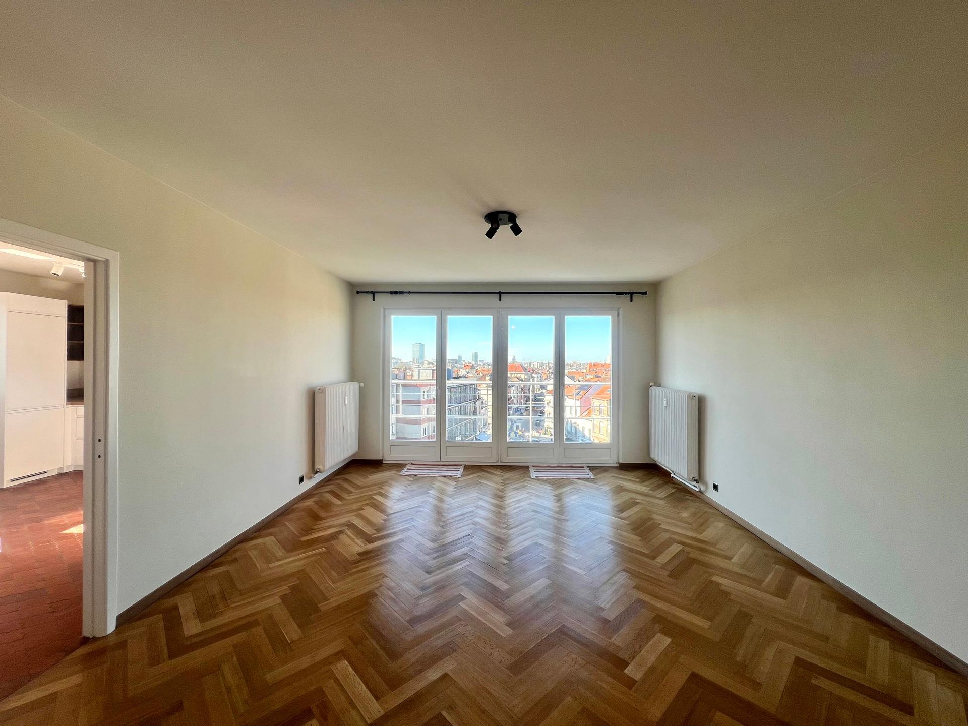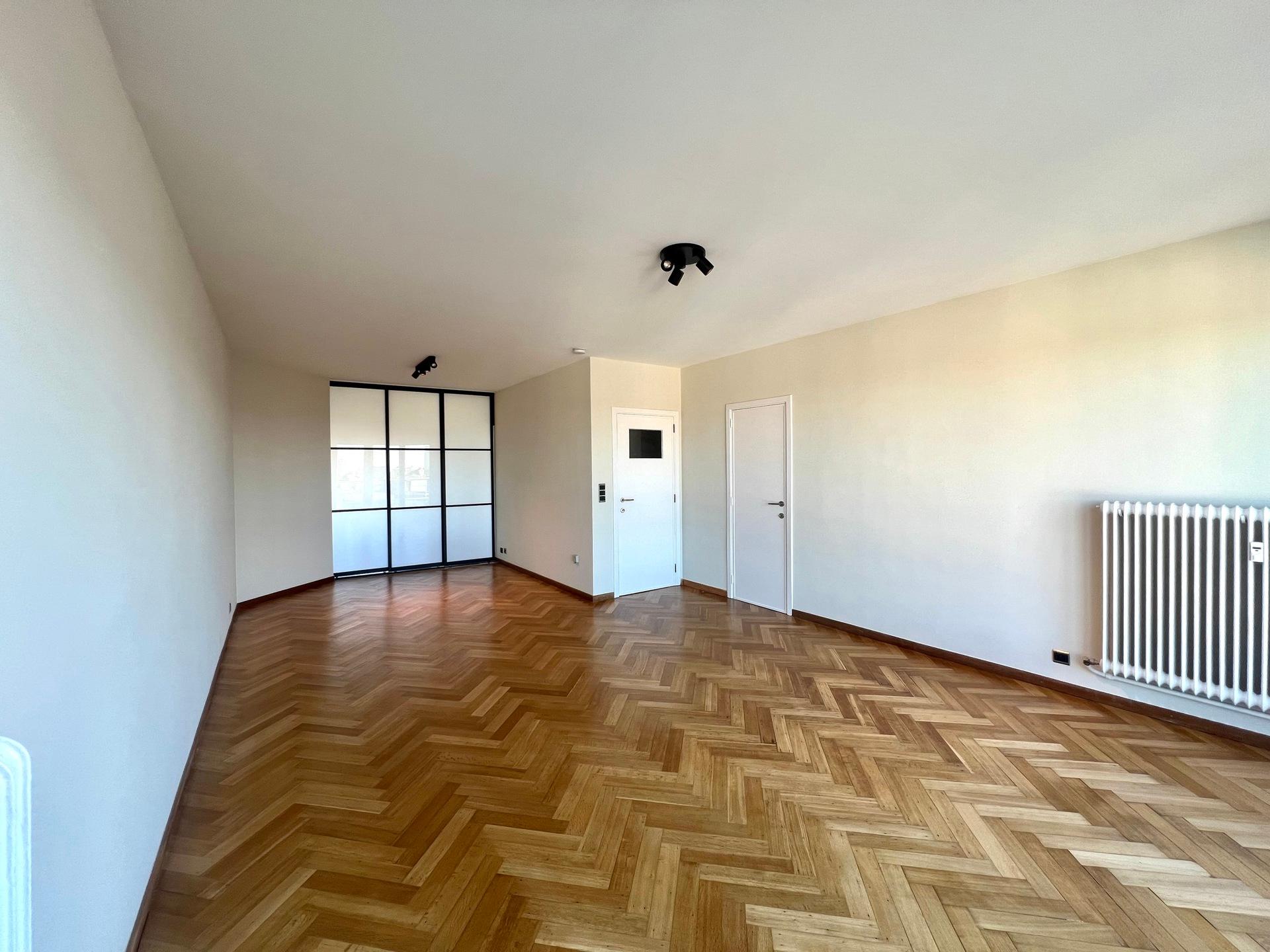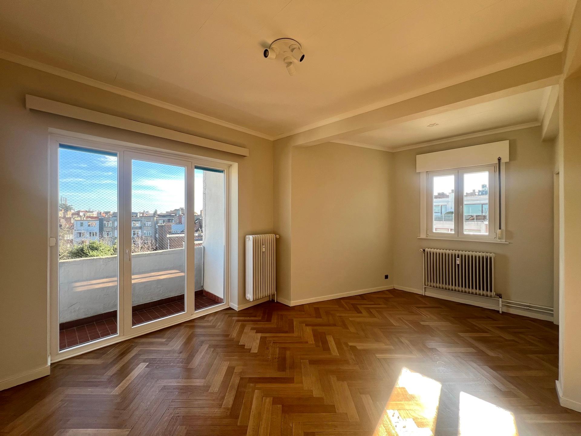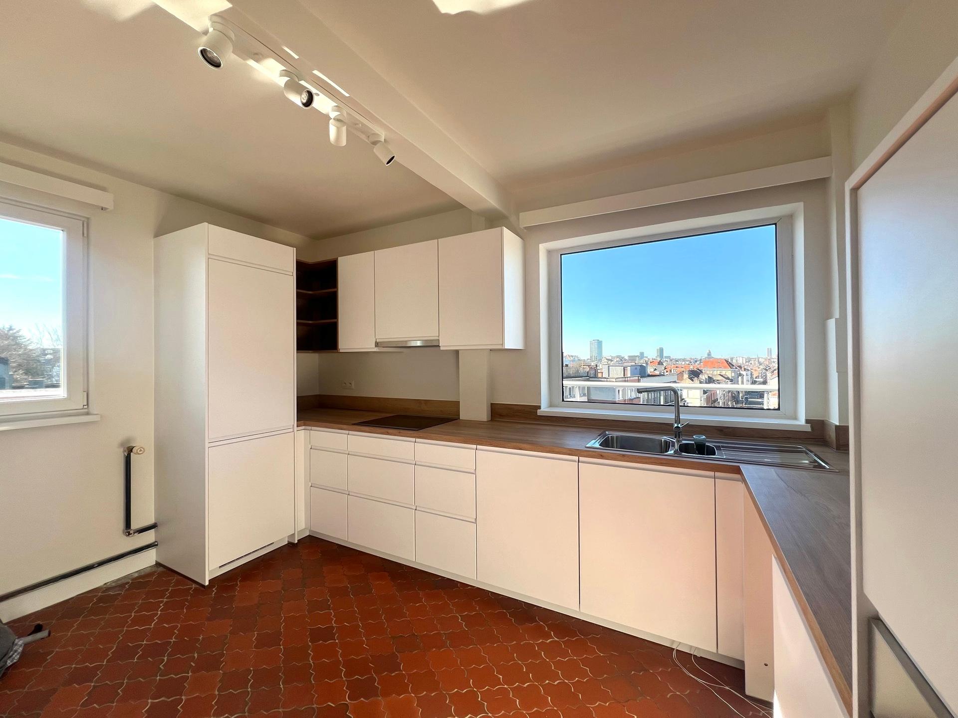 IXELLES - Close to the Ixelles Cemetery and public transportation, bright renovated APARTMENT (1 bedroom + office/1 bathroom) of ± 113m² with terraces, located on the 5th and top floor of a building with elevator. It consists of an entrance hall with cloakroom, living room of ± 33m² with access to the north-west facing terrace, fully equipped kitchen with utility room, office space of ± 14m², the night hall leads to a bedroom of ± 19m² with south-east facing terrace and dressing room, bathroom and separate toilet. A cellar completes this property. Provision for charges: €175/month (communal areas, heating, and water). PEB G. Discover this exclusive listing at L&P!