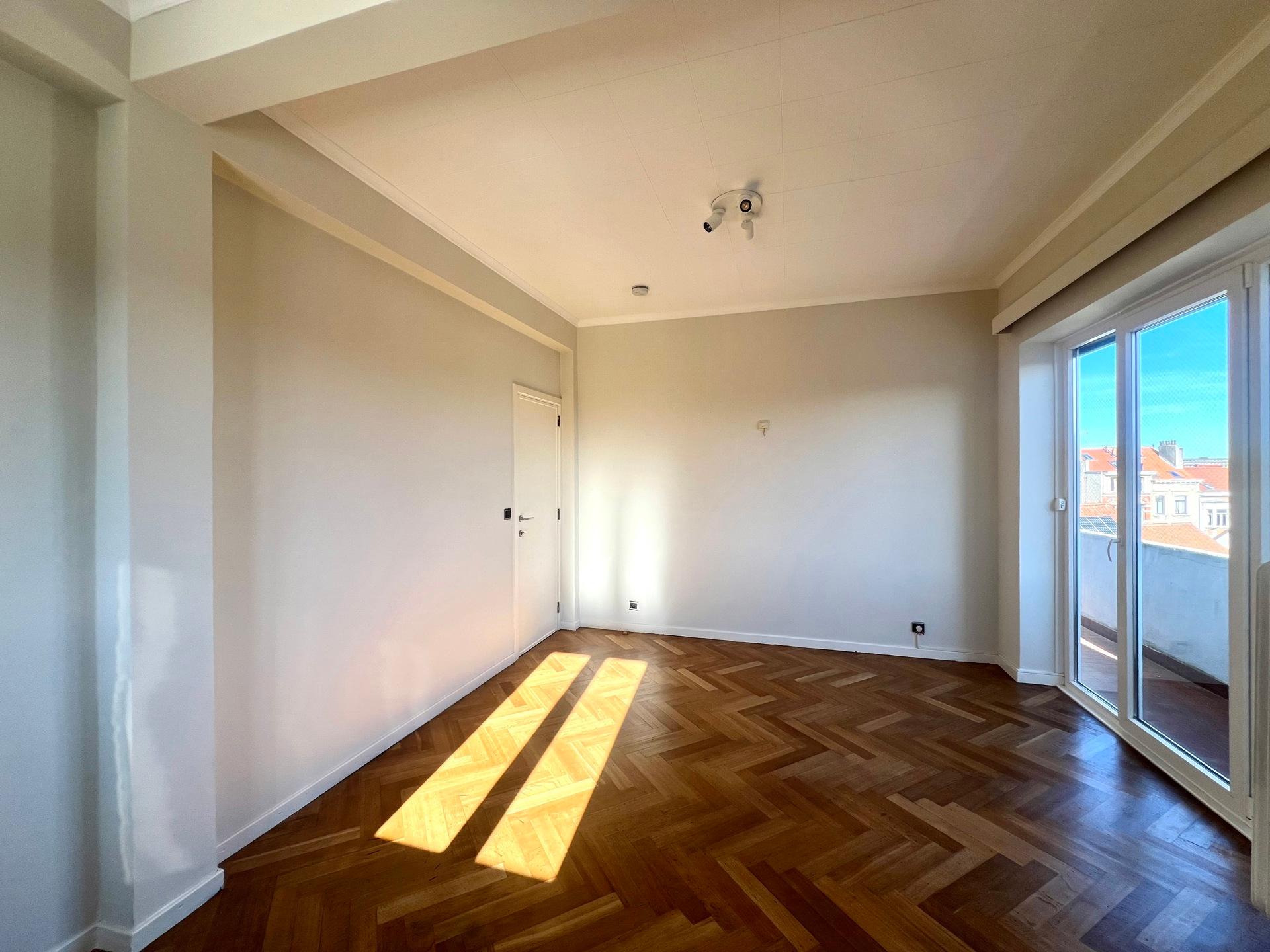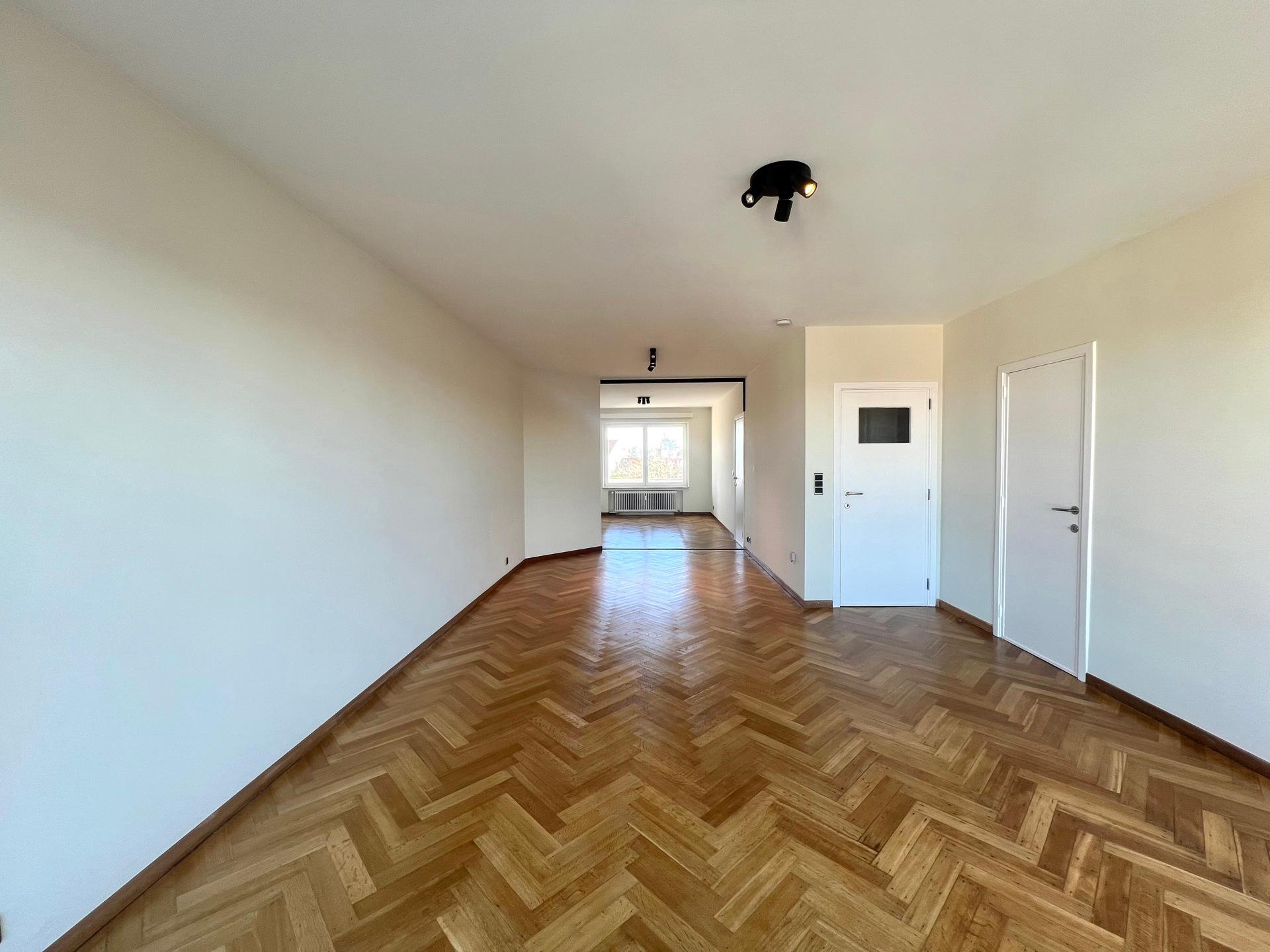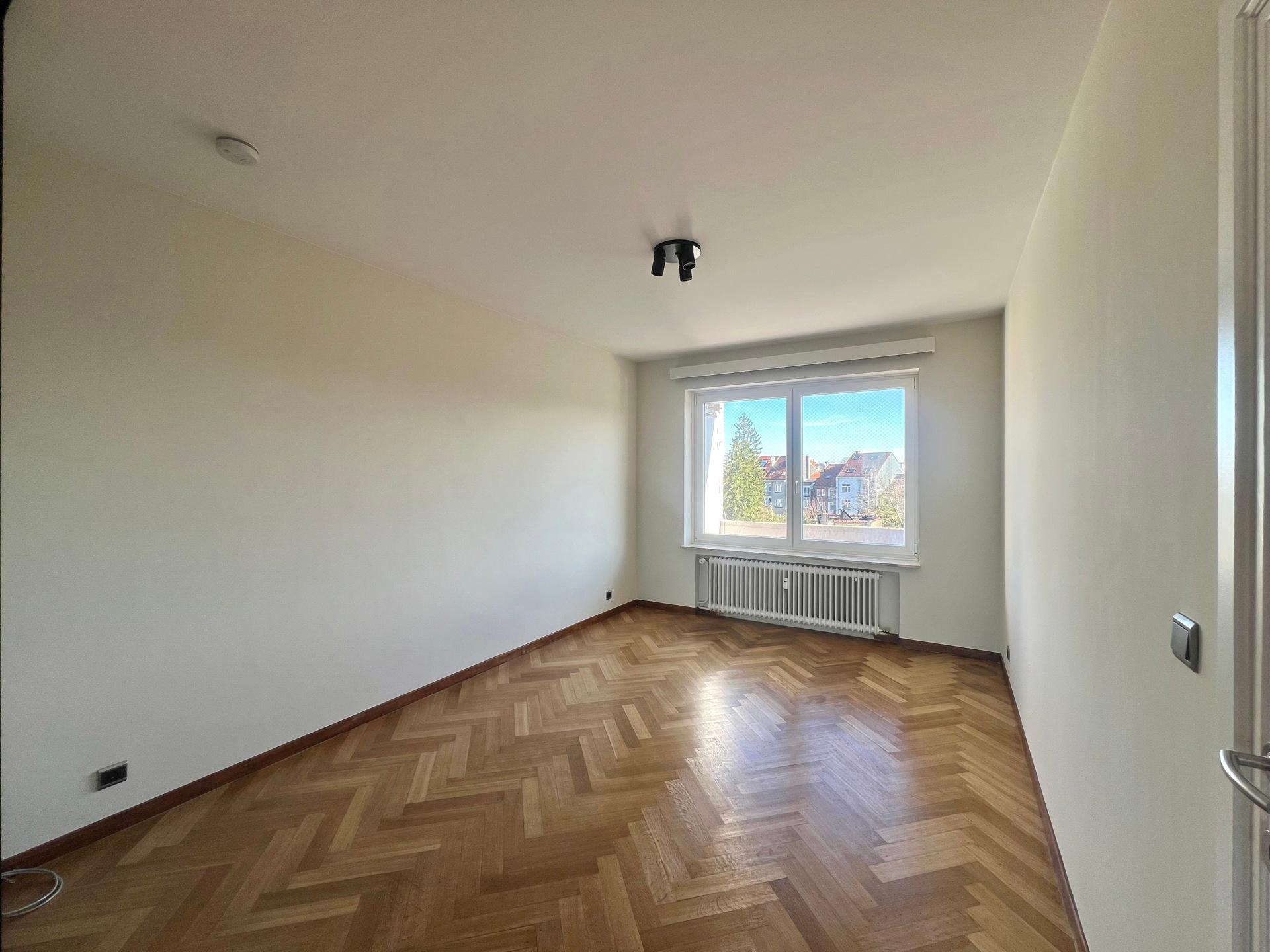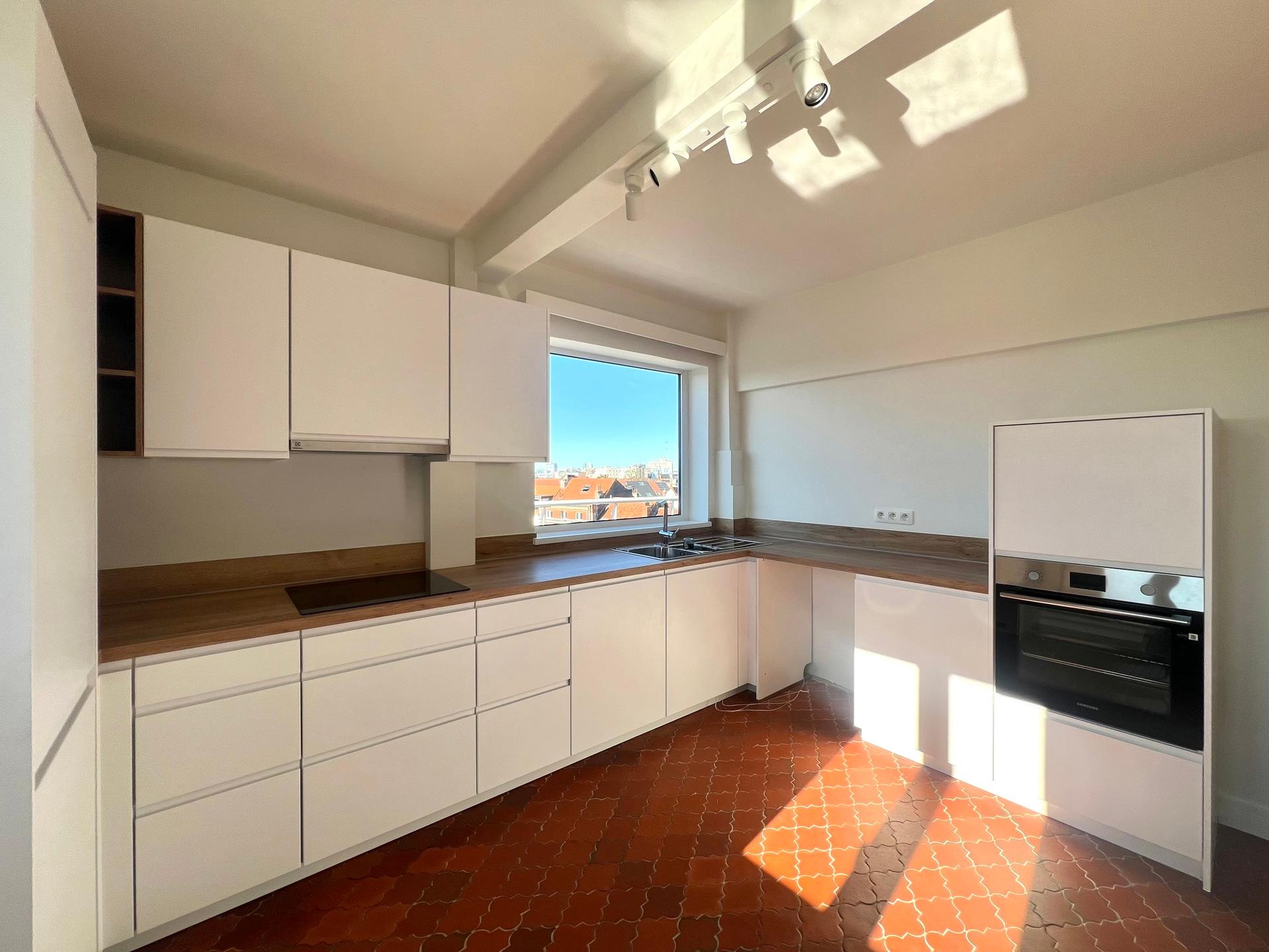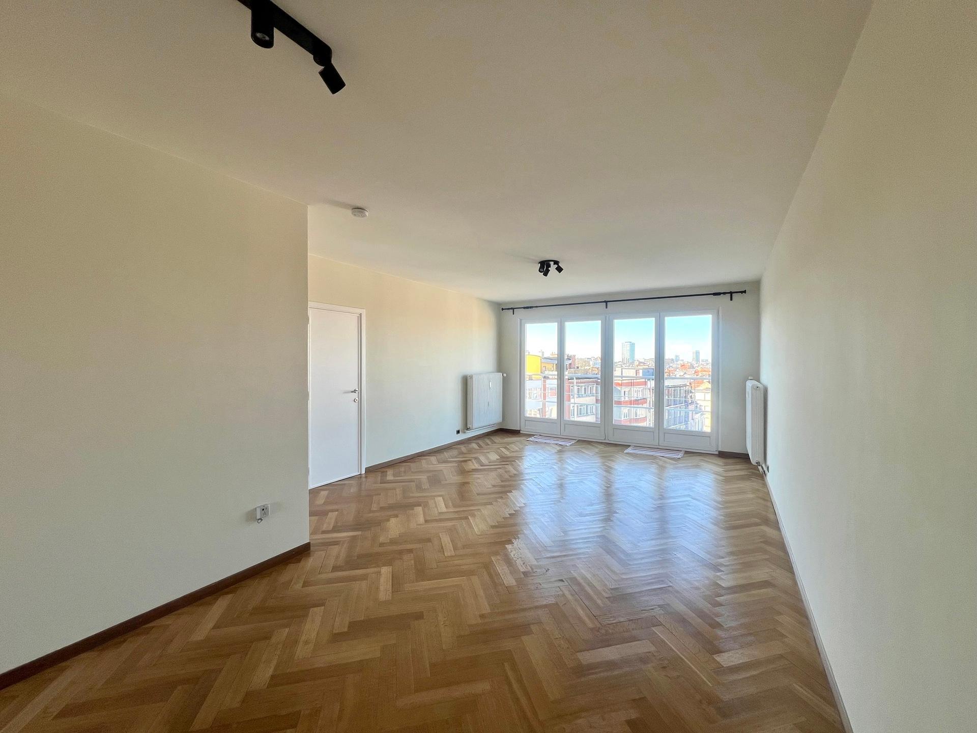 IXELLES - Close to the Ixelles Cemetery and public transportation, bright renovated APARTMENT (1 bedroom + office/1 bathroom) of ± 113m² with terraces, located on the 5th and top floor of a building with elevator. It consists of an entrance hall with cloakroom, living room of ± 33m² with access to the north-west facing terrace, fully equipped kitchen with utility room, office space of ± 14m², the night hall leads to a bedroom of ± 19m² with south-east facing terrace and dressing room, bathroom and separate toilet. A cellar completes this property. Provision for charges: €175/month (communal areas, heating, and water). PEB G. Discover this exclusive listing at L&P!