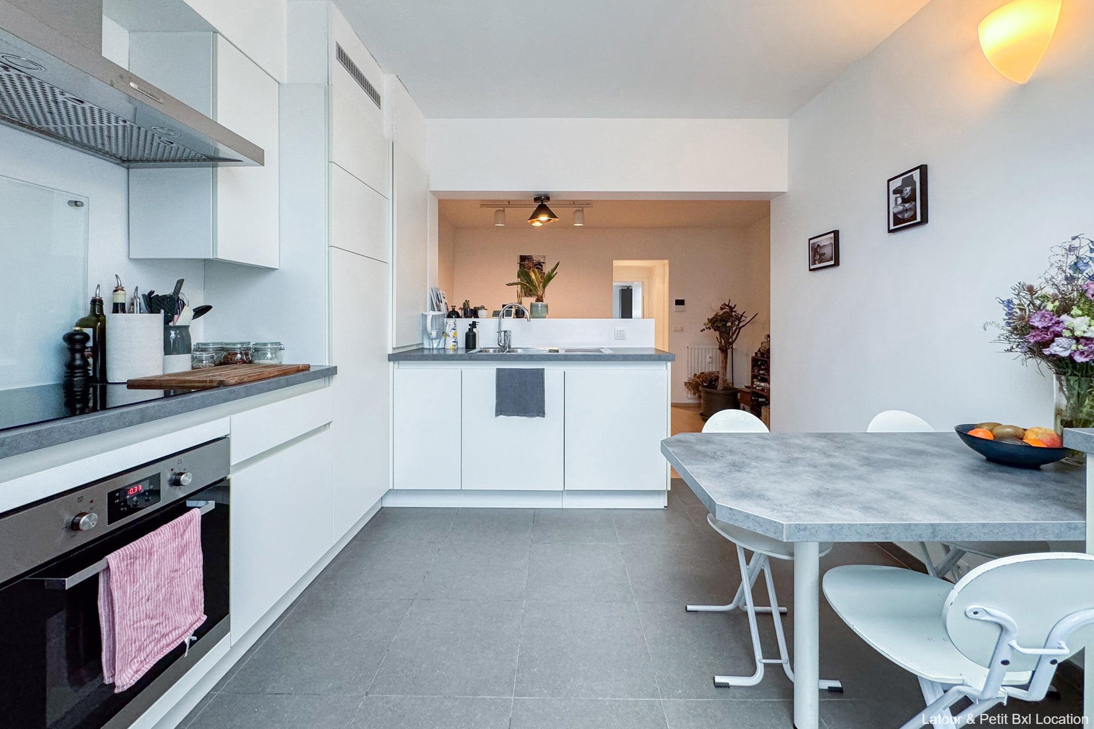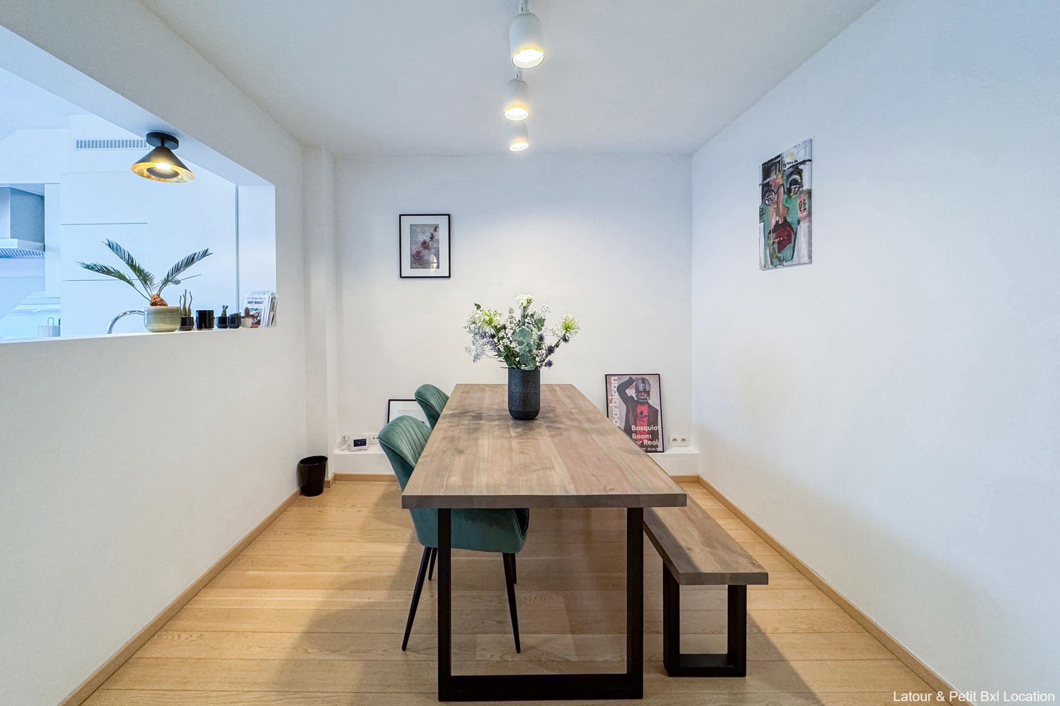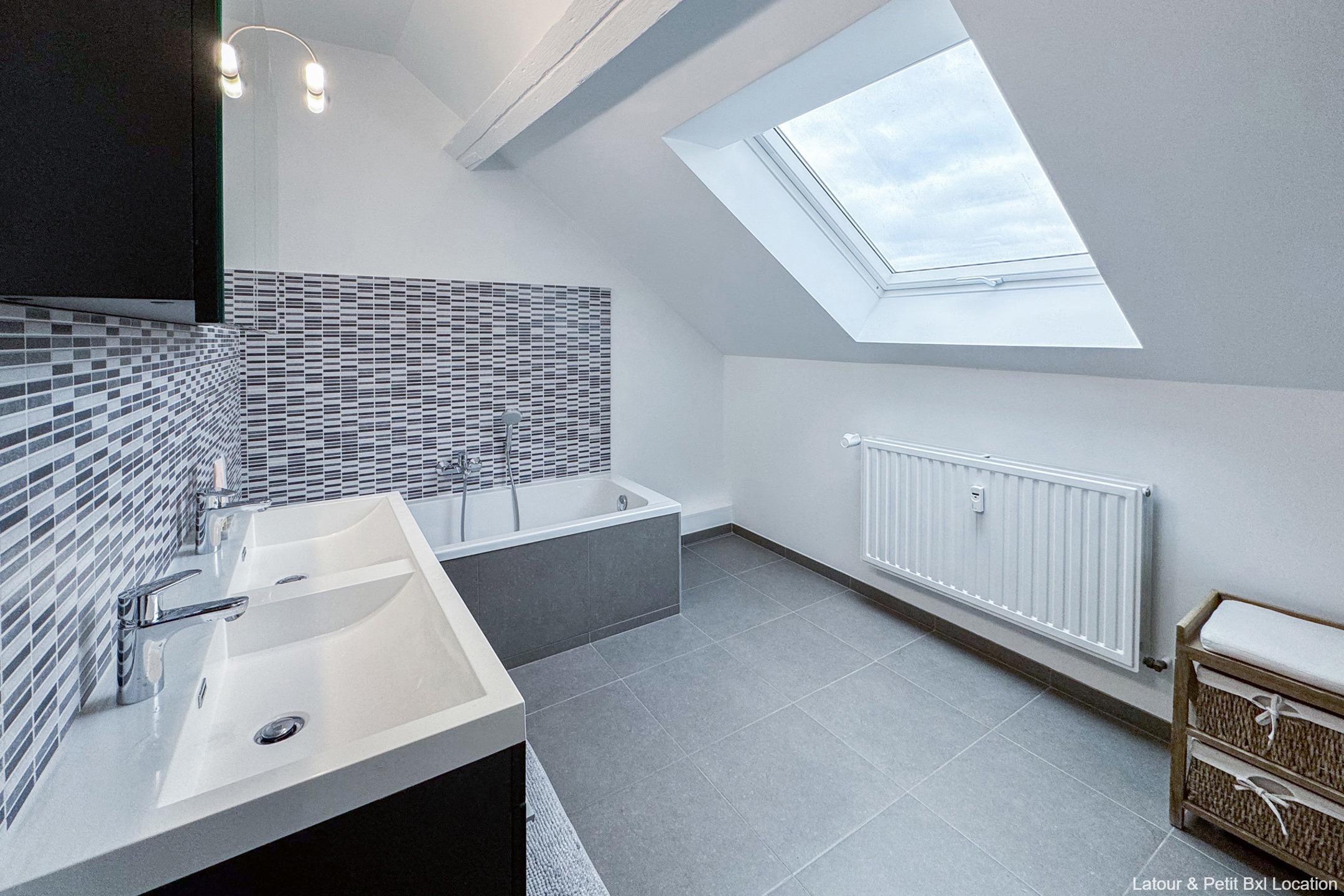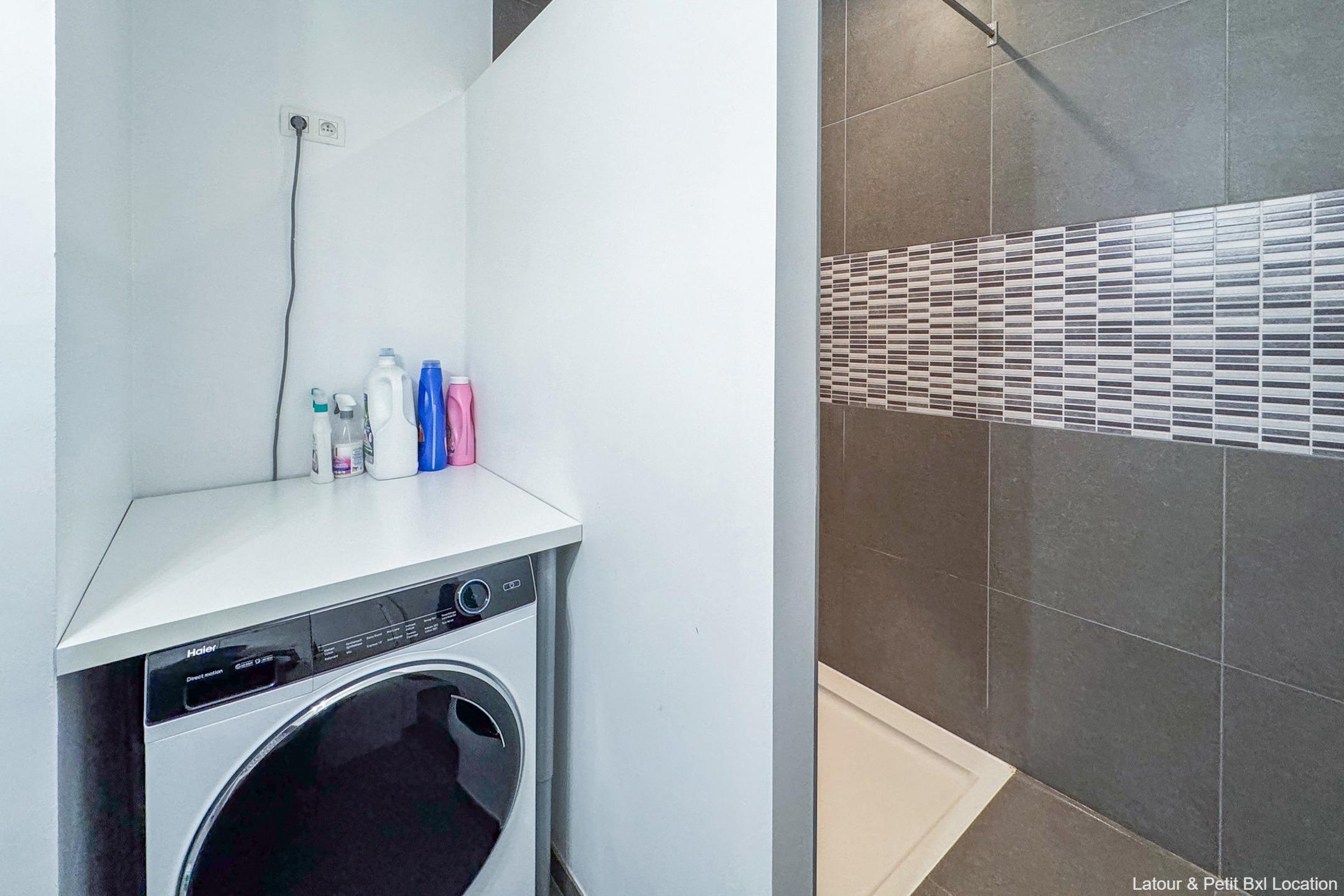 IXELLES - Ideally located between Place du Châtelain and Parc Tenbosch, magnificent duplex APARTMENT (2bed/1bath/1sdd) in a building with elevator. It comprises an entrance hall, separate toilet, dining room ±12sqm, open-plan fitted kitchen ±12sqm, master bedroom ±20sqm with wardrobe, bedroom ±16sqm, bathroom, shower room with washing machine available, upstairs, beautiful living space ±45sqm. Cellar. Parking space. Bike storage room. Service charges: 300€ (common, heating, water). Discover it at L&P!
