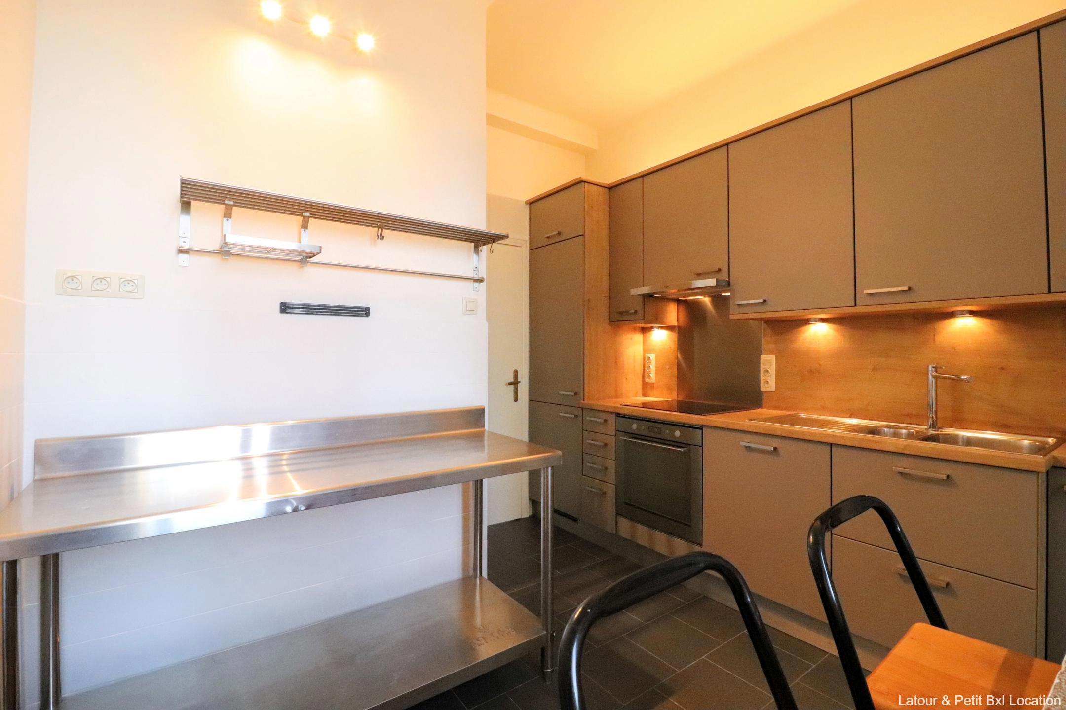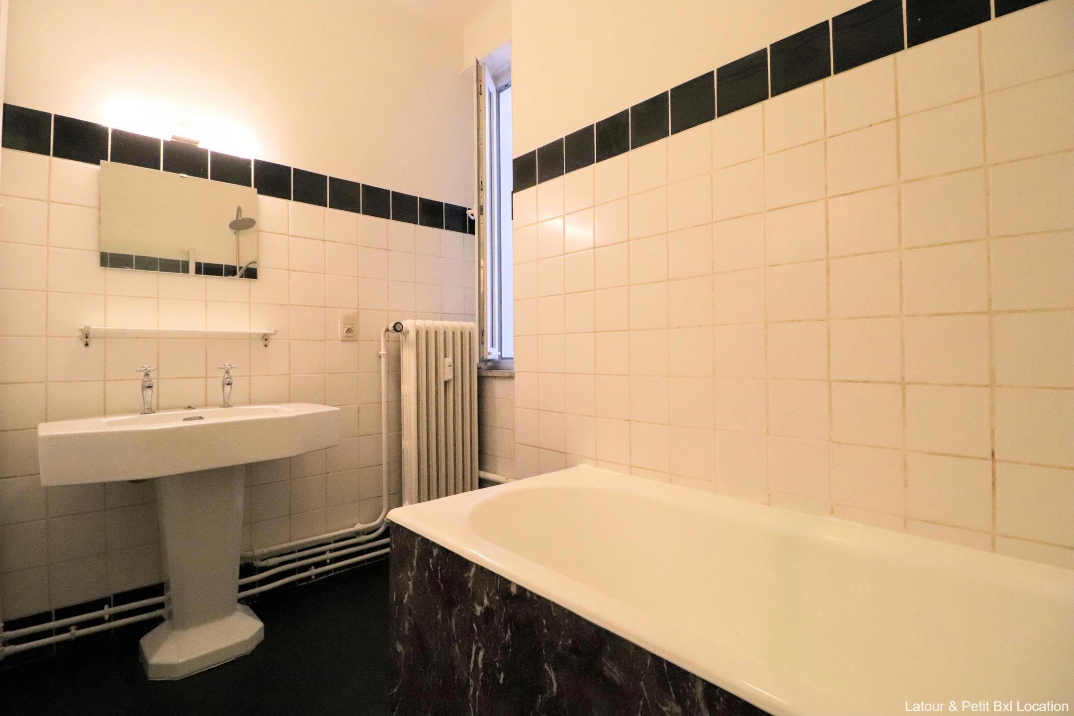 IXELLES - Châtelain/Louise district, bright APARTMENT (2bdr/1bthr) of 110 sqm, located on the 3rd floor, it consists of an entrance hall with cloakroom, pleasant living room of 37 sqm with south-east facing balcony, separate kitchen super-equipped, rear balcony. The night hall with storage leads to a bathroom, separate toilet, bedroom 1 of 16 sqm with cupboard and sink area, bedroom 2 of 9 sqm. A cellar completes this property. Flat rate charges (heating, hot water, common areas): 235€/month. EPC : E+. To visit exclusively at L&P!