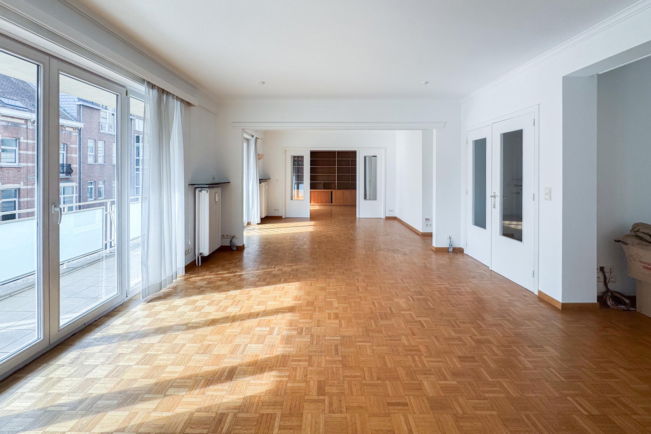 SAINT-GILLES, close to Place du Châtelain and shops. Superb APARTMENT (3bdr/1bthr/1shwr) of ±182sqm with a terrace. Located on the 3rd floor of a building with elevator, it consists of an entrance hall with toilet, spacious and bright living room of ±50sqm with access to the southeast-facing terrace, equipped kitchen, laundry room. Master bedroom of ±24sqm and shower room with toilet, bidet and washing machine, second bedroom of ±18sqm, third bedroom of ±22sqm with its own shower room. Cellar. Provisional charges €400/month (common, heating and hot water). EPC: D-. To discover at L&P!