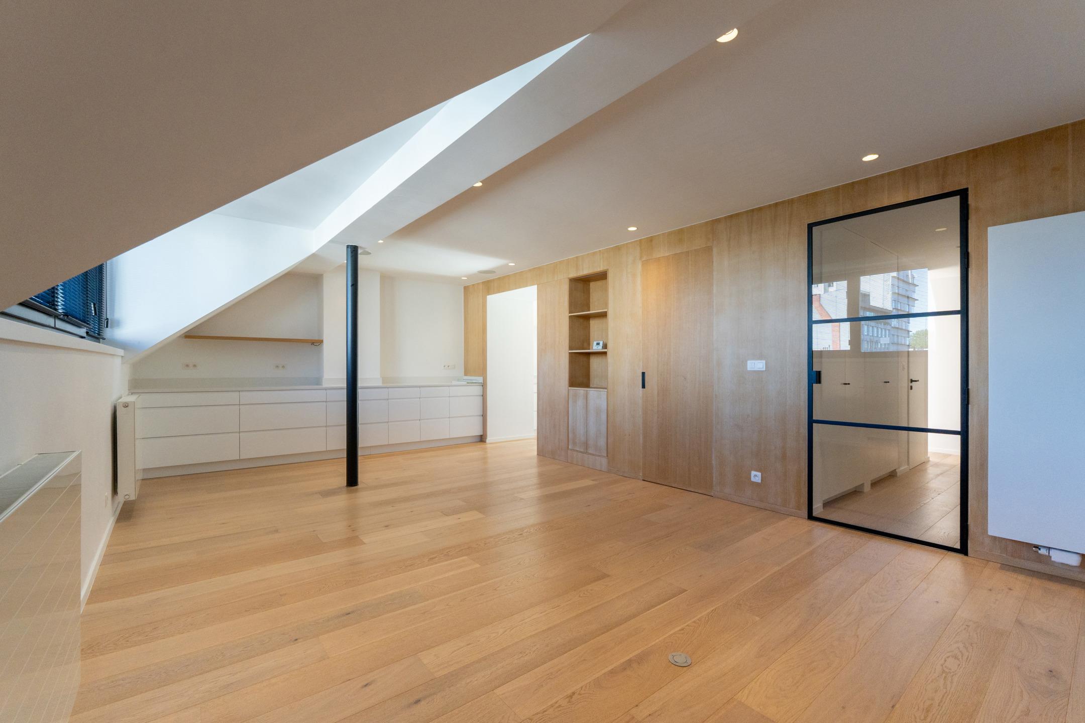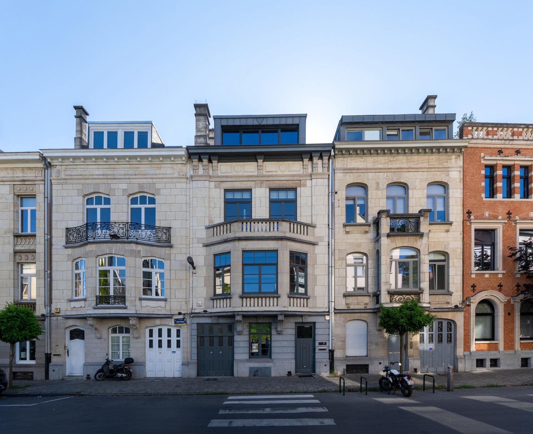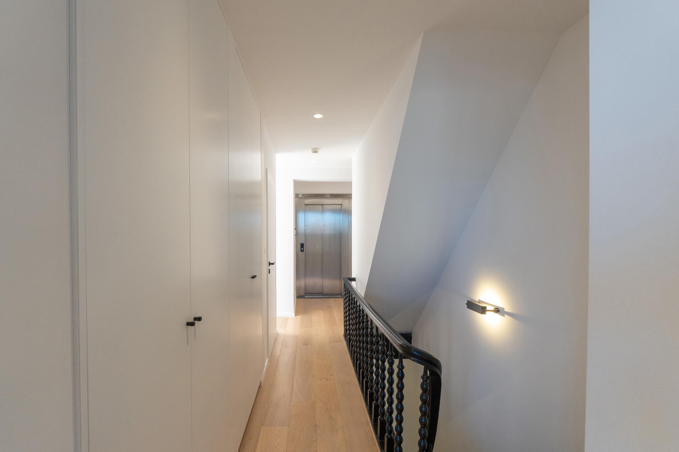 IXELLES – Close to Place Brugmann, superb luxury triplex apartment (4 bedrooms/3 bathrooms) with private lift, approx. 250 m² and south-west facing terrace. The third floor comprises an entrance hall with built-in storage leading to the living area (± 30 m²) comprising a lounge with open fire, dining room, fully equipped open-plan kitchen and access to the 40 m² south-west facing terrace with unobstructed views over the inner courtyard. The second floor offers a night hall, master suite (±30m²) with dressing room, shower room and balcony, two large bedrooms (±16m² - 14m²) and a second bathroom, storage space and boiler room. On the top floor, under the eaves, is a fourth bright bedroom (±20m²) with shower room. A garage, cellar with laundry area in the basement and bicycle storage room complete the property. Individual condensing boiler. Air conditioning. PEB D+. Provisions for charges: €120/month (communal and private lift maintenance). Discover this exclusive property at L&P!