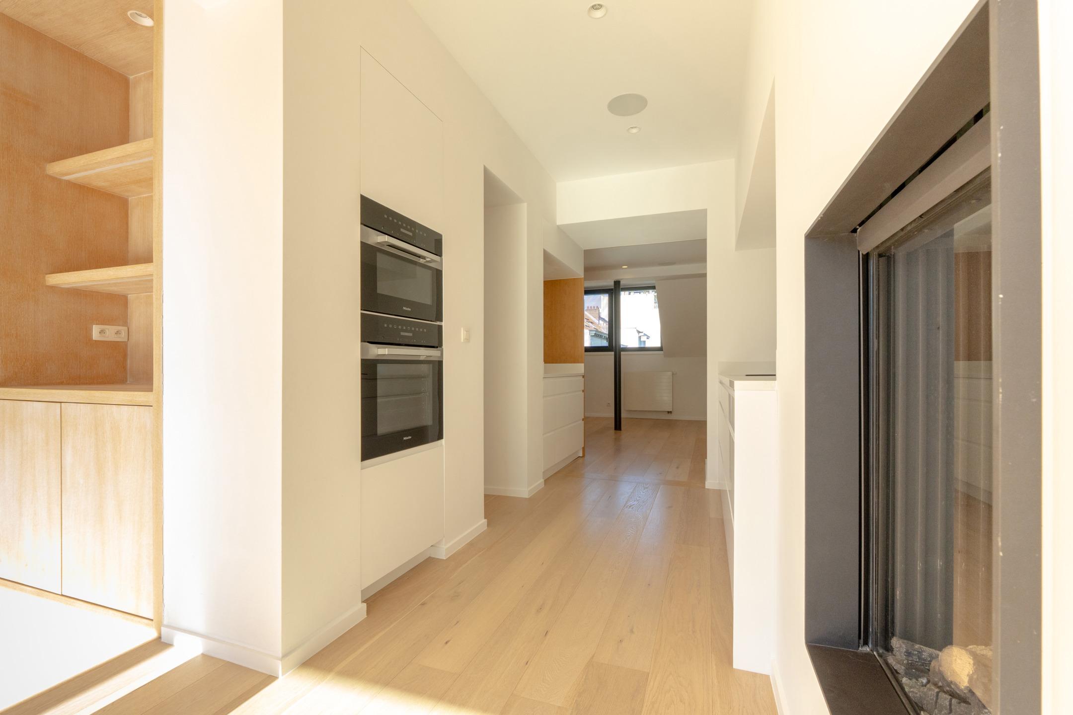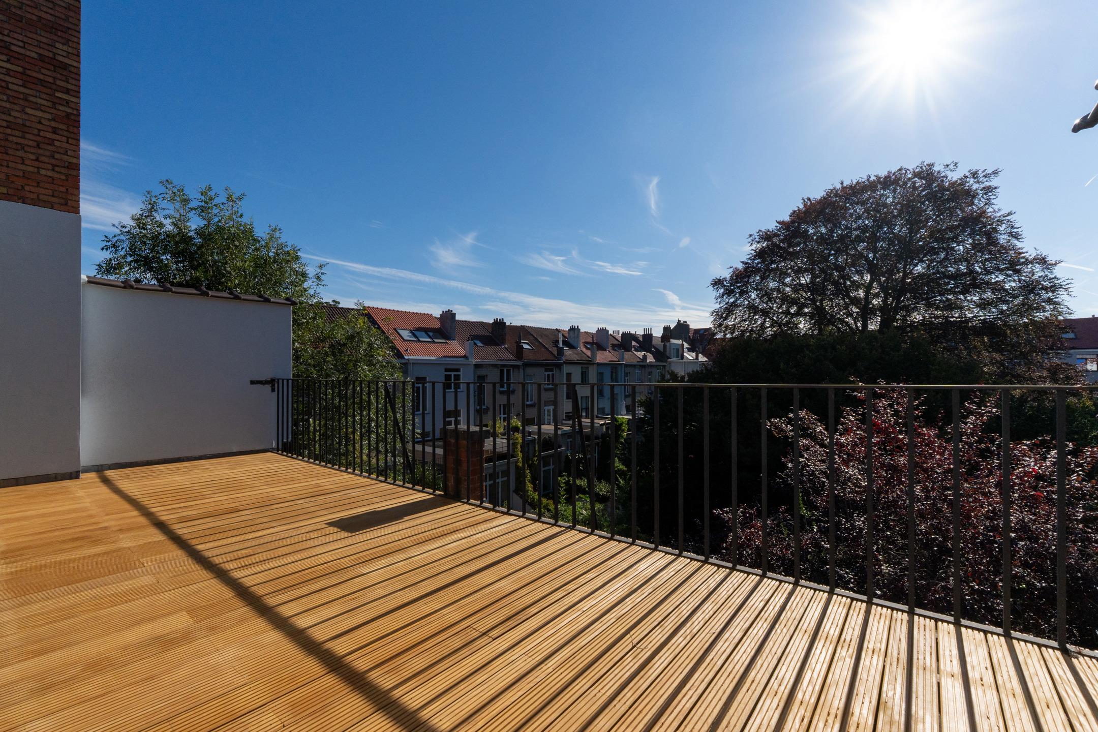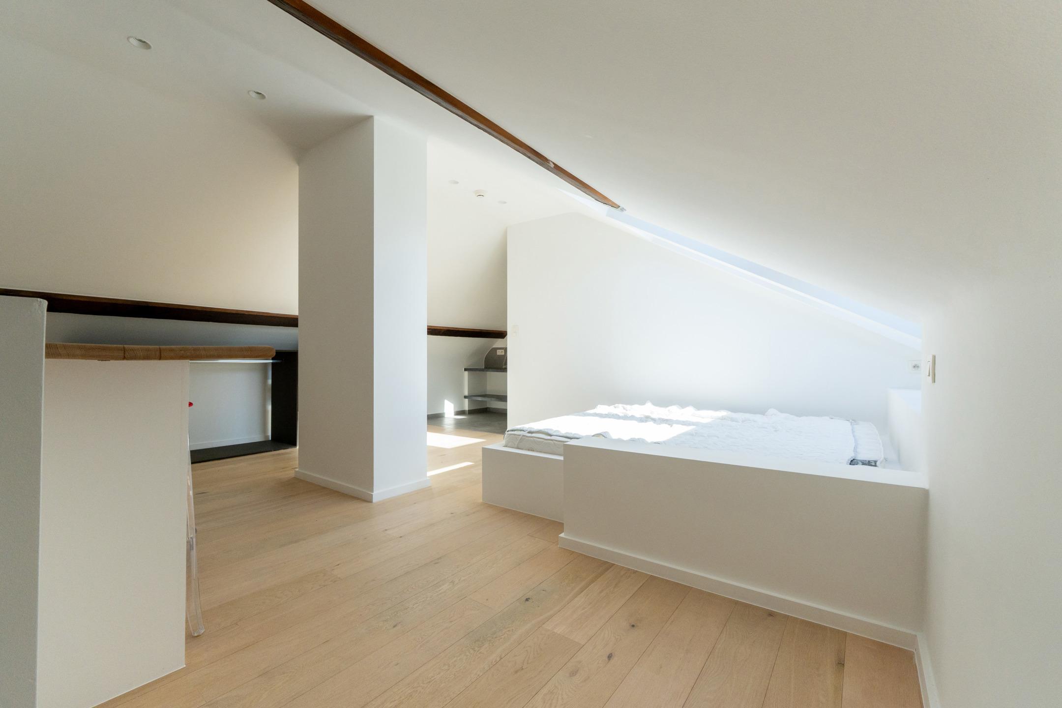 IXELLES – Close to Place Brugmann, superb luxury triplex apartment (4 bedrooms/3 bathrooms) with private lift, approx. 250 m² and south-west facing terrace. The third floor comprises an entrance hall with built-in storage leading to the living area (± 30 m²) comprising a lounge with open fire, dining room, fully equipped open-plan kitchen and access to the 40 m² south-west facing terrace with unobstructed views over the inner courtyard. The second floor offers a night hall, master suite (±30m²) with dressing room, shower room and balcony, two large bedrooms (±16m² - 14m²) and a second bathroom, storage space and boiler room. On the top floor, under the eaves, is a fourth bright bedroom (±20m²) with shower room. A garage, cellar with laundry area in the basement and bicycle storage room complete the property. Individual condensing boiler. Air conditioning. PEB D+. Provisions for charges: €120/month (communal and private lift maintenance). Discover this exclusive property at L&P!