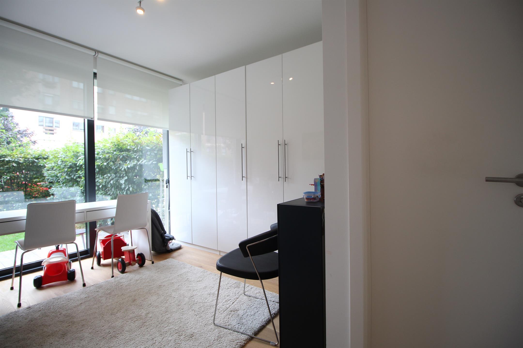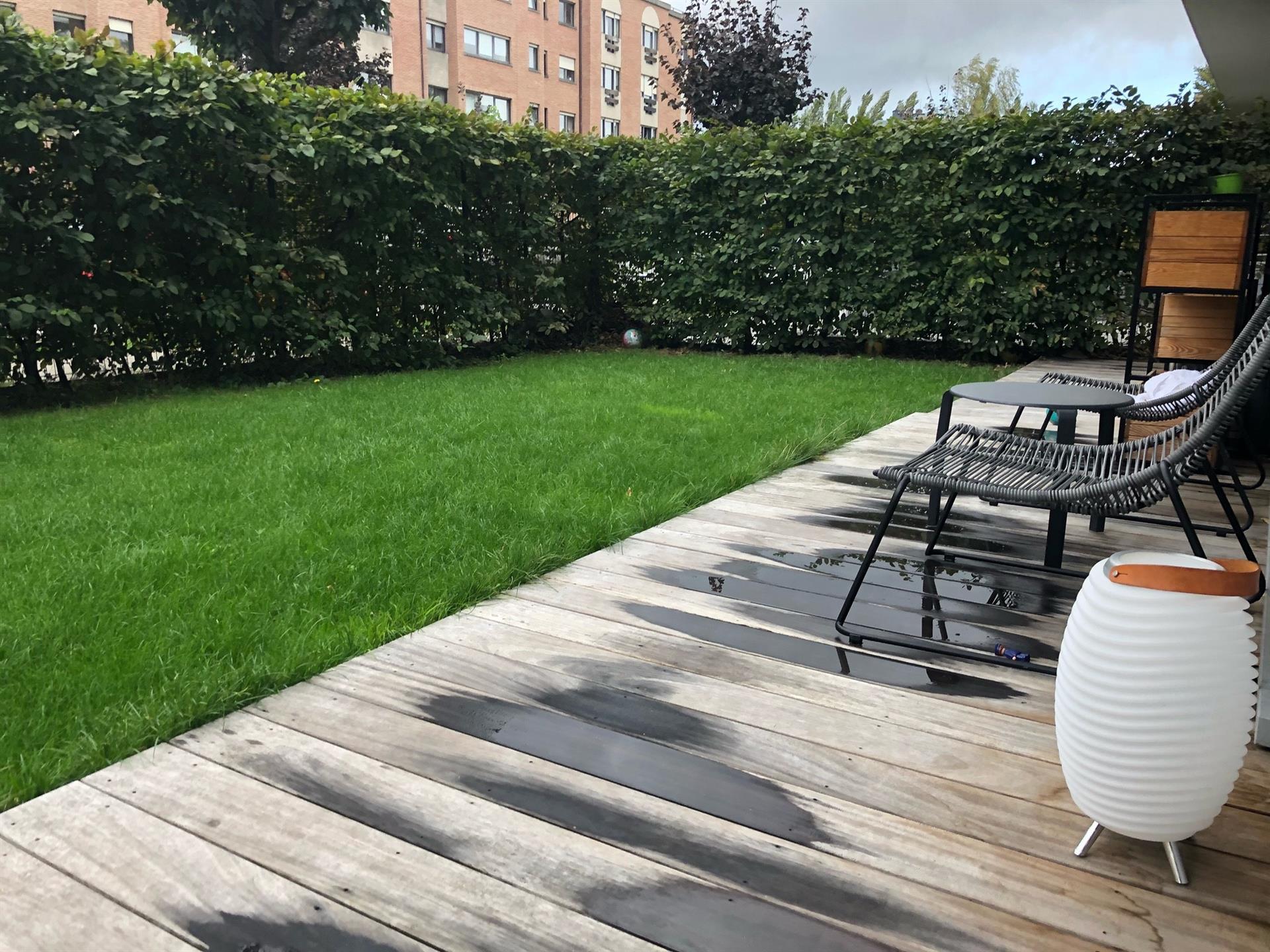 WOLUWE-SAINT-PIERRE, near the Dumon square. Beautiful APARTMENT (3ch/2sdb) of 115 m² with garden of 120m² and interior parking. Located on the first floor, it consists of an entrance hall with guest toilet, bright living room of 40 m² with parquet floor and access to the front garden, super-equipped kitchen, 1 bedroom with parquet floor and adjoining shower room with toilet, 2 bedrooms with parquet floor and access to the back garden and 1 bathroom. In the basement there is a cellar and an indoor parking space. There is also a large common garden at the back of the building. Provision of charges: 250€/month (common and garden maintenance). PEB : C+. To discover at L&P !