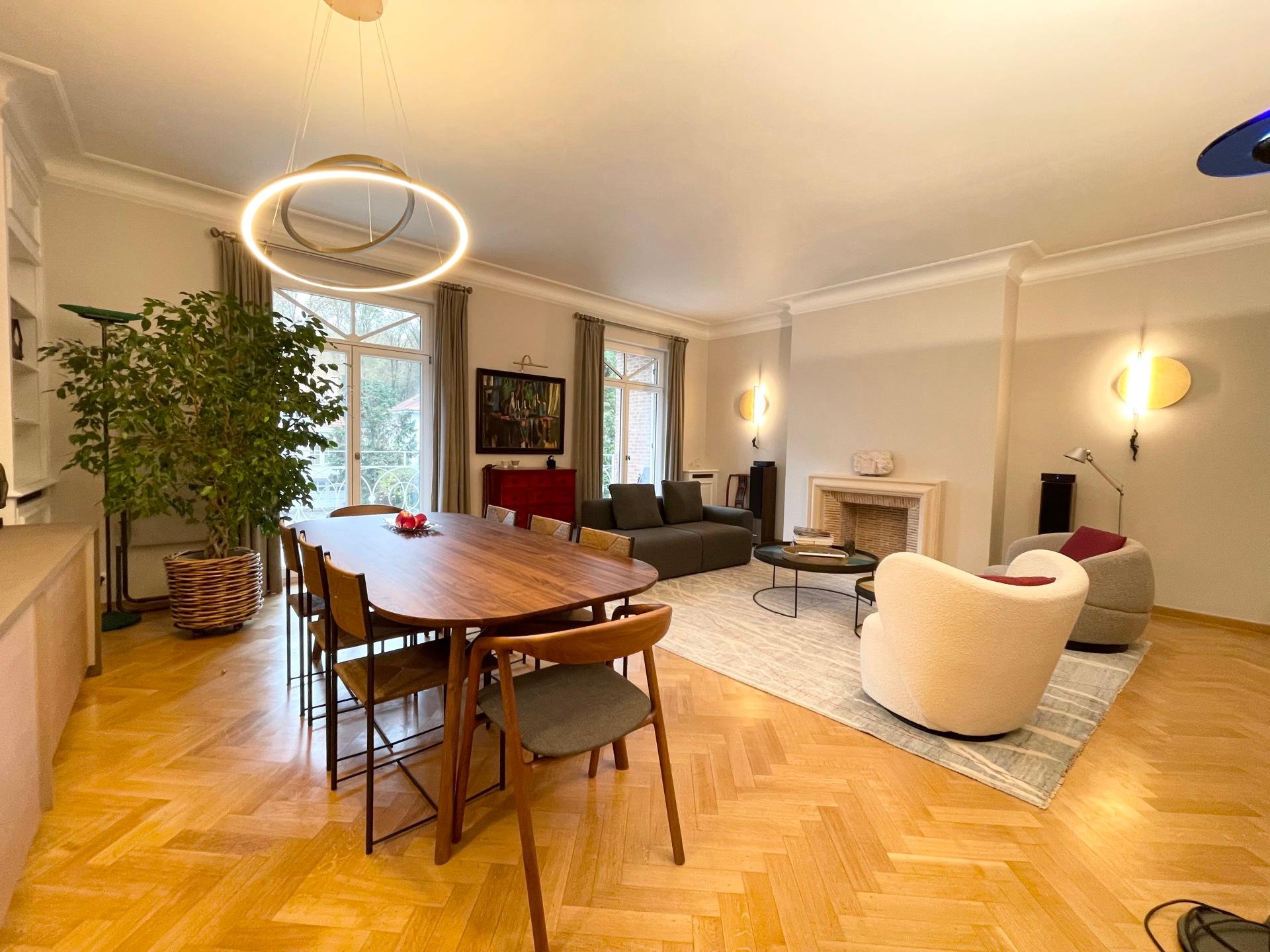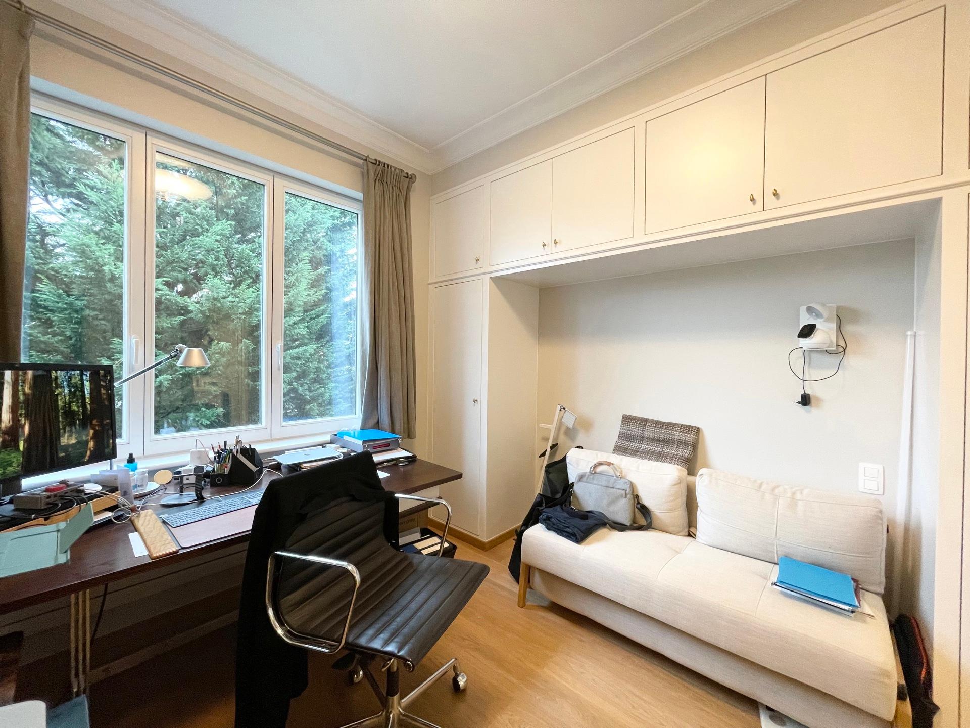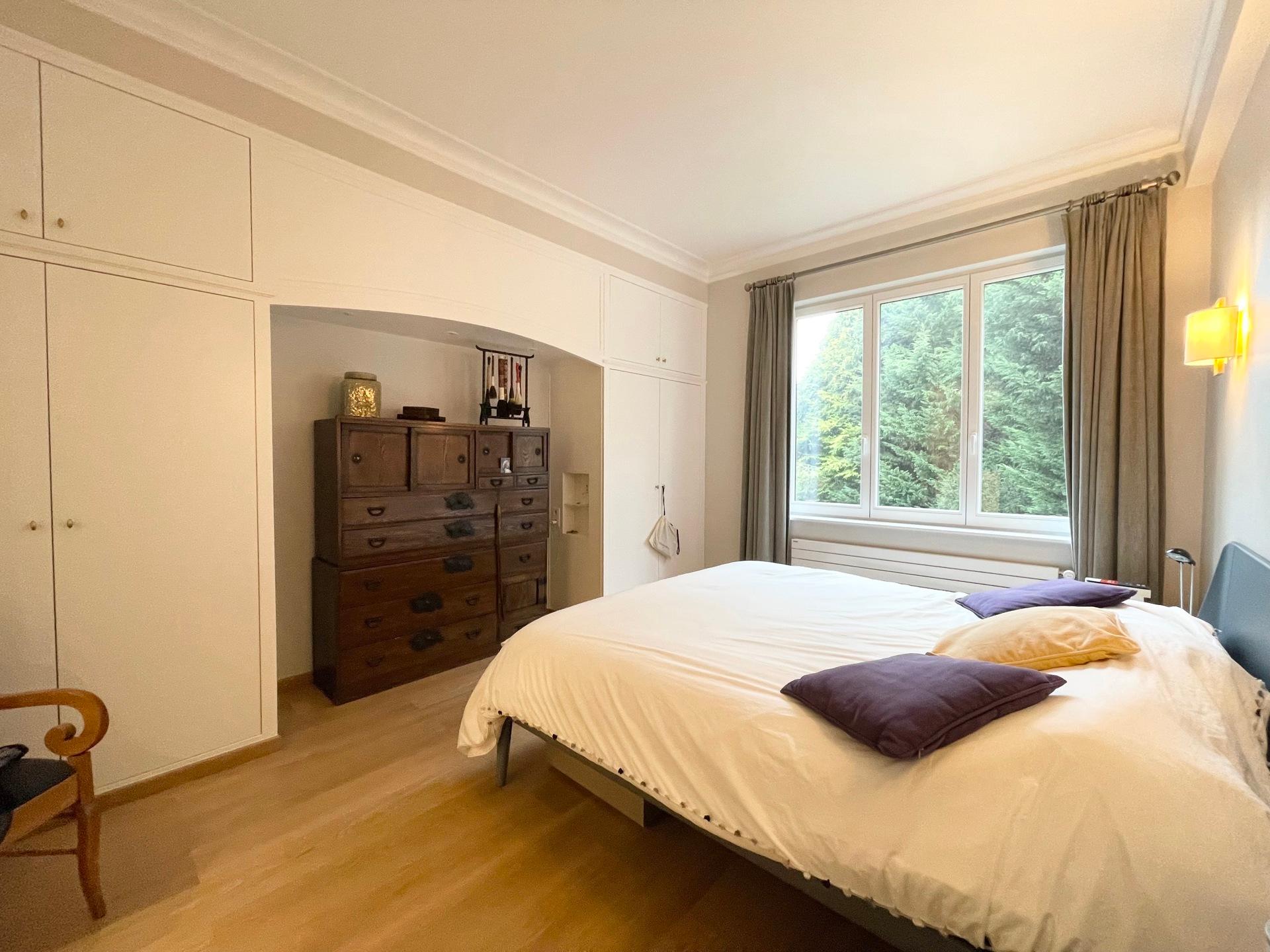 AUDERGHEM Superb apartment in a small building (2 bedrooms/1 bathroom/2 shower rooms) with terrace and garages. Located on the 1st floor, it comprises an entrance hall with cloakroom and toilet. Spacious 43m² living room with a TV area, giving access to the 16m² terrace. Fully equipped kitchen with access to a small terrace with storage room. 14m² study. 1 bedroom with cupboards and en-suite bathroom + toilet and washing machine/dryer. 1 bedroom with cupboards and en-suite shower room. Cellar with shelves. 1 closed garage + 1 parking space (+€150). Provisions for common charges, heating, hot and cold water €350/m². PEB C. Come and see it at L&P!
