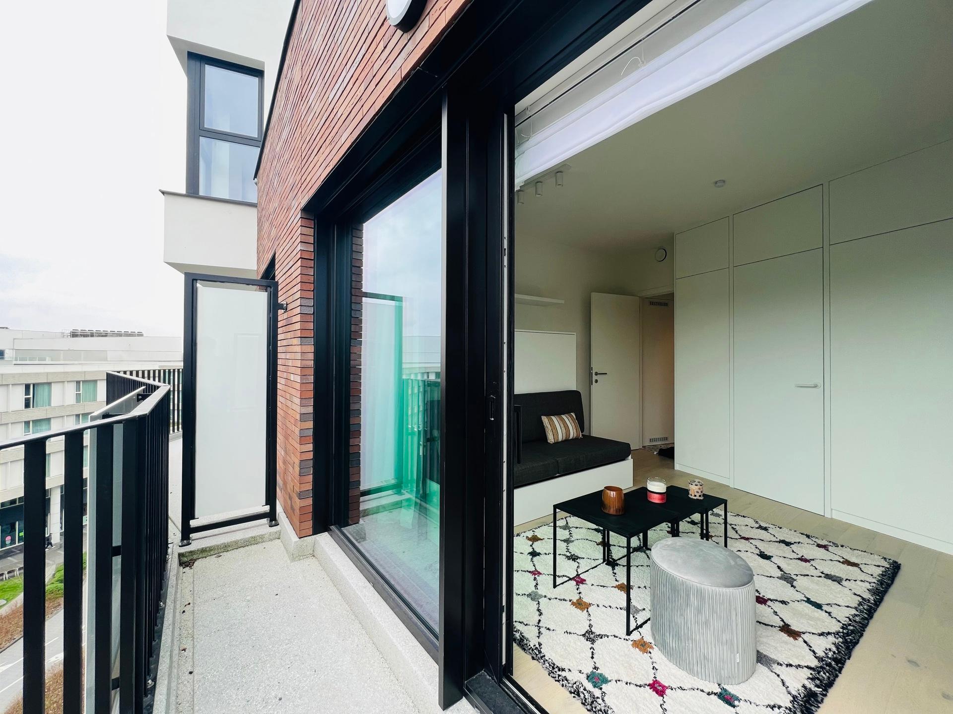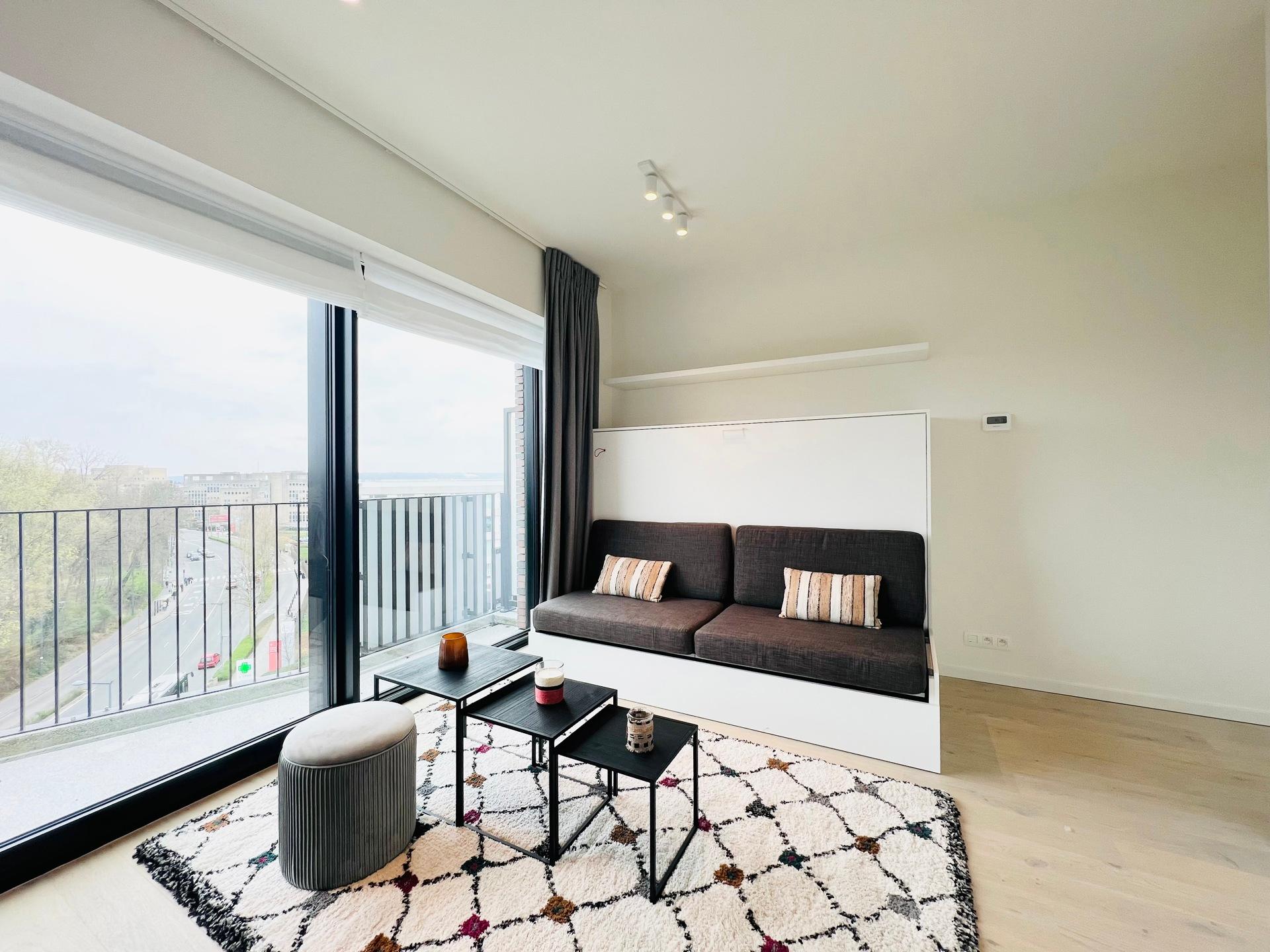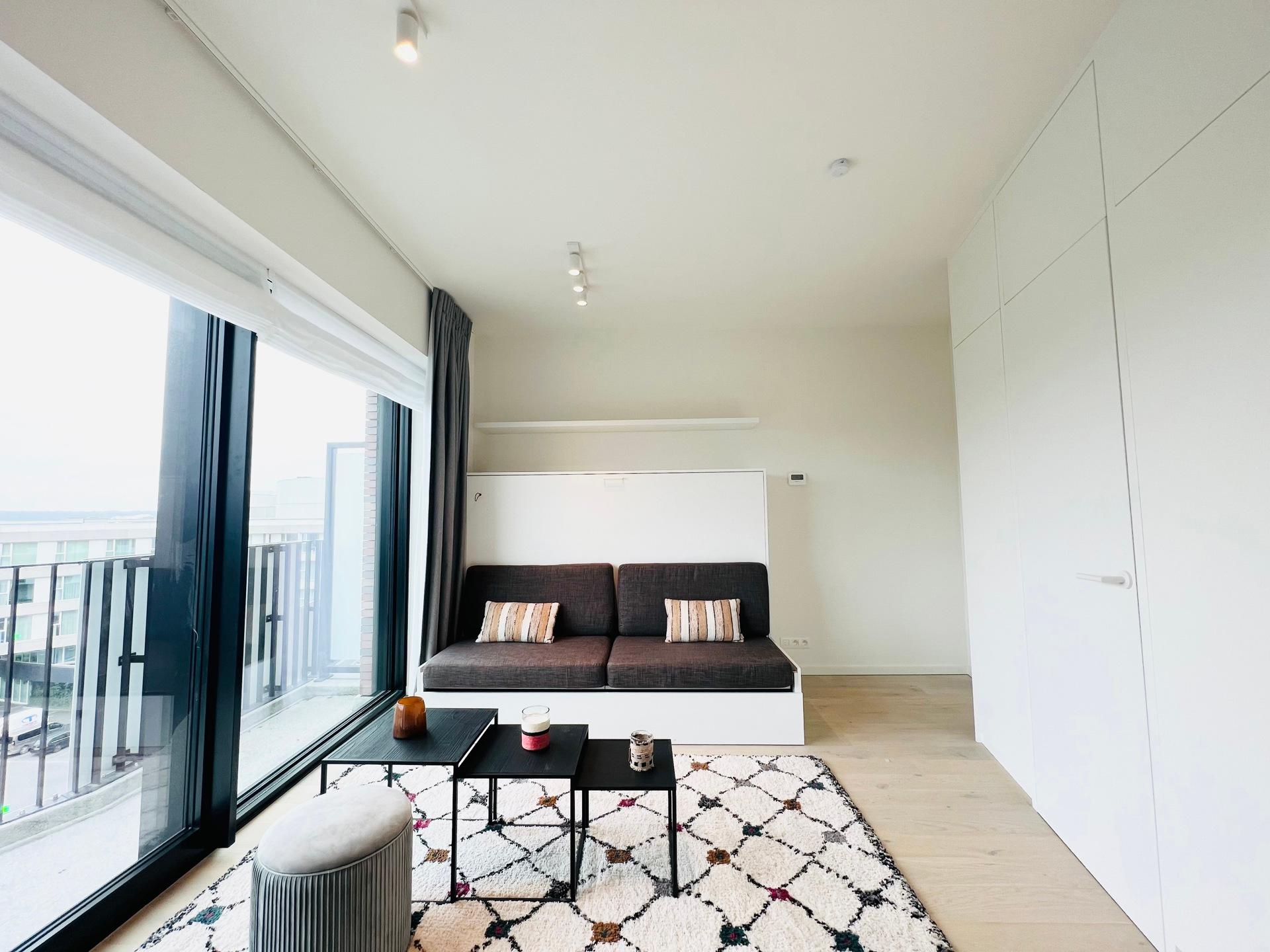 AUDERGHEM - Second occupation - Ideally located close to the Delta metro stop, ULB/VUB and Etterbeek station, magnificent QUASI-NEW FURNISHED STUDIO (0BEDROOM/1BATHROOM) and fully EQUIPPED of 35.93 sqm with terrace. On the 6th floor with an unobstructed view of a passive building, it comprises an entrance hall with cloakroom, a bright 25 sqm living room with semi-massive parquet flooring, a pull-out double bed and a super-equipped open-plan kitchen with breakfast/dining area. Shower room and toilet. Utility room with washing machine/dryer. 8.76 sqm terrace. Facilities: television, crockery, Nespresso coffee machine, toaster, electric kettle, pillows, duvet, hoover, ironing board, etc. Cellar, bike room. Charges: 75 euros/month provision (hot water, heating and maintenance of communal areas). EPC A (45). Exclusive offer from L&P!