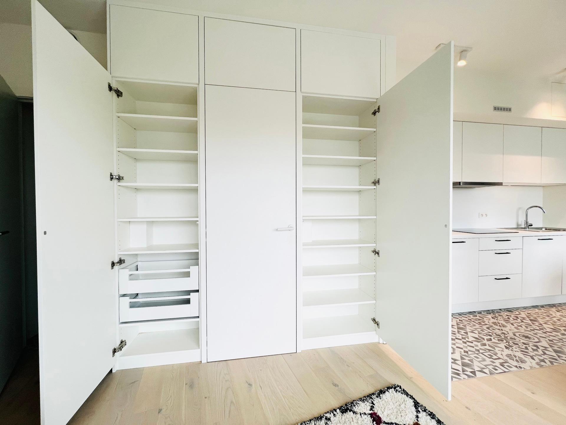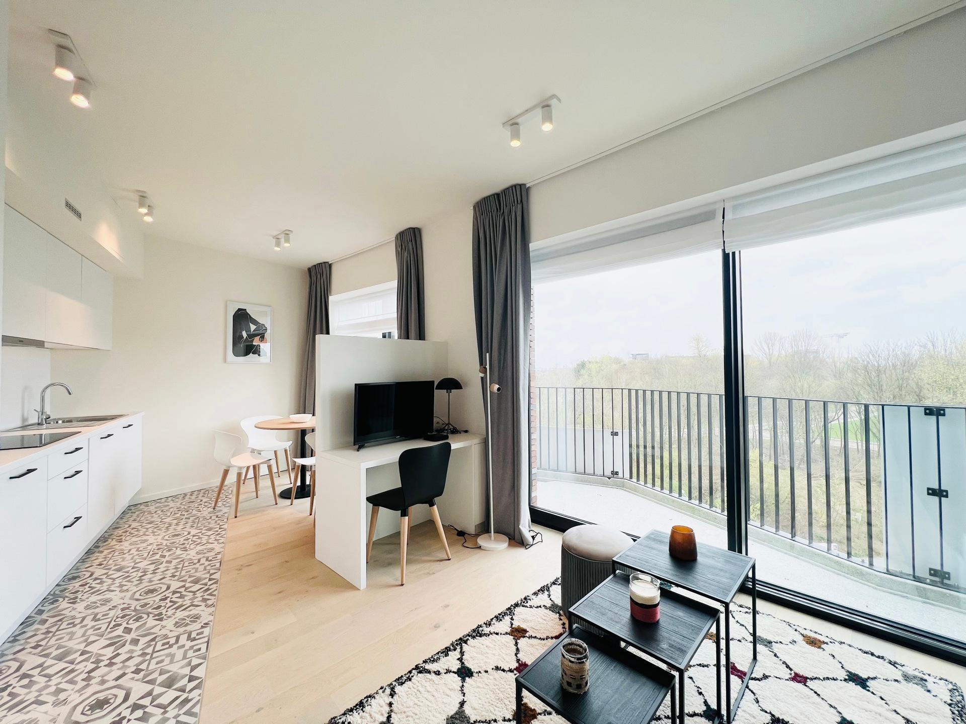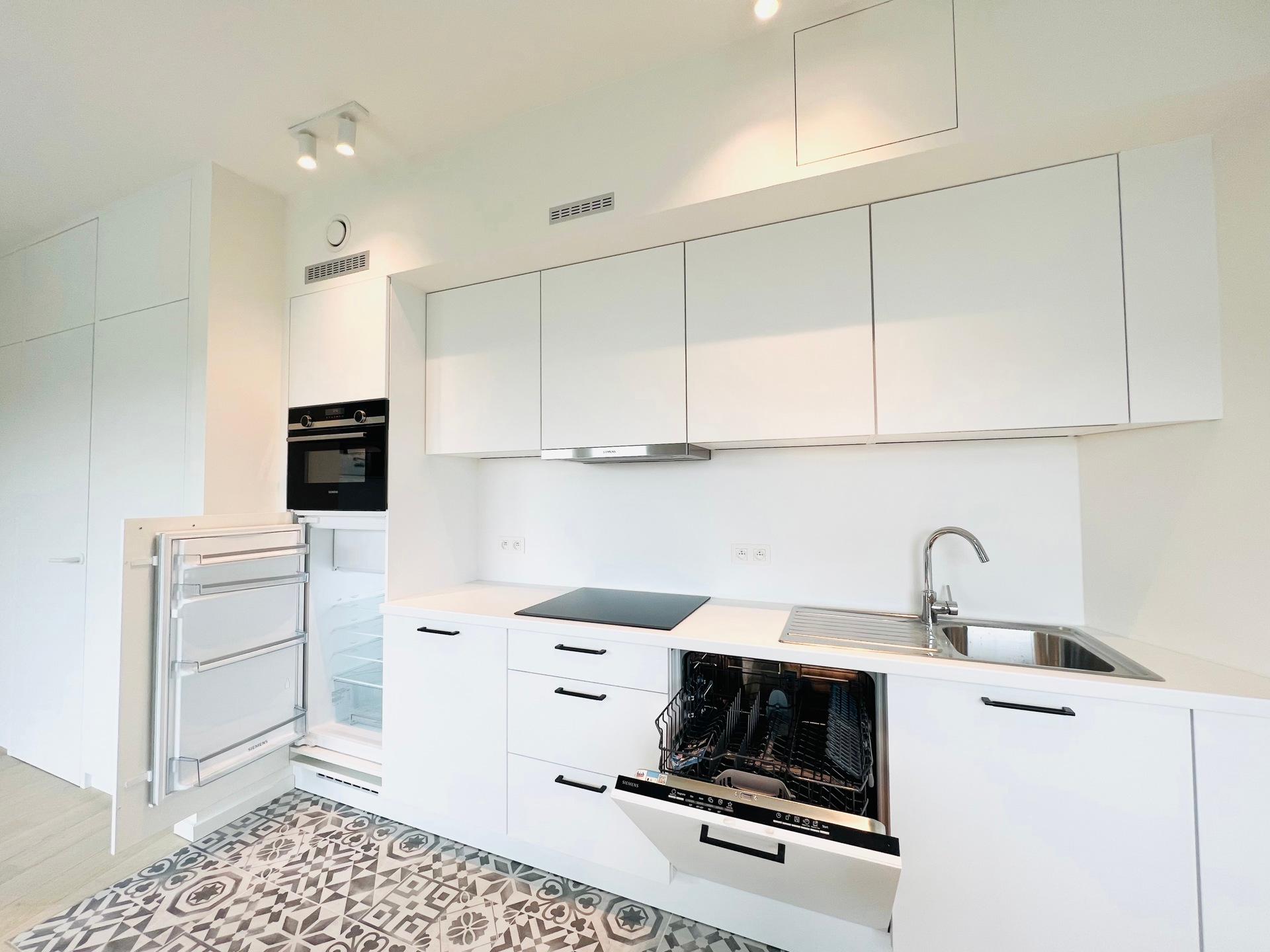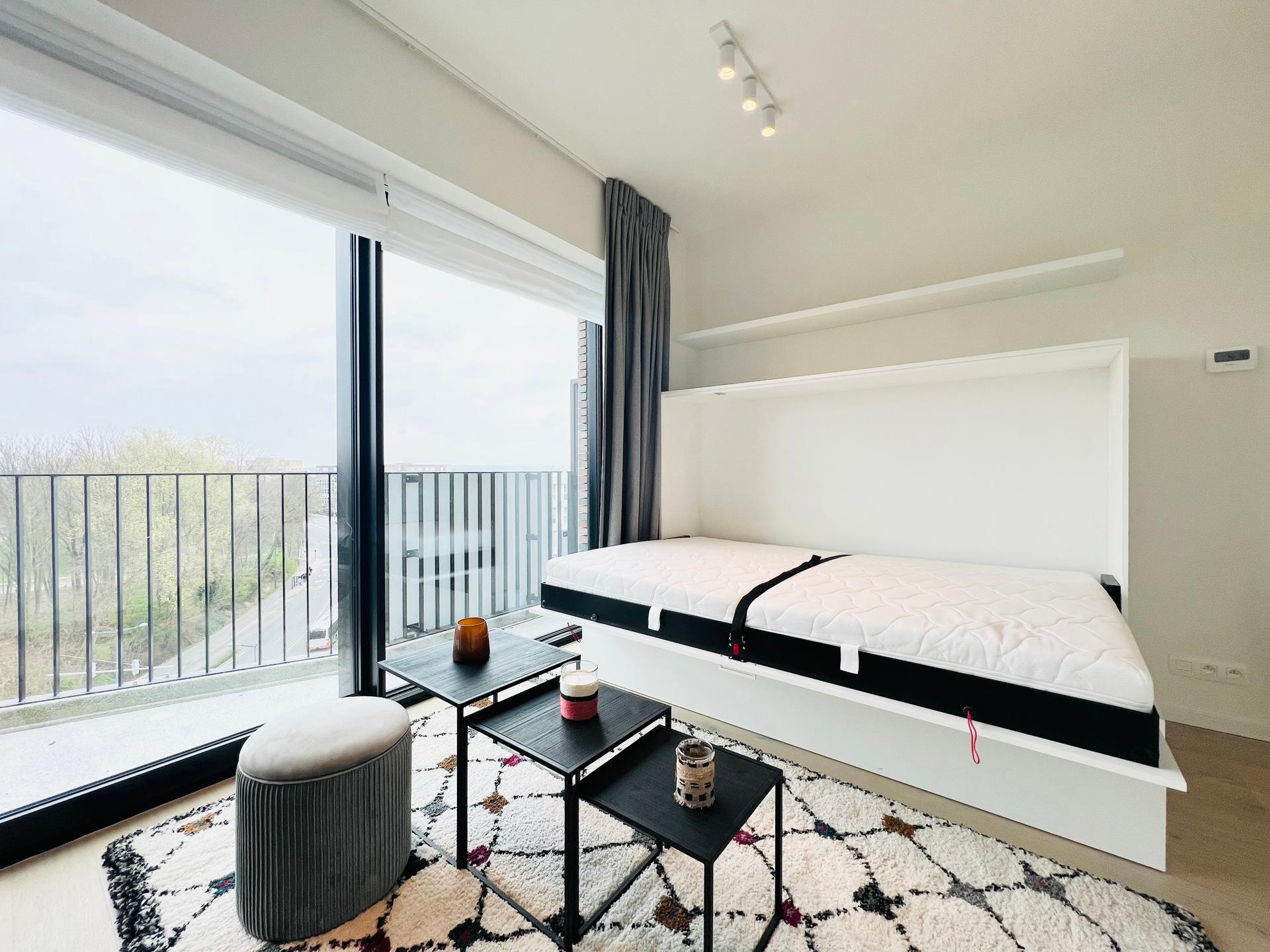 AUDERGHEM - Second occupation - Ideally located close to the Delta metro stop, ULB/VUB and Etterbeek station, magnificent QUASI-NEW FURNISHED STUDIO (0BEDROOM/1BATHROOM) and fully EQUIPPED of 35.93 sqm with terrace. On the 6th floor with an unobstructed view of a passive building, it comprises an entrance hall with cloakroom, a bright 25 sqm living room with semi-massive parquet flooring, a pull-out double bed and a super-equipped open-plan kitchen with breakfast/dining area. Shower room and toilet. Utility room with washing machine/dryer. 8.76 sqm terrace. Facilities: television, crockery, Nespresso coffee machine, toaster, electric kettle, pillows, duvet, hoover, ironing board, etc. Cellar, bike room. Charges: 75 euros/month provision (hot water, heating and maintenance of communal areas). EPC A (45). Exclusive offer from L&P!