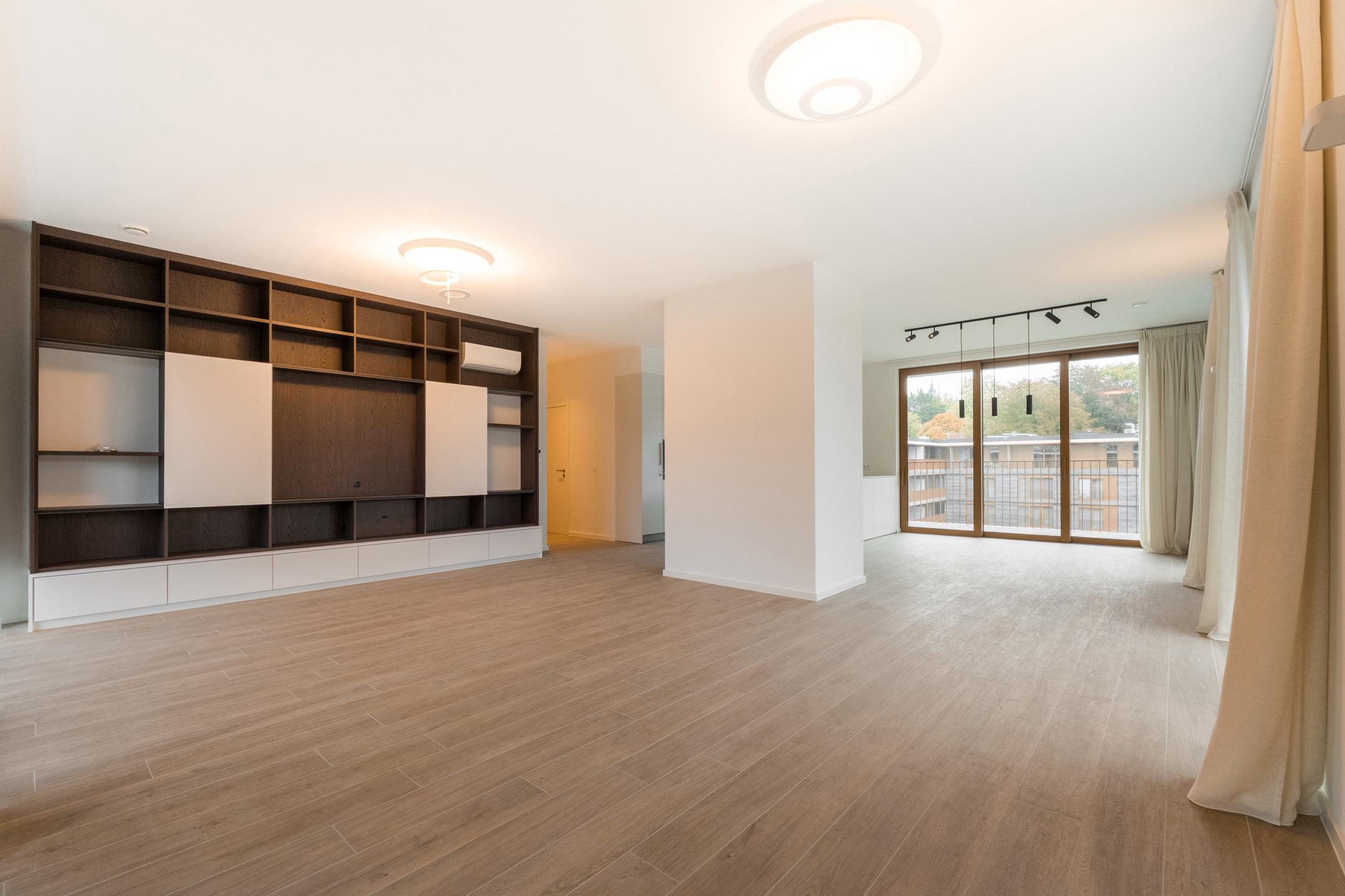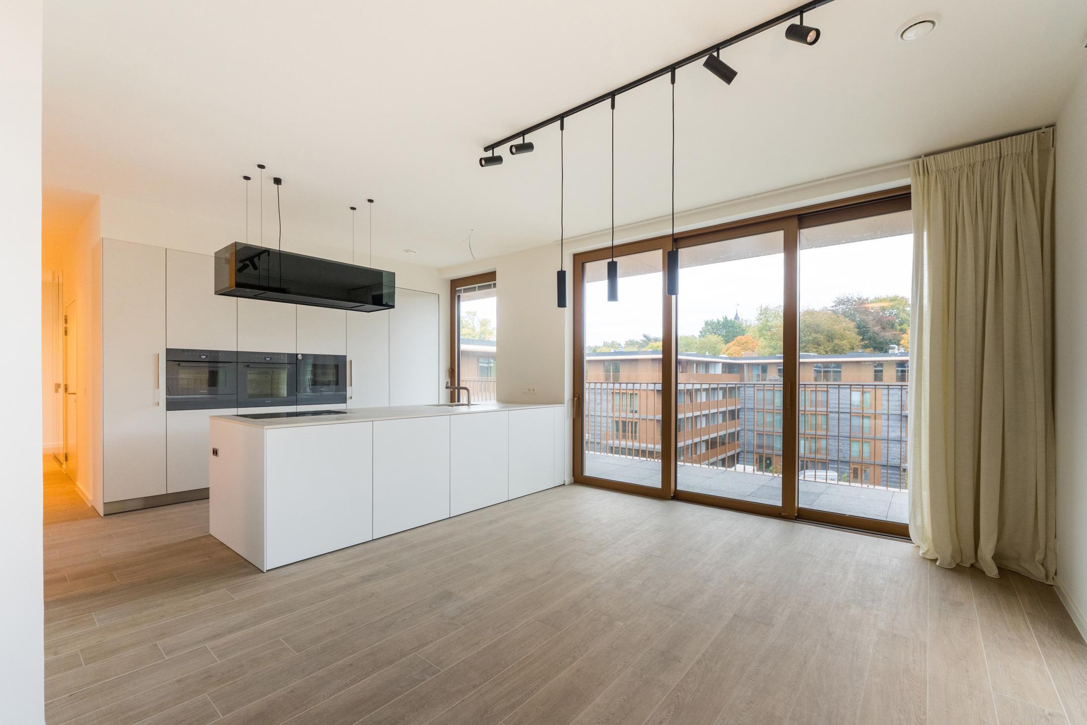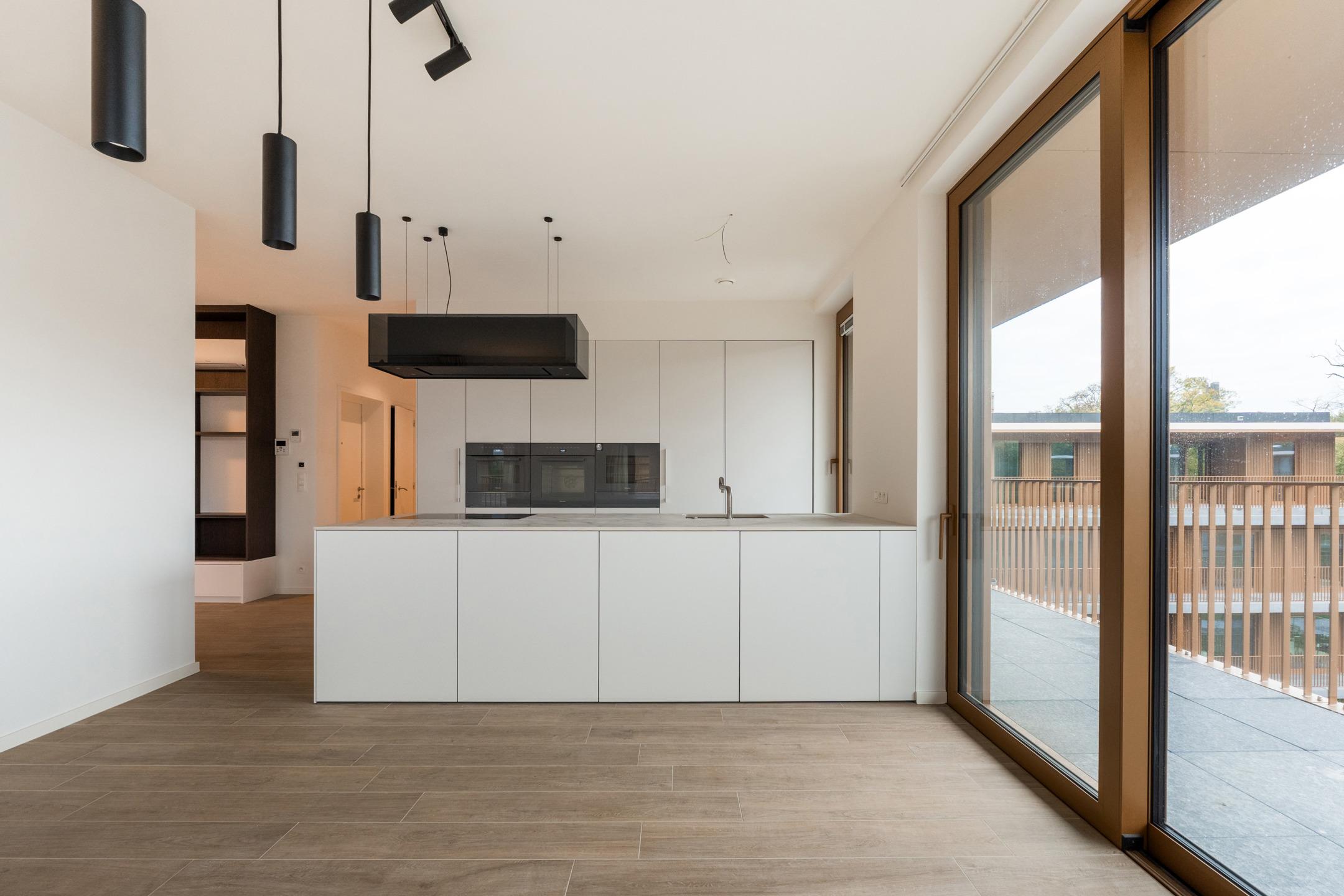 WATERMAEL-BOITSFORT, in immediate proximity to the Sonian Forest and Mix Brussels, this magnificent PENTHOUSE (3bed/1bath/1shower room) of ±169m² with private lift arriving directly into the apartment, first occupation. It comprises an entrance hall with cloakroom and guest toilet, spacious living room of ±40m², dining area with open-plan fully equipped Bulthaup kitchen of ±22m². All these rooms benefit from beautiful natural light thanks to large windows and open onto an exceptional terrace of ±46m². The night hall leads to a ±18m² master suite with dressing room and bathroom, two bedrooms of ±10 and 9m², and a shower room. Separate laundry area. Optimal comfort thanks to modern equipment and high-quality finishes: elegant tiling, refined lighting, underfloor heating, air conditioning, double-flow ventilation system, home automation system, electric screens, blinds in the bedrooms, curtains and reinforced security door. Possibility of a closed garage box with cellar for €160/month. Possibility of a second closed garage box for €150/month. Possibility of a wine cellar for €120/month. Provision for charges: €300/month (common areas and heating). EPC: A. To be discovered at L&P!