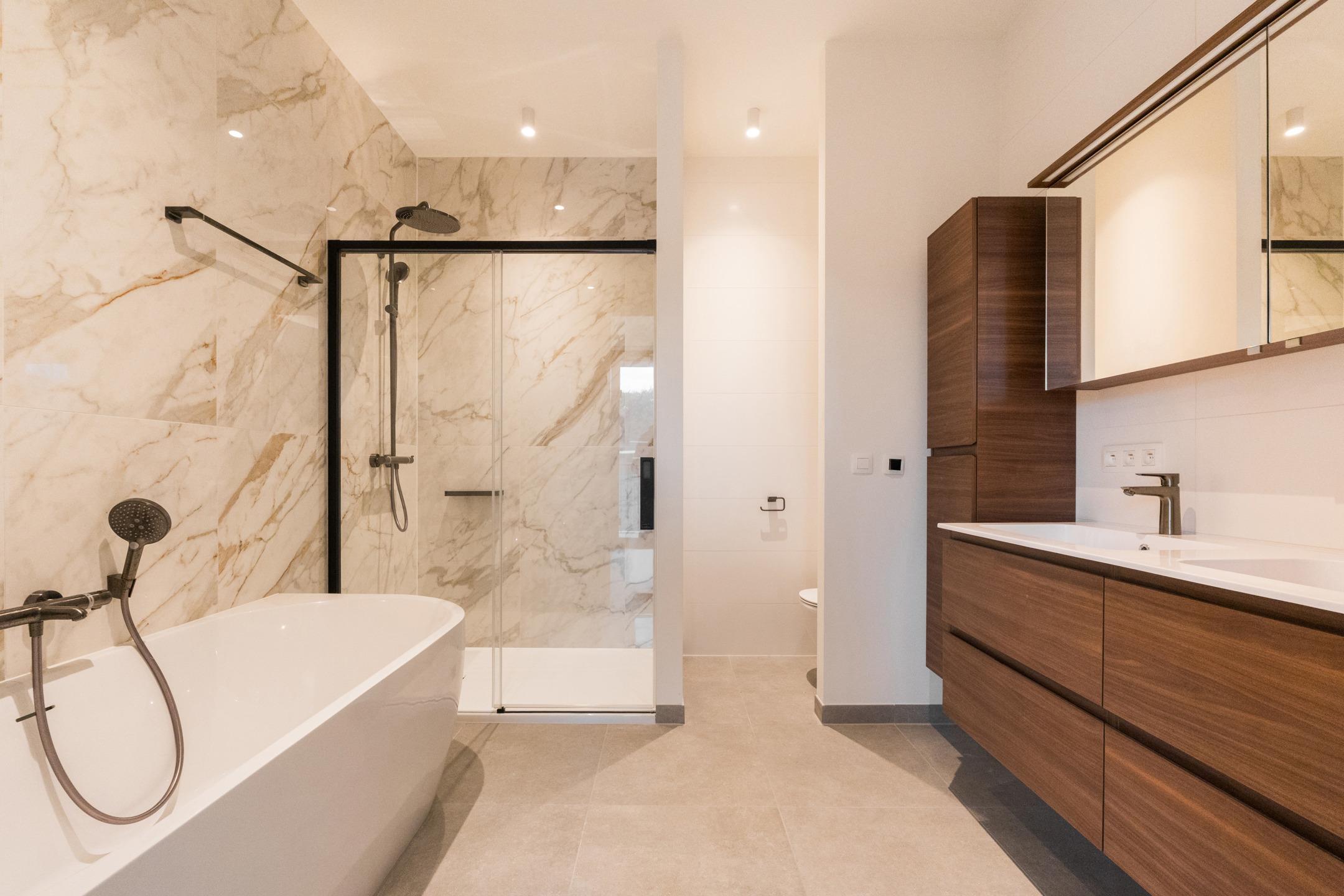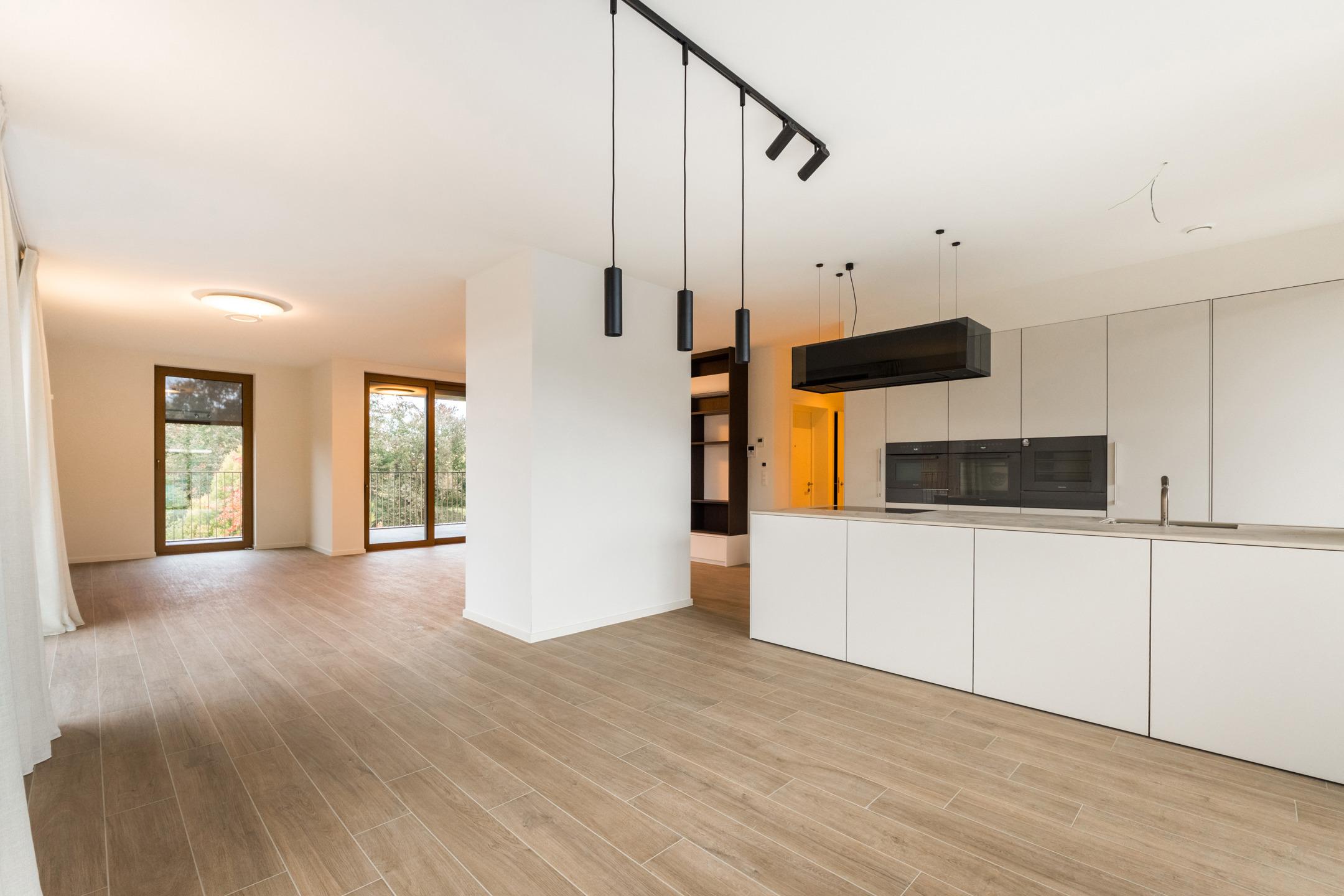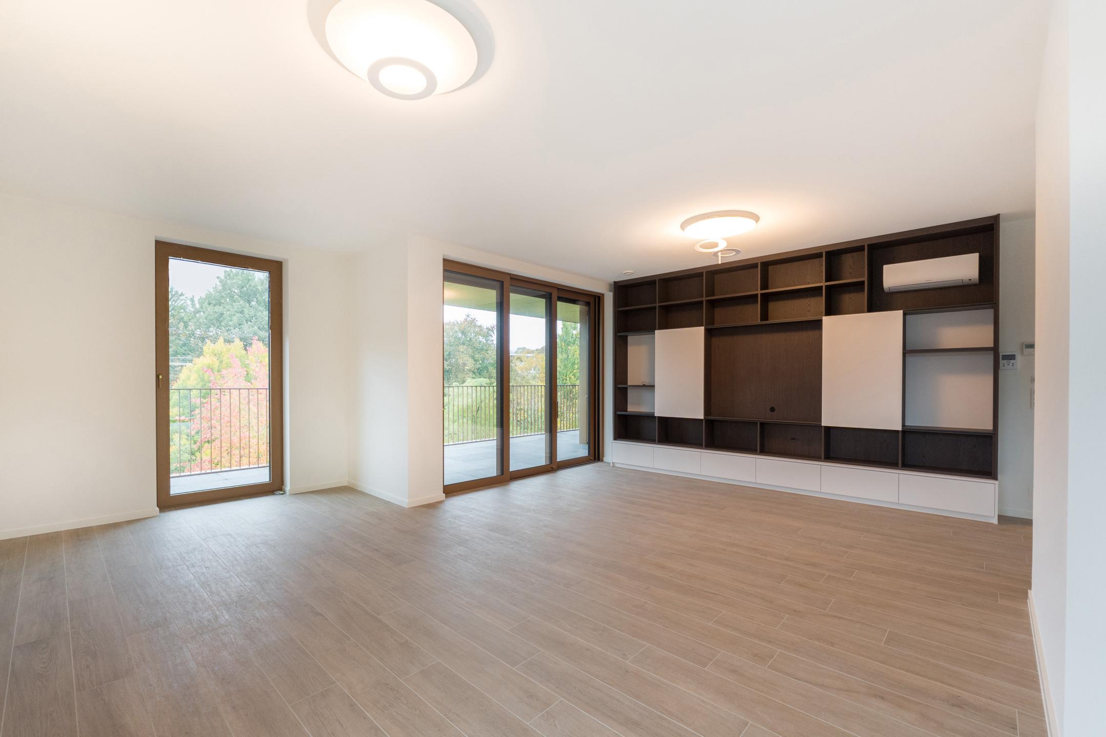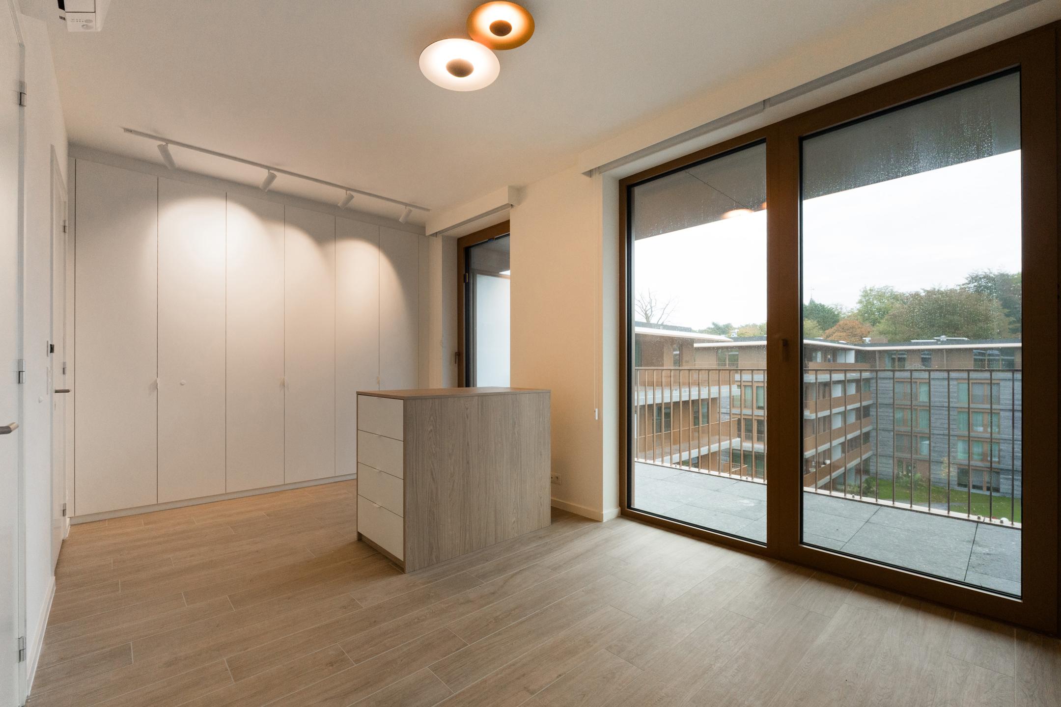 WATERMAEL-BOITSFORT, in immediate proximity to the Sonian Forest and Mix Brussels, this magnificent PENTHOUSE (3bed/1bath/1shower room) of ±169m² with private lift arriving directly into the apartment, first occupation. It comprises an entrance hall with cloakroom and guest toilet, spacious living room of ±40m², dining area with open-plan fully equipped Bulthaup kitchen of ±22m². All these rooms benefit from beautiful natural light thanks to large windows and open onto an exceptional terrace of ±46m². The night hall leads to a ±18m² master suite with dressing room and bathroom, two bedrooms of ±10 and 9m², and a shower room. Separate laundry area. Optimal comfort thanks to modern equipment and high-quality finishes: elegant tiling, refined lighting, underfloor heating, air conditioning, double-flow ventilation system, home automation system, electric screens, blinds in the bedrooms, curtains and reinforced security door. Possibility of a closed garage box with cellar for €160/month. Possibility of a second closed garage box for €150/month. Possibility of a wine cellar for €120/month. Provision for charges: €300/month (common areas and heating). EPC: A. To be discovered at L&P!