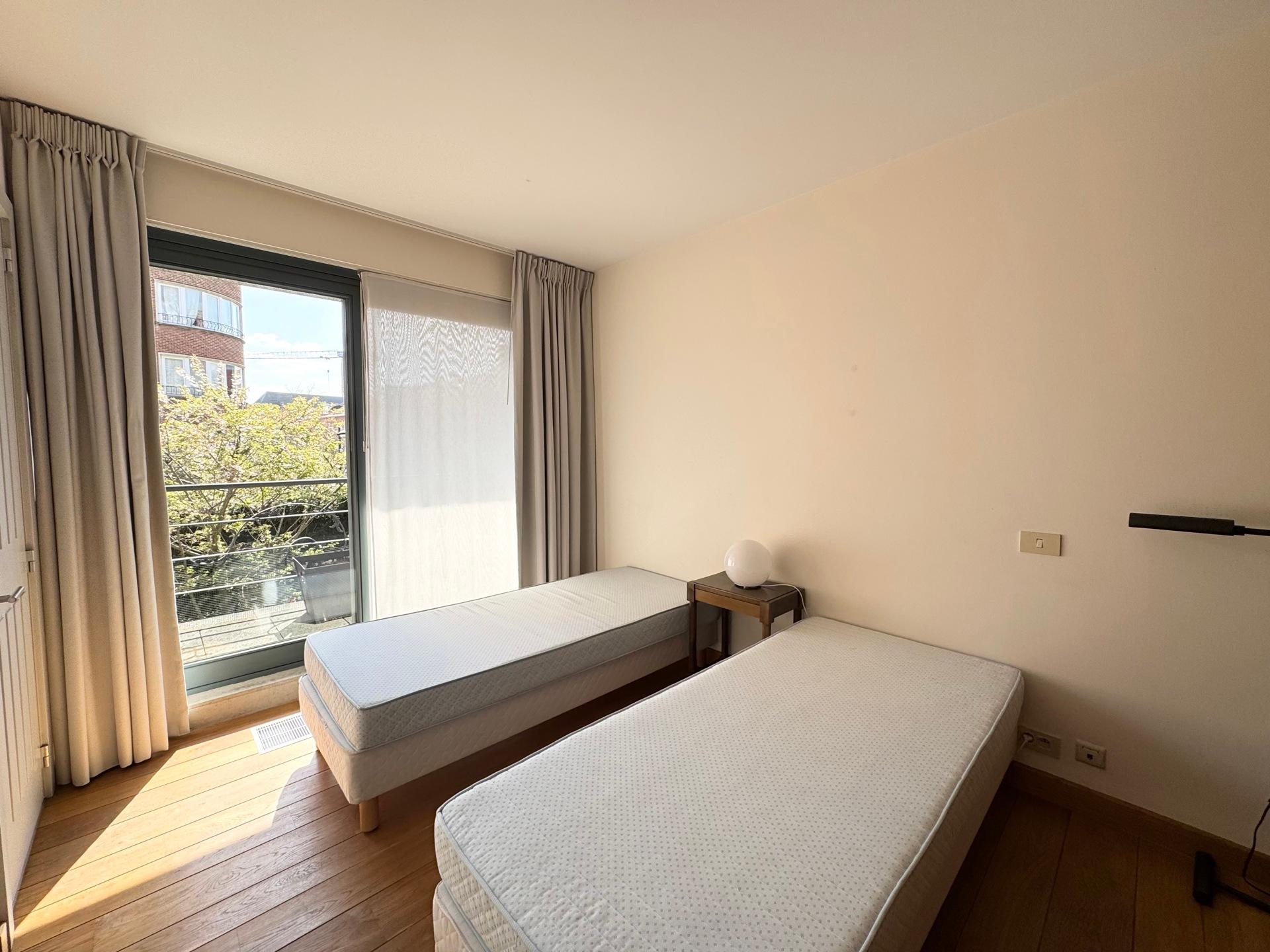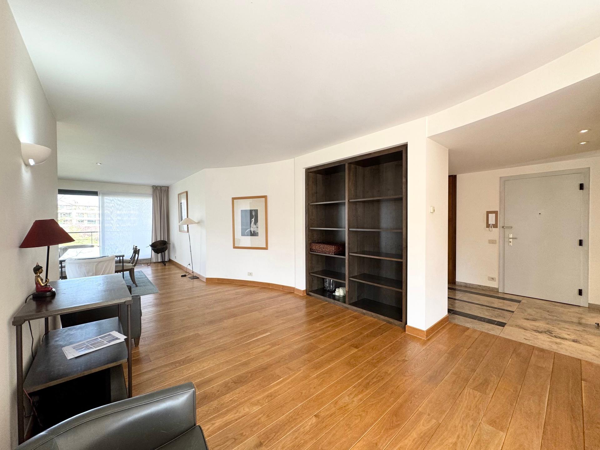 WOLUWE SAINT LAMBERT, near the Woluwe shopping center and amenities. Beautiful FURNISHED APARTMENT (2 bedrooms/2 bathrooms) of 140 m² with a terrace and parking. Located on the 1st floor, it consists of an entrance hall with a cloakroom and guest toilet, a spacious 35 m² parquet living room, and a 26 m² dining room, a fully equipped kitchen with a washing machine and dryer, 2 parquet bedrooms (16 and 11 m²), one with an attached bathroom and toilet, and the other with an attached shower room, each with built-in closets. In the basement, a cellar and a garage for 1 car (+150€/month). Monthly charge provision: +190€/month (common areas and water). EPC: F. To be discovered at L&P!