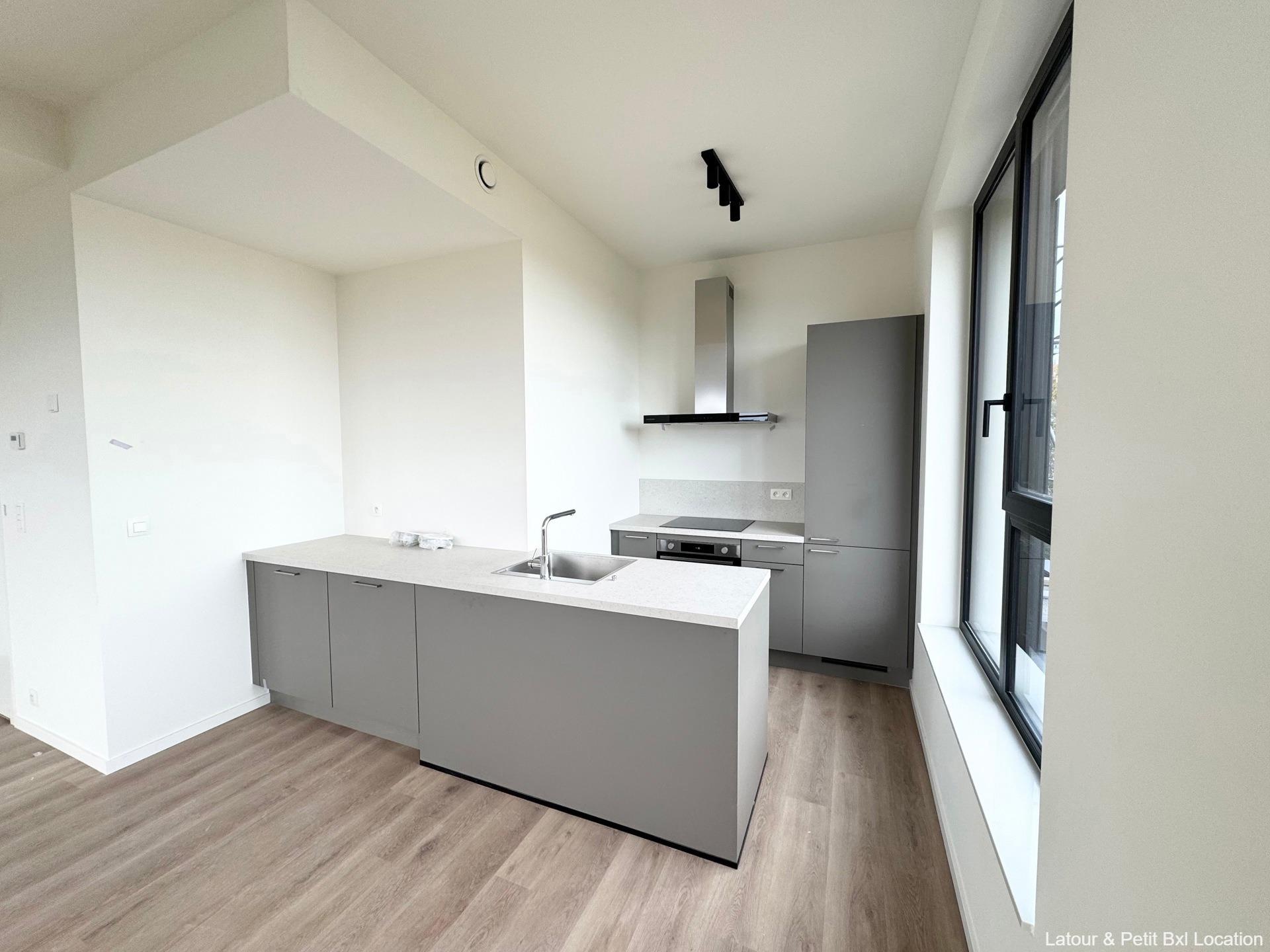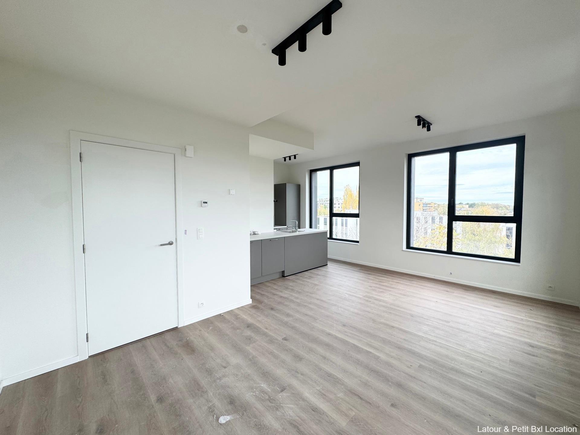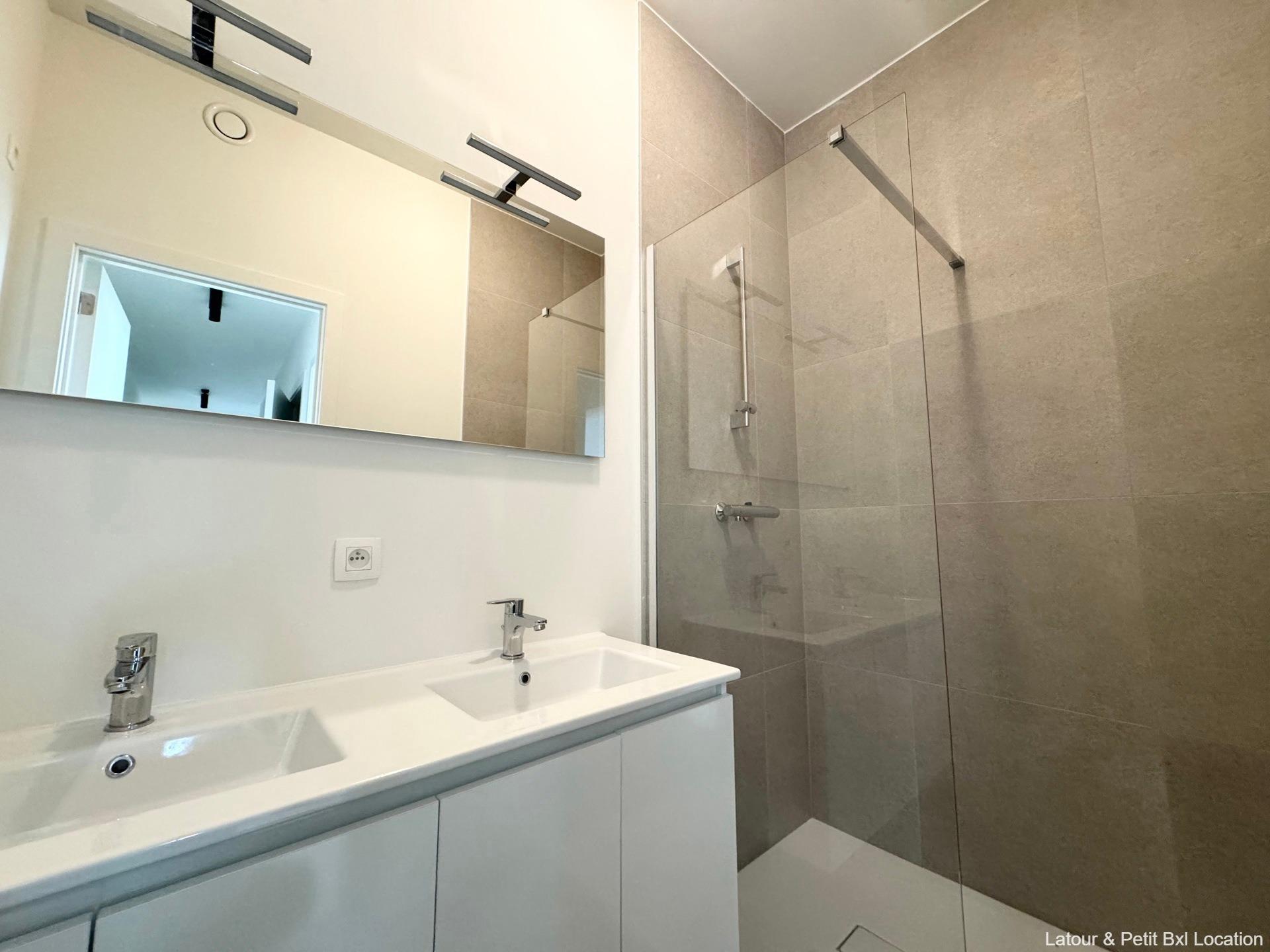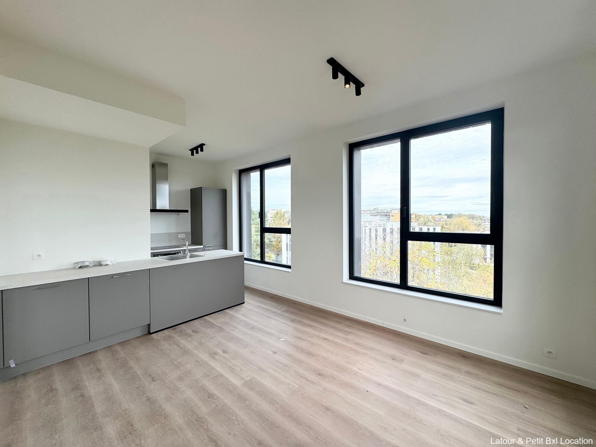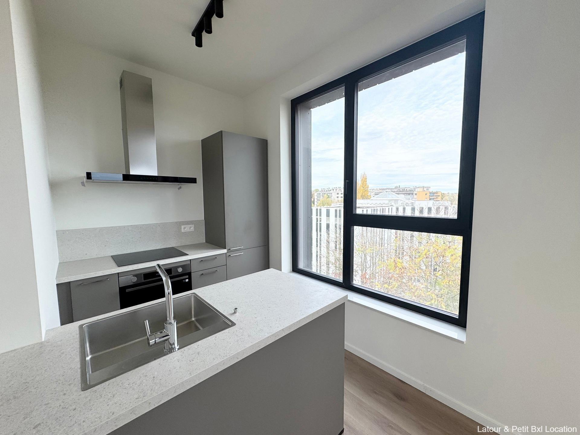 WOLUWE-SAINT-LAMBERT – Ideally located near Woluwe Shopping and major roads, in a pleasant neighborhood. Magnificent NEW APARTMENT (2Bd/1Shwr) of ± 85 m² with TERRACE. On the 6th floor of a new building, it consists of an entrance hall with guest toilet, bright 23 m² living room with elegant fully-equipped open kitchen. 2 beautiful bedrooms (15 and 10 m²), shower room. Separate laundry room. Optional parking space (+125 euros/month). Cellar. Charges: 100 euros/month provision (waiver of recourse insurance, maintenance of common areas). Curtain rails and light fixtures. Solar panels. Excellent energy performance: EPC B (65.83 kWh/m²/year). To be discovered at L&P!