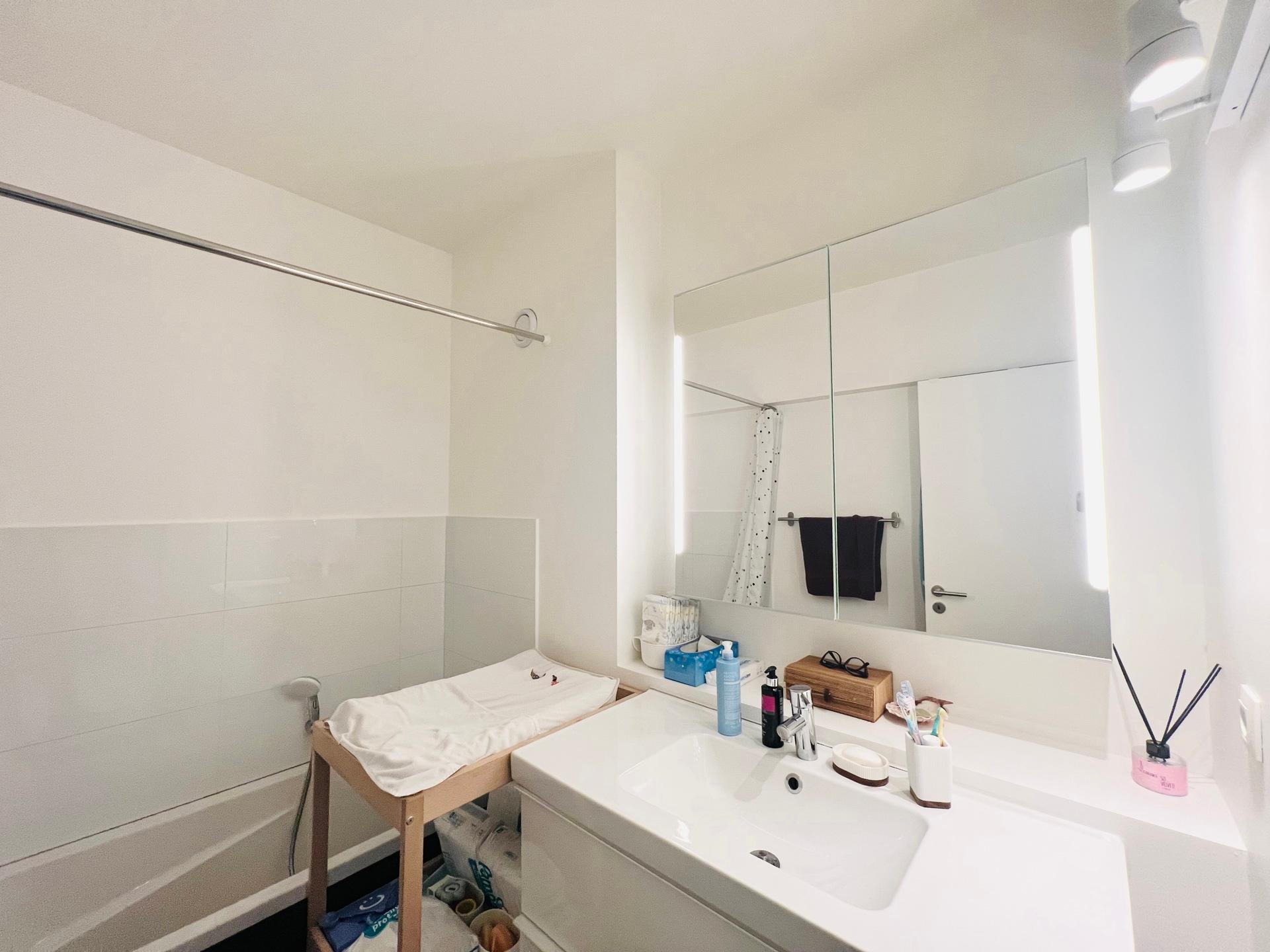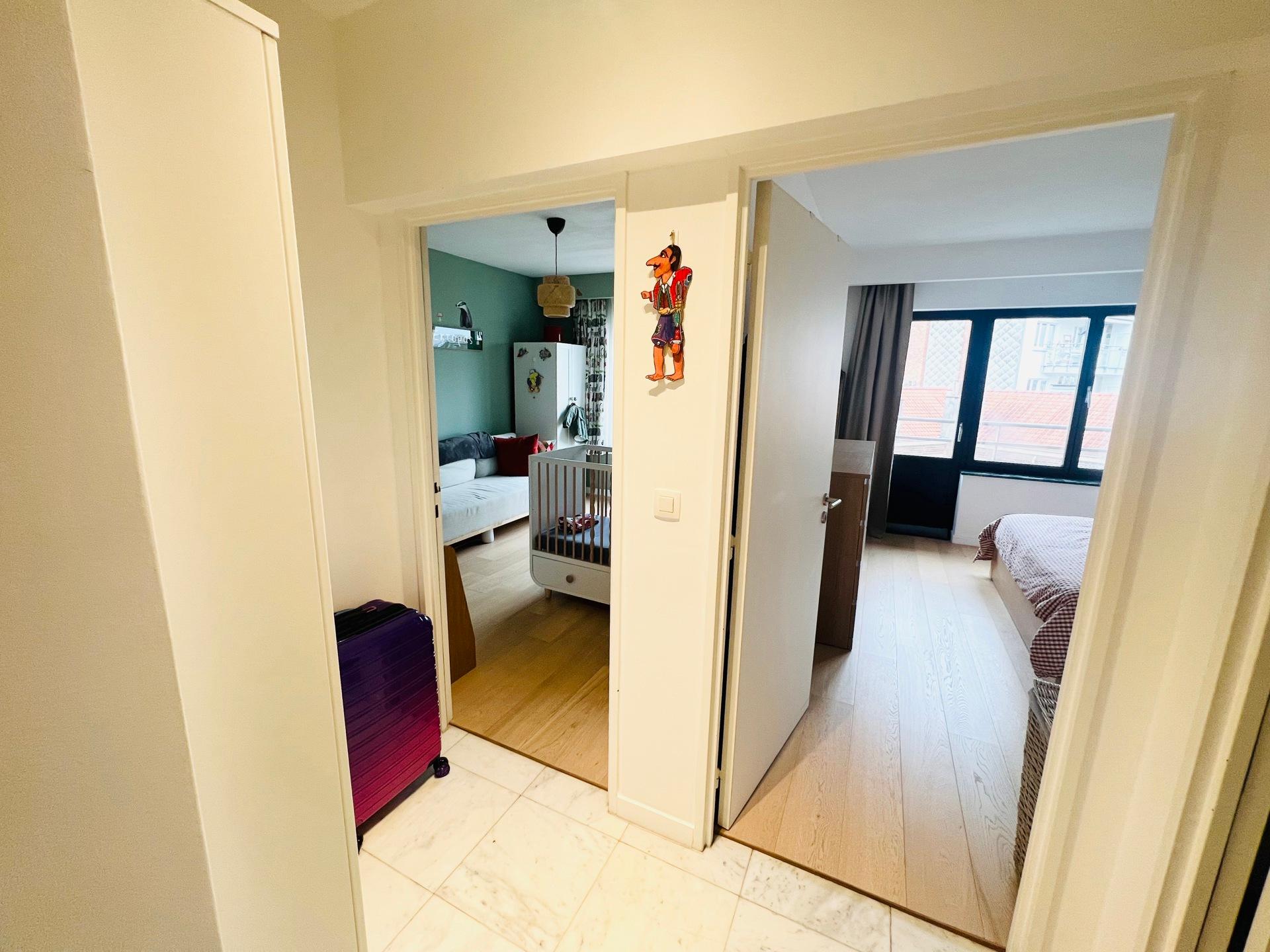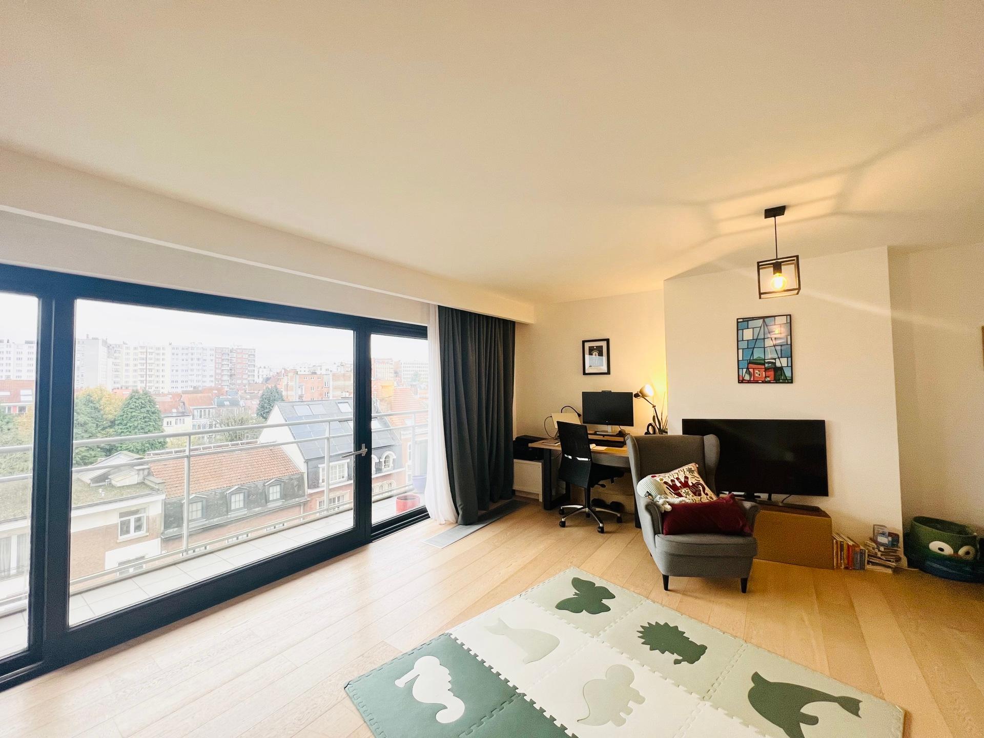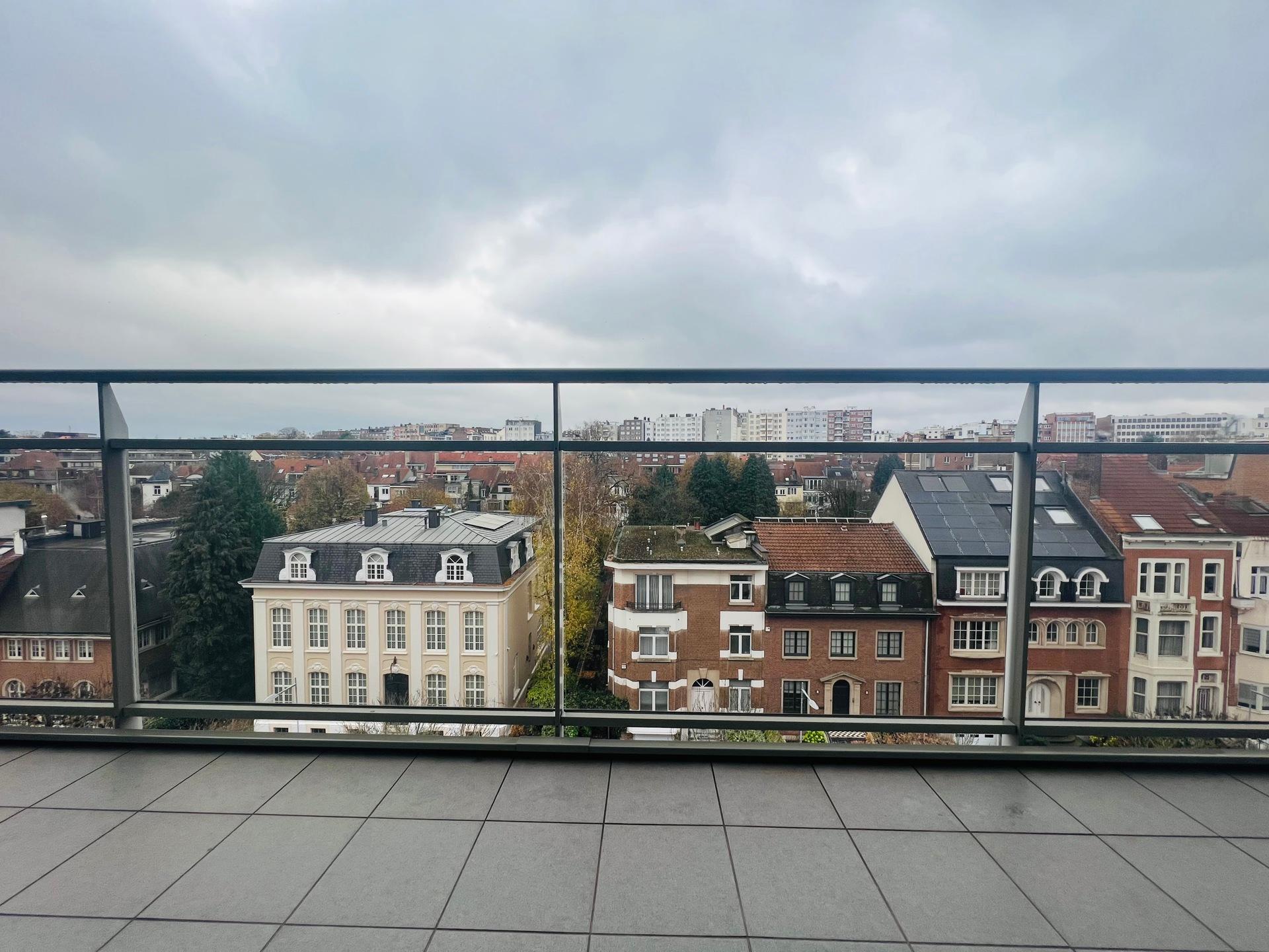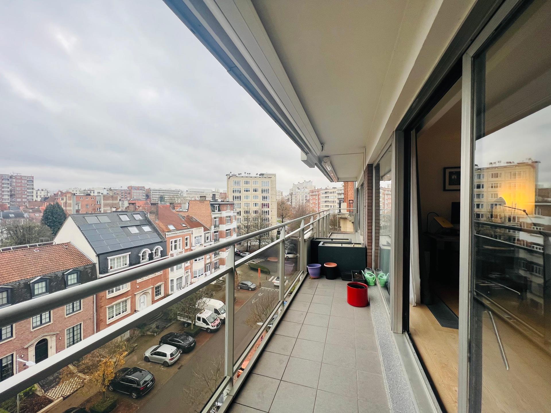 WOLUWE-SAINT-LAMBERT, ideally located near Montgomery, and a stone's throw from the Joséphine-Charlotte metro station, in a quiet and pleasant street, magnificent APARTMENT (2 bedrooms/1 bathroom/1 shower room) of ± 106 m² with a beautiful terrace offering an unobstructed view. On the 6th floor, it comprises an entrance hall with guest toilet, bright living room with parquet flooring, and a fully equipped open-plan kitchen with central island. Two bedrooms, one with en-suite shower room, and a separate bathroom. South-facing terrace with sun awning. Cellar. Possibility to rent a large parking space (+125 euros/month). Charges: 150 euros/month (cold water, maintenance of common areas). EPC D (195). Come and see it at L&P!