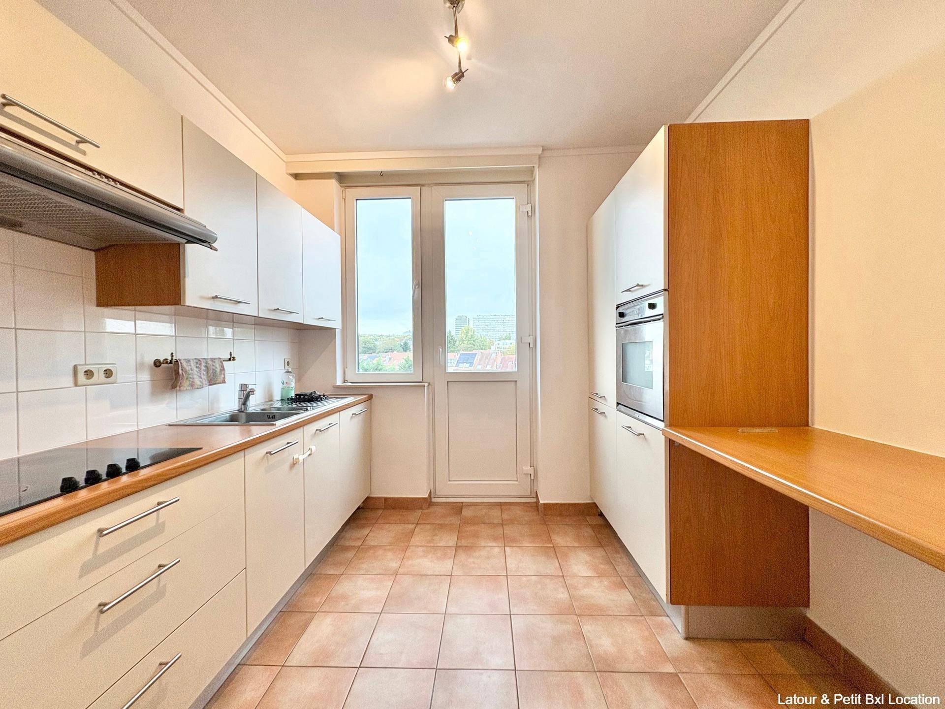 WOLUWE-SAINT-LAMBERT, ideally located just steps from the metro and Woluwe Shopping, bright APARTMENT (3 bedrooms / 1 bathroom) of 145 m² with terrace. Located on the 5th floor, it consists of a pleasant parquet-floored living room of ±45 m² with access to a terrace, a fully equipped kitchen, a night hall with built-in wardrobes, three bedrooms (14, 12 and 12 m²), a bathroom (1 sink, bath/shower), and a separate toilet. Armoured door. Large cellar. Built-in wardrobes. Monthly service charges: €220 (common areas, hot water and heating). EPC: D (new EPC in progress). Available at L&P!