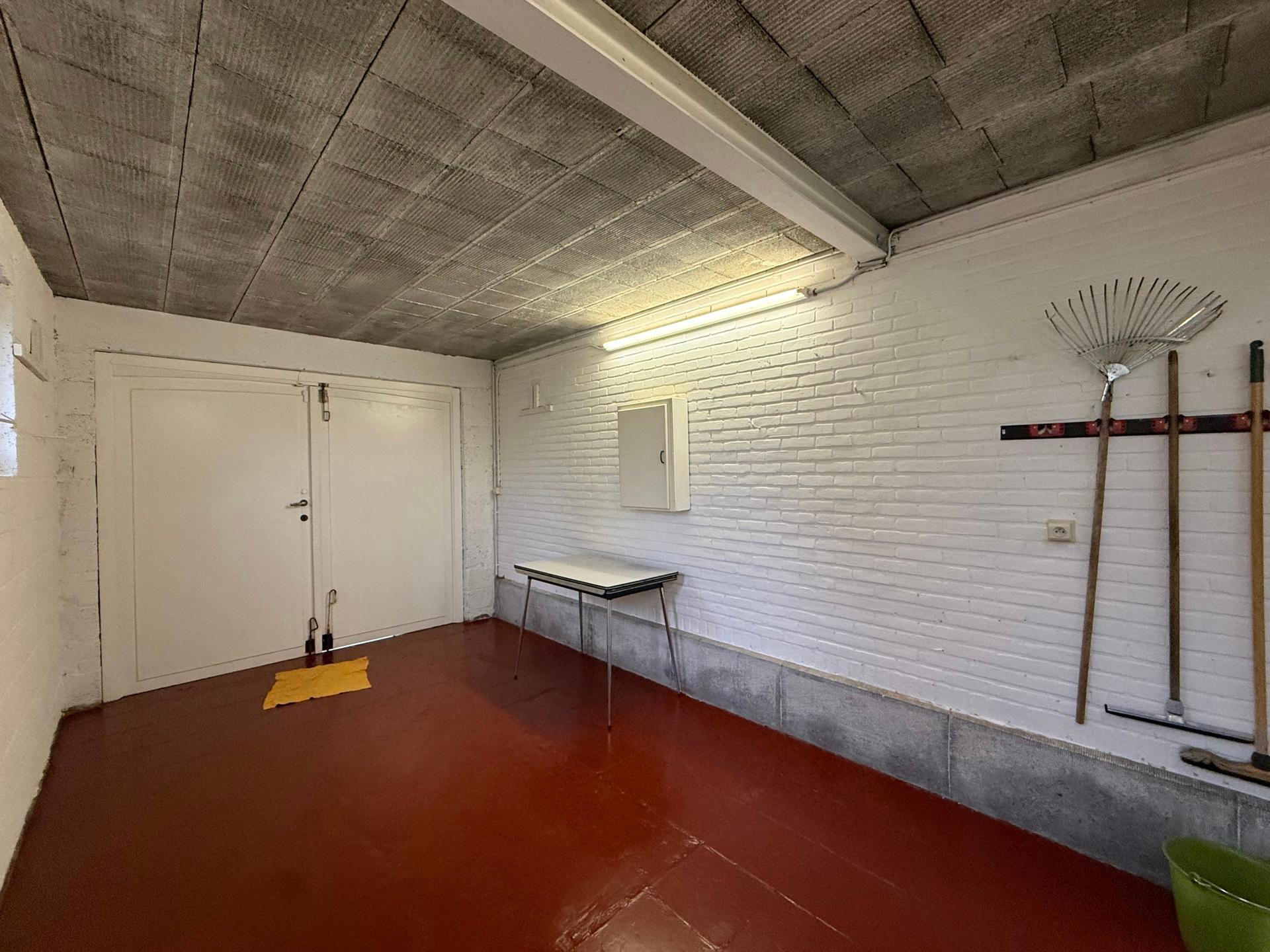 The ground floor comprises an entrance hall with guest toilet, a bright living room with cassette fireplace and a fully equipped kitchen. A storage room and a garage complete this level, with direct access to the garden. A parking space is located in front of the garage.
