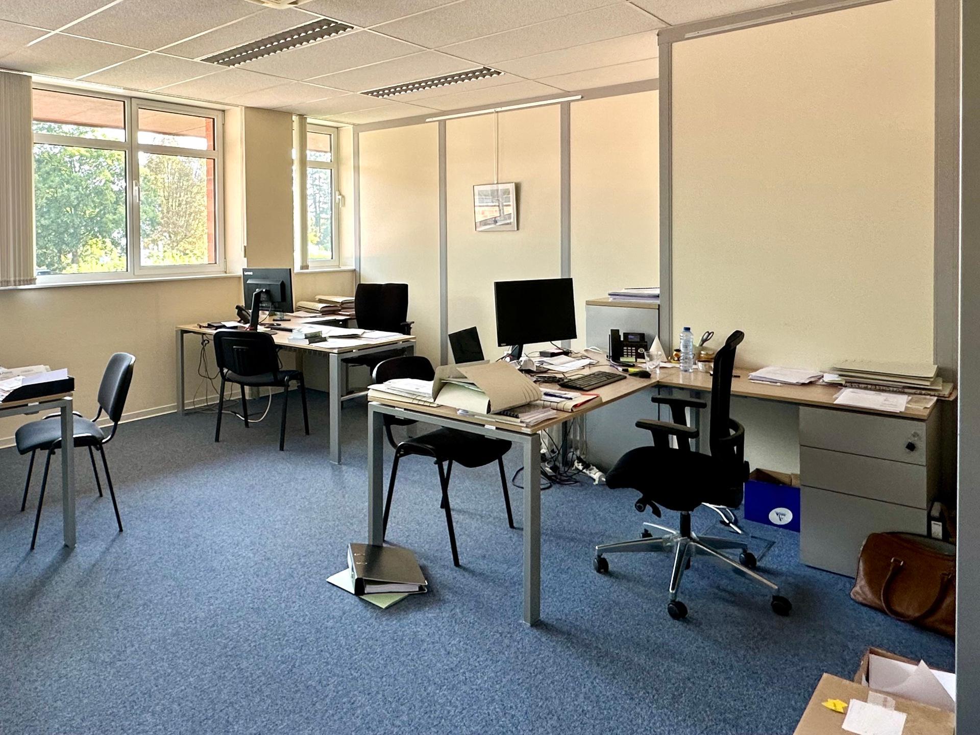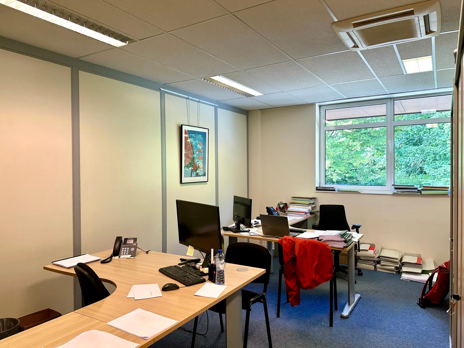 LASNE, located between Lasne and Waterloo, in a business center surrounded by greenery and close to shops. Spacious OFFICES with a total surface area of ±180 m², consisting of a kitchenette area, a storage room of ±17 m², a meeting room of 29 m², and five offices of ±32, 21, 17, 17, and 16 m². One outdoor parking space included. Service charges: €1,085/month (heating, water, common areas, property tax). Available for viewing at L&P!