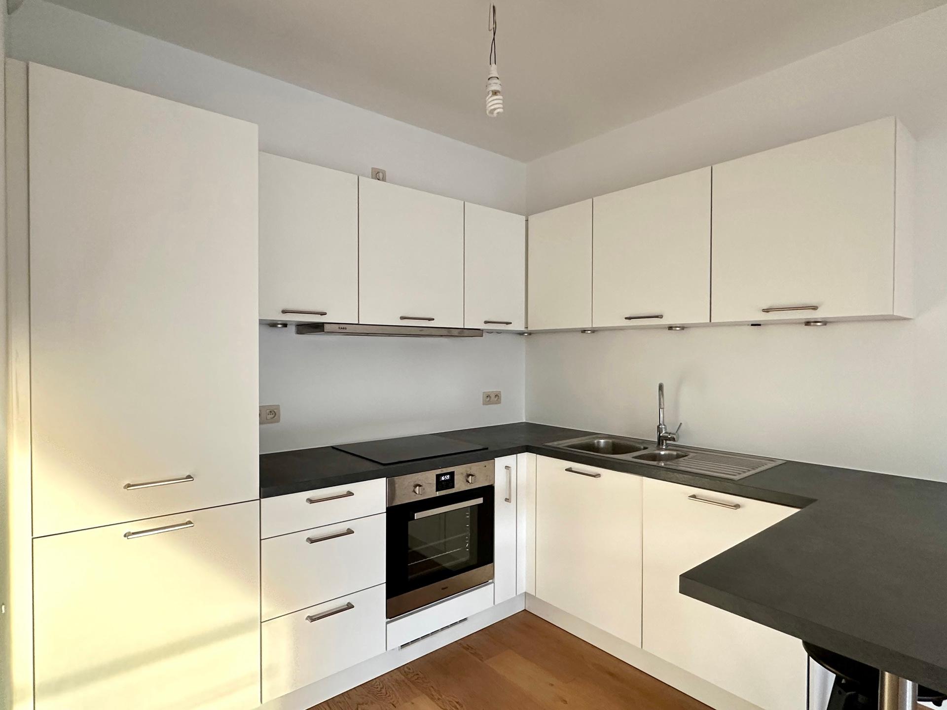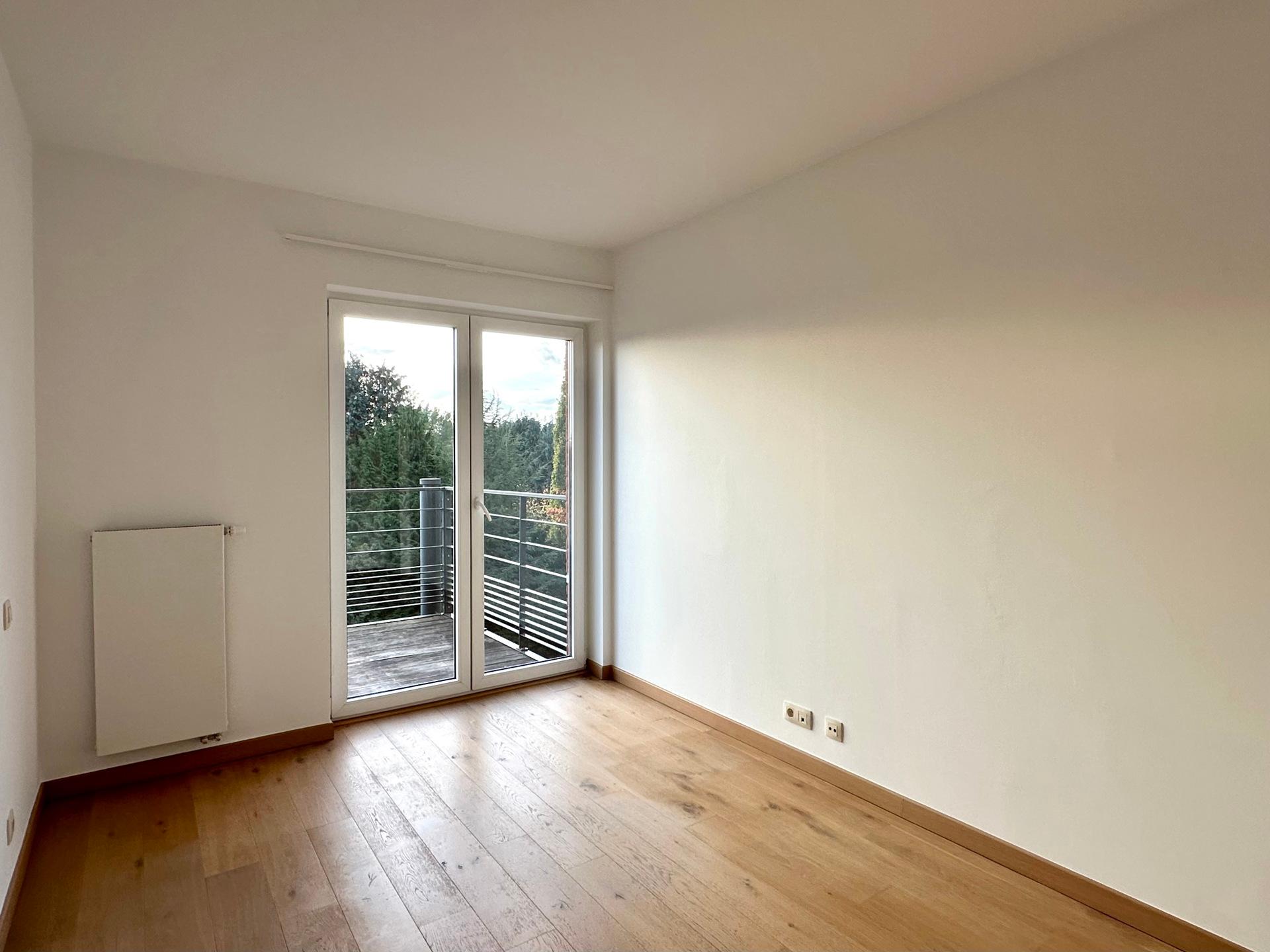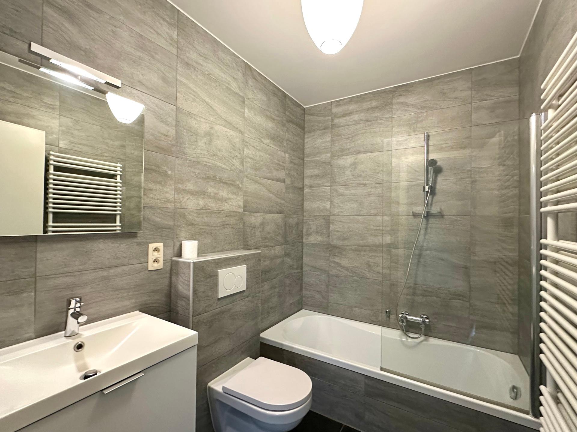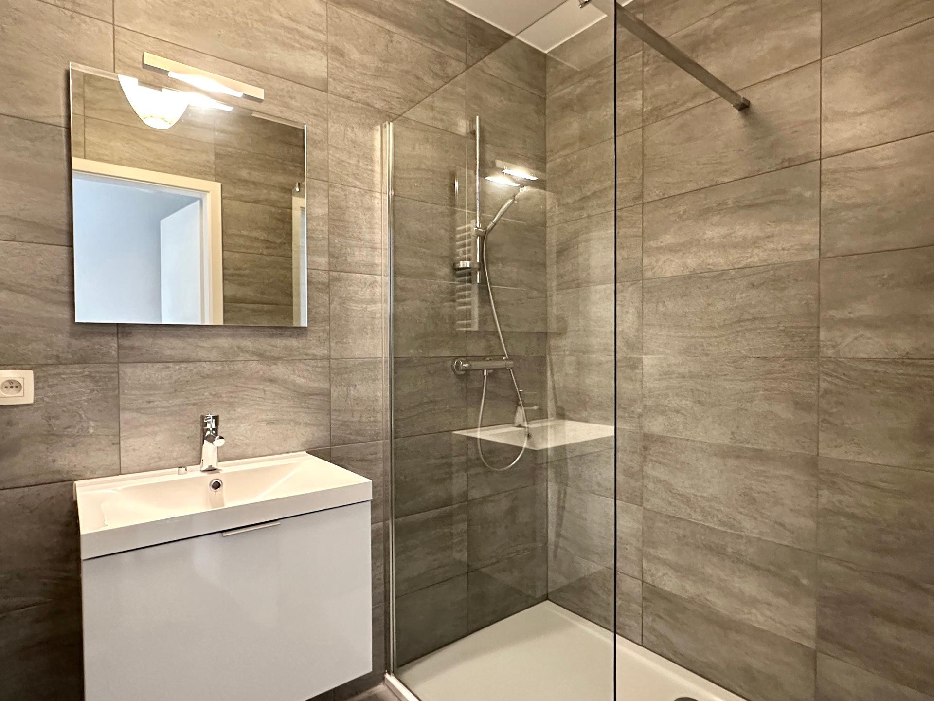 WATERLOO, Mont-Saint-Jean district. Spacious APARTMENT (2 beds / 1 bthr / 1 shwr) in a recent building, ideally located close to numerous shops and schools. It comprises an entrance hall with guest toilet, laundry area, bright living room of ±34 m² with access to a pleasant terrace, fully-equipped kitchen, two bedrooms of ±17 m² and 13 m², each with its own bathroom or shower room. Monthly charges provision: €120 (includes common areas, hot water, heating). Energy rating: A. Available for viewing at L&P!