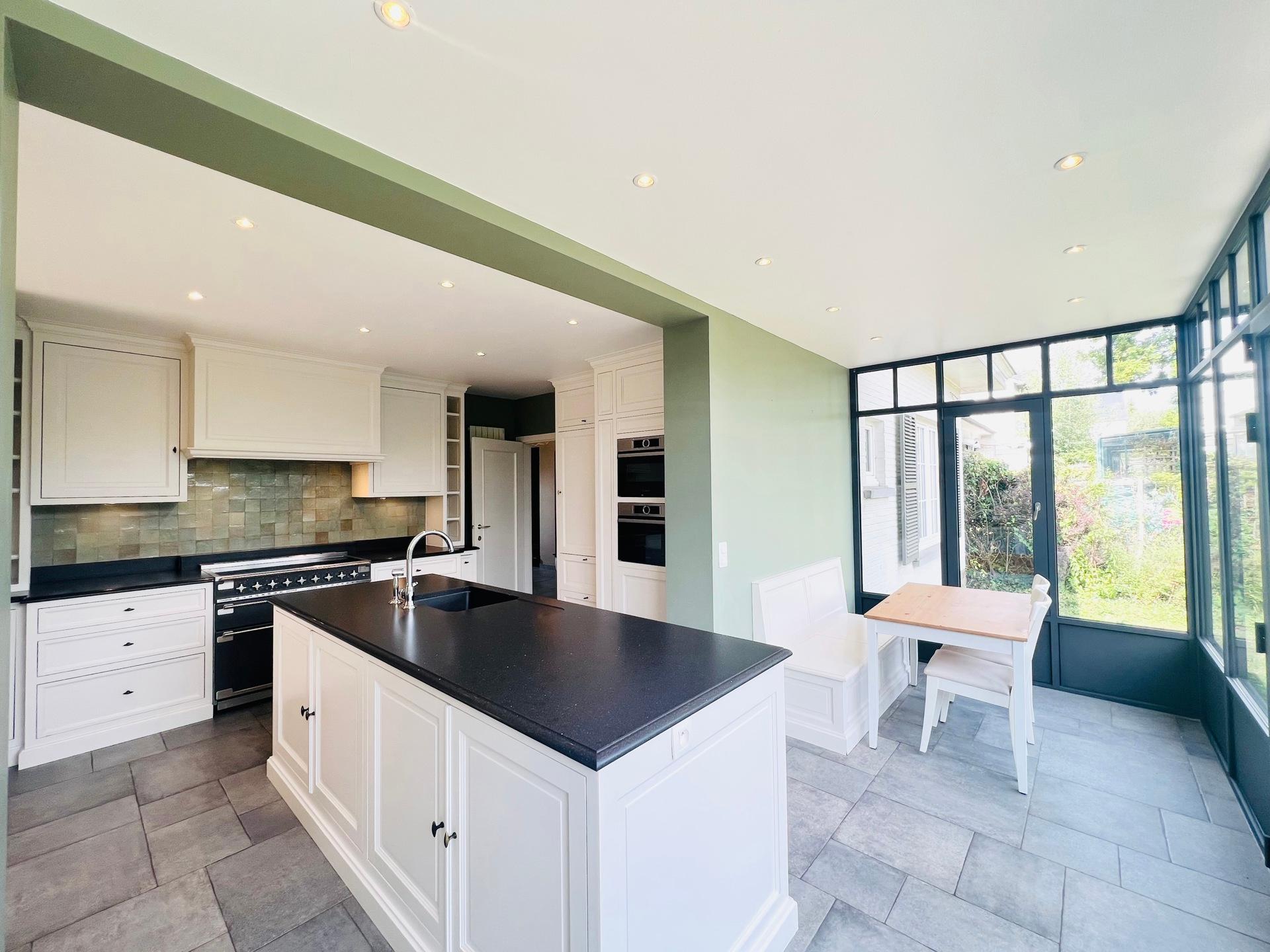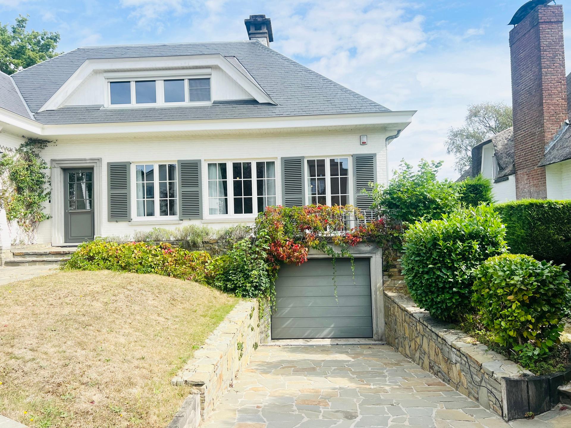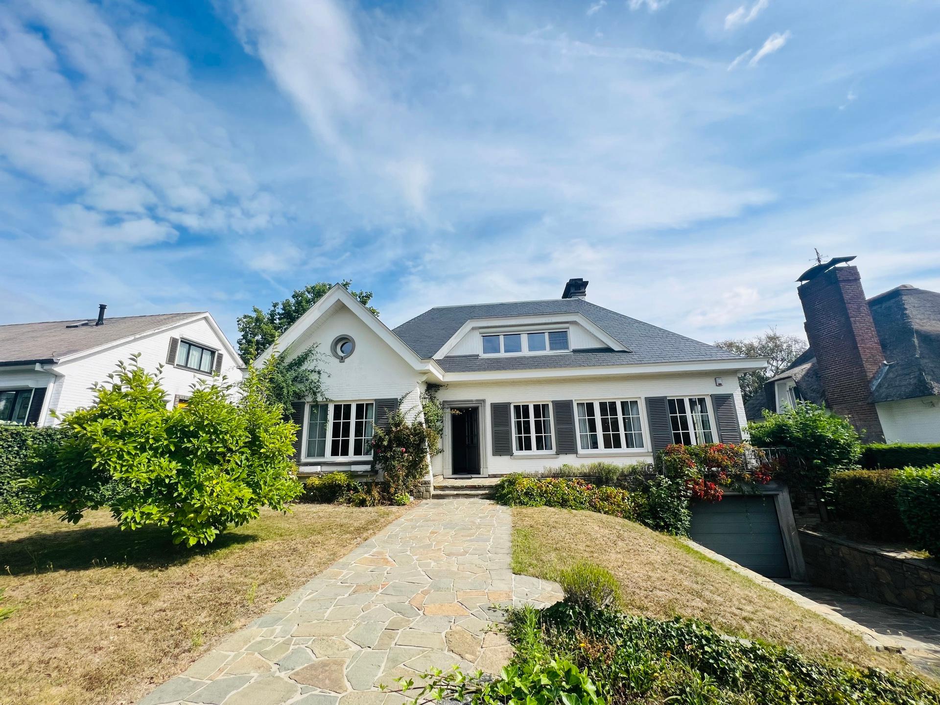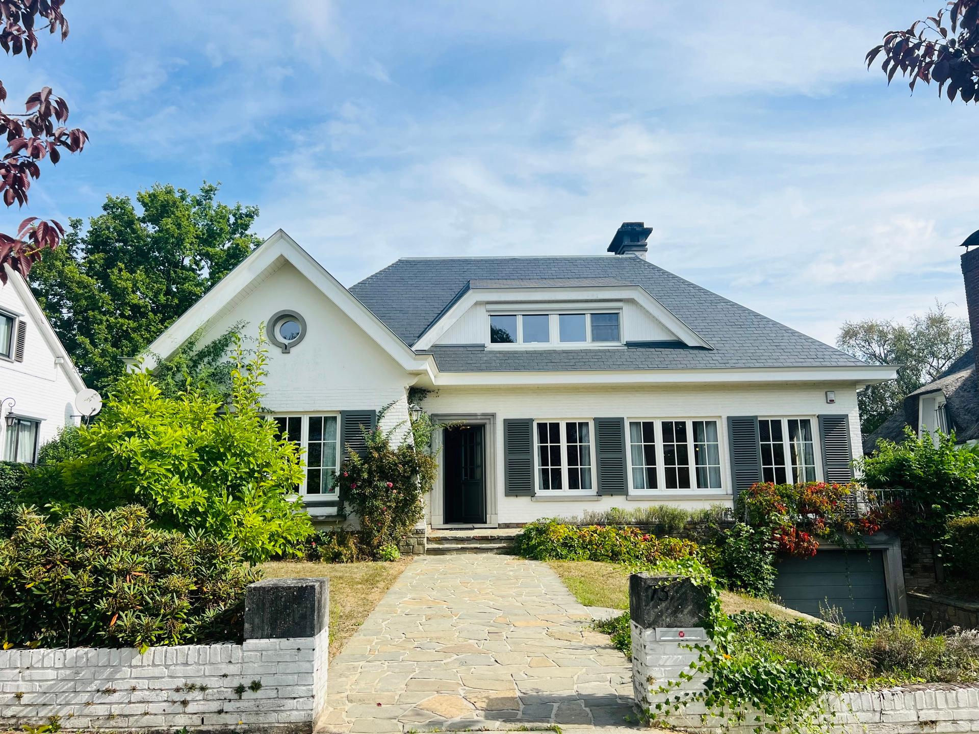 KRAAINEM, ideally located in a peaceful and green residential area, just a 10-minute walk from Place Dumon (Stockel metro station) and public transport, this charming villa benefits from its proximity to renowned international schools such as the American School, the British School, and the Deutsche Schule. Built on a plot of ± 7 acres, this house offers a living area of approximately 290 m², combining comfort, functionality and brightness. The ground floor comprises a welcoming entrance hall with cloakroom and guest toilet, a spacious ± 45 m² living room bathed in light and featuring a fireplace for cosy evenings, a convivial dining room opening onto a fully equipped kitchen, and a pleasant breakfast area under a veranda overlooking the garden. Separate, equipped laundry room (washing machine and tumble dryer). Sleeping area on the ground floor: bedroom of ± 16 m² with a view of the garden and en-suite shower room. and bedroom or multipurpose room of ± 13 m² (office, guest room, games room, etc.). Upstairs: three large bedrooms (± 33 m², ± 19 m² and ± 14 m²), all equipped with custom storage, built-in wooden desks and walk-in wardrobes. A bathroom with bathtub.