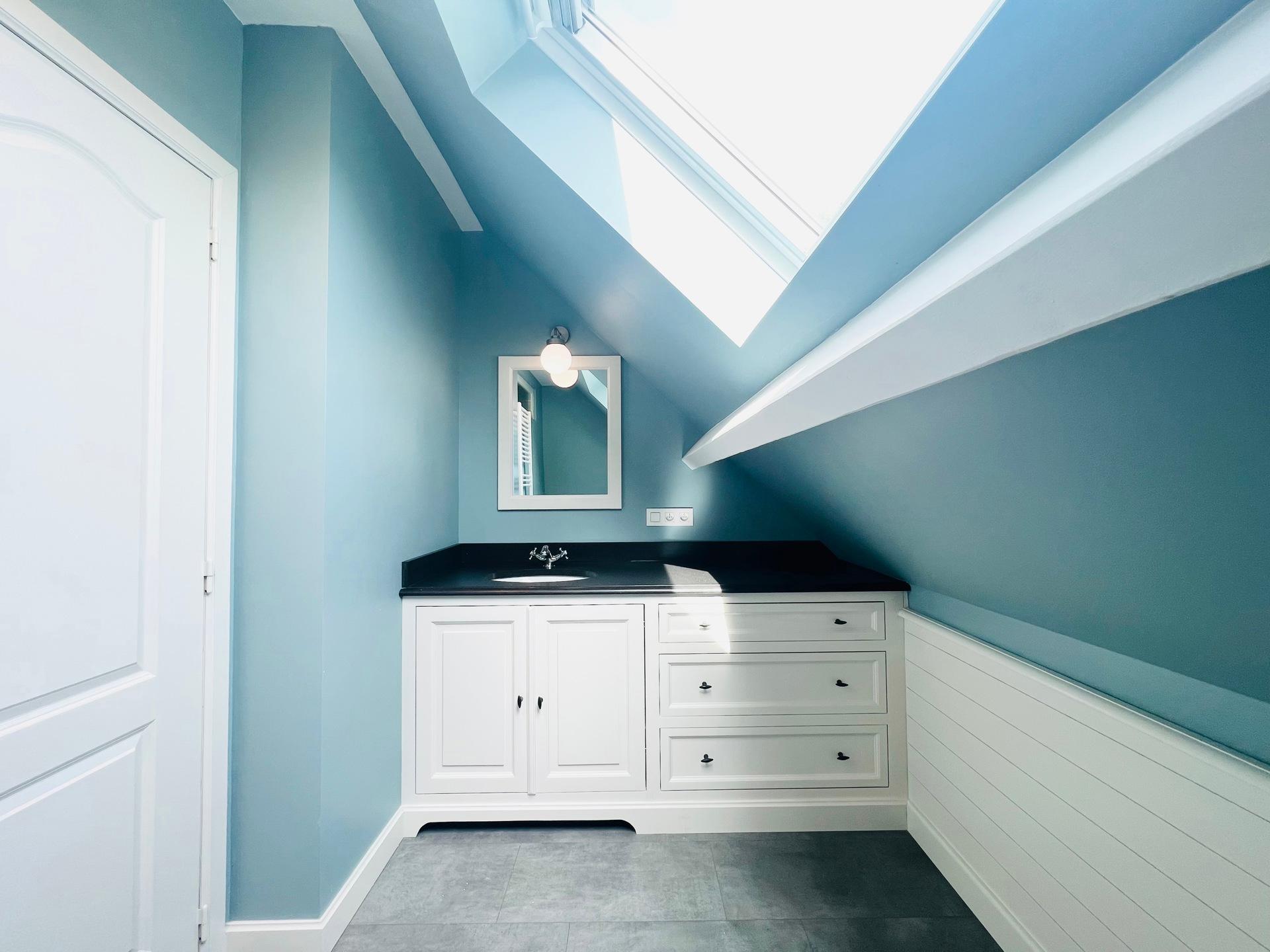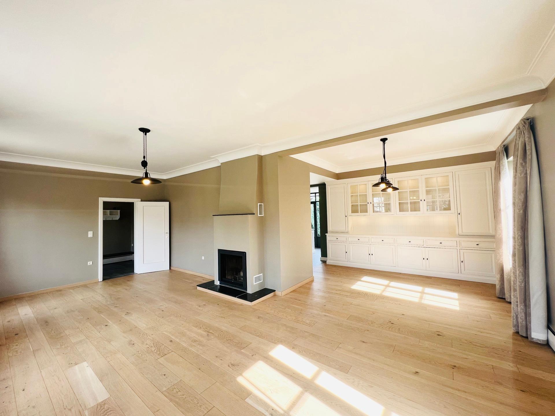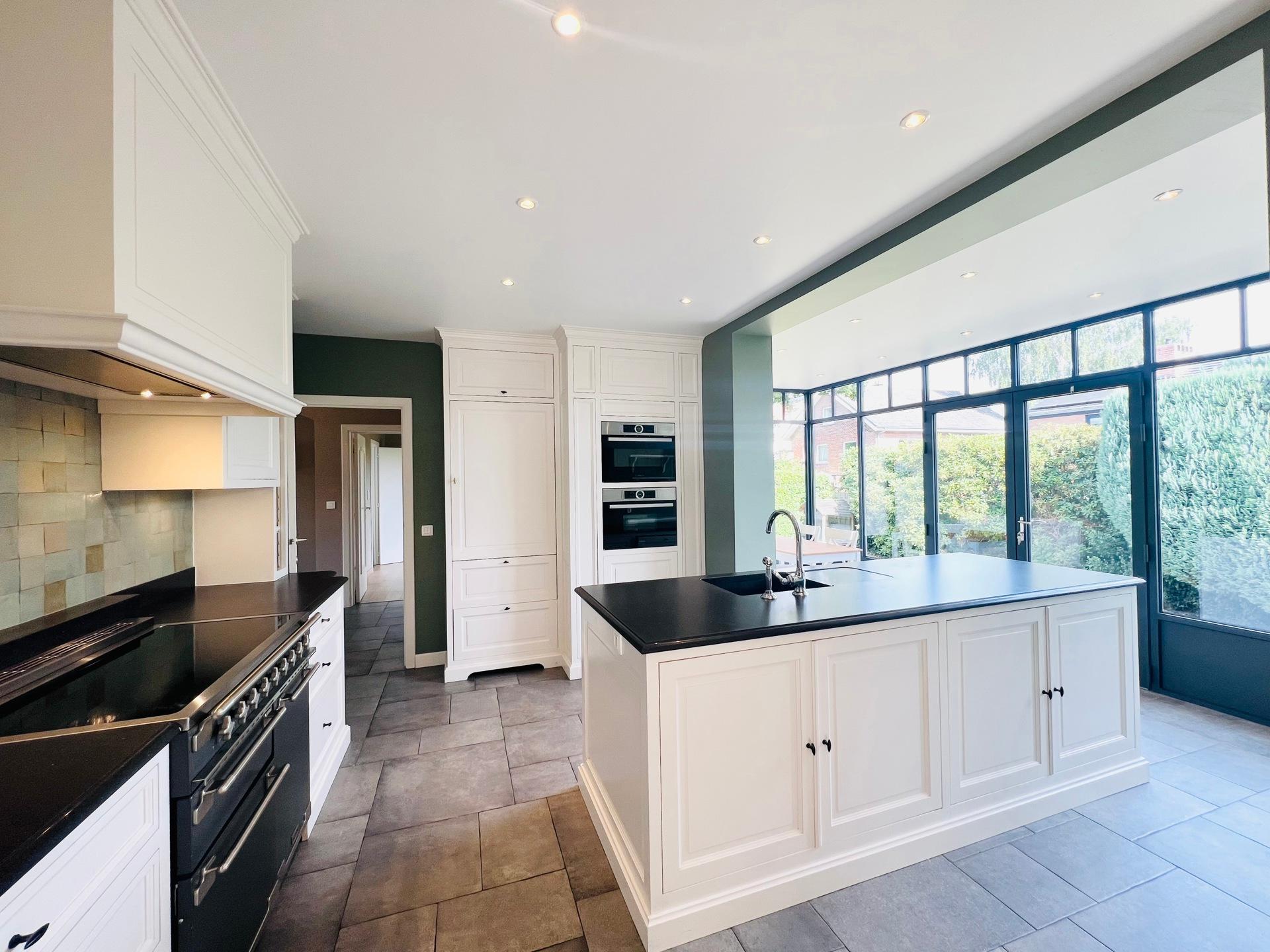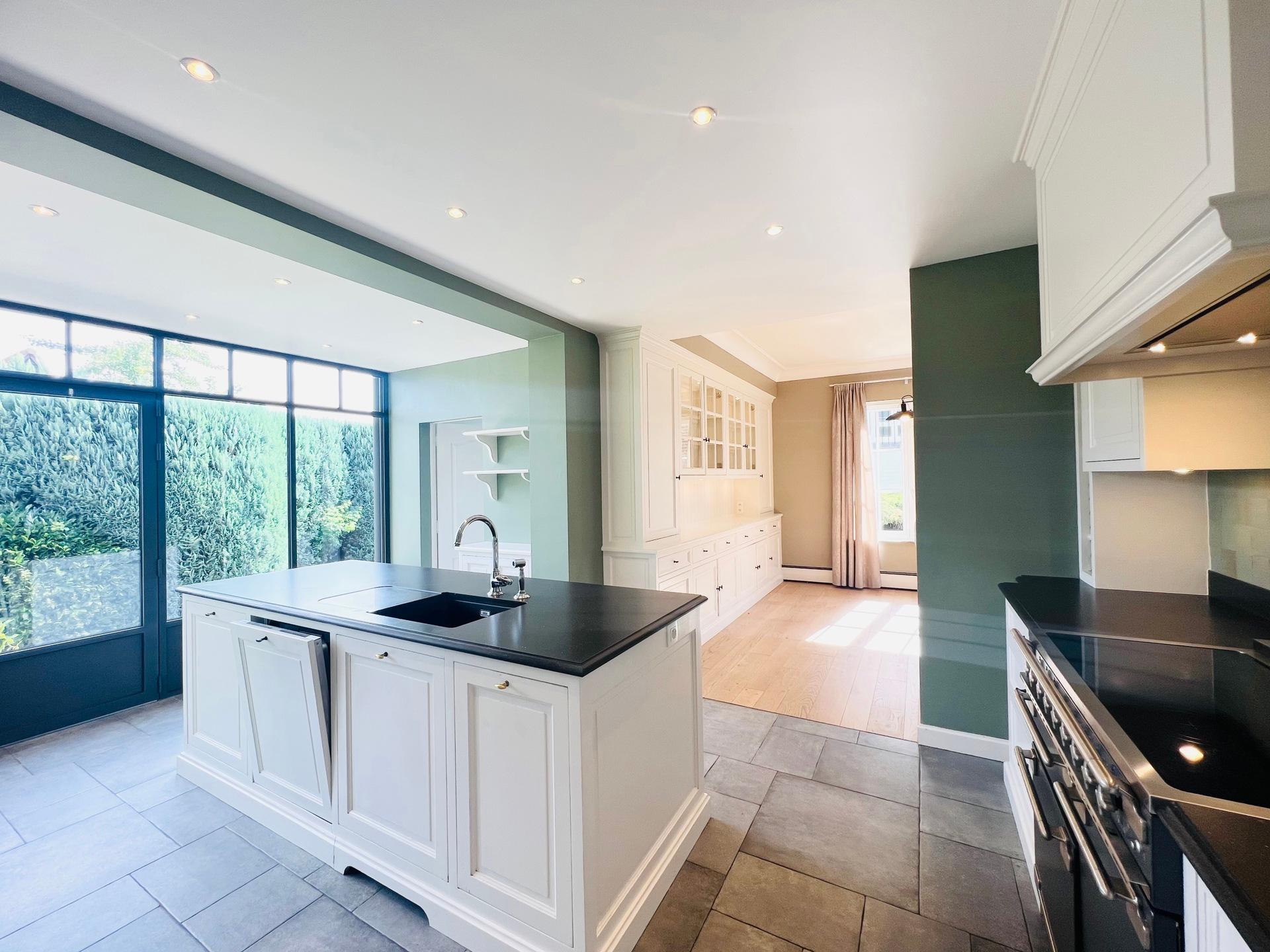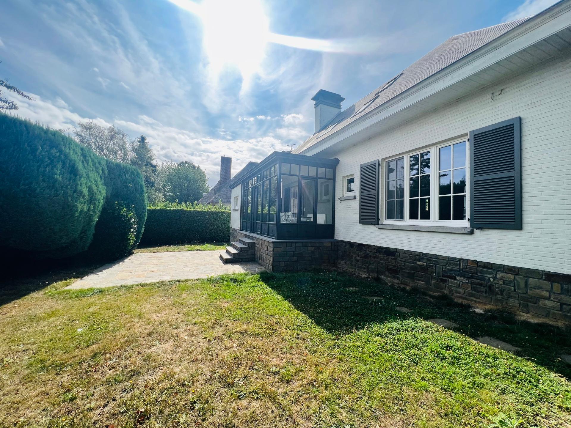 KRAAINEM, ideally located in a peaceful and green residential area, just a 10-minute walk from Place Dumon (Stockel metro station) and public transport, this charming villa benefits from its proximity to renowned international schools such as the American School, the British School, and the Deutsche Schule. Built on a plot of ± 7 acres, this house offers a living area of approximately 290 m², combining comfort, functionality and brightness. The ground floor comprises a welcoming entrance hall with cloakroom and guest toilet, a spacious ± 45 m² living room bathed in light and featuring a fireplace for cosy evenings, a convivial dining room opening onto a fully equipped kitchen, and a pleasant breakfast area under a veranda overlooking the garden. Separate, equipped laundry room (washing machine and tumble dryer). Sleeping area on the ground floor: bedroom of ± 16 m² with a view of the garden and en-suite shower room. and bedroom or multipurpose room of ± 13 m² (office, guest room, games room, etc.). Upstairs: three large bedrooms (± 33 m², ± 19 m² and ± 14 m²), all equipped with custom storage, built-in wooden desks and walk-in wardrobes. A bathroom with bathtub.