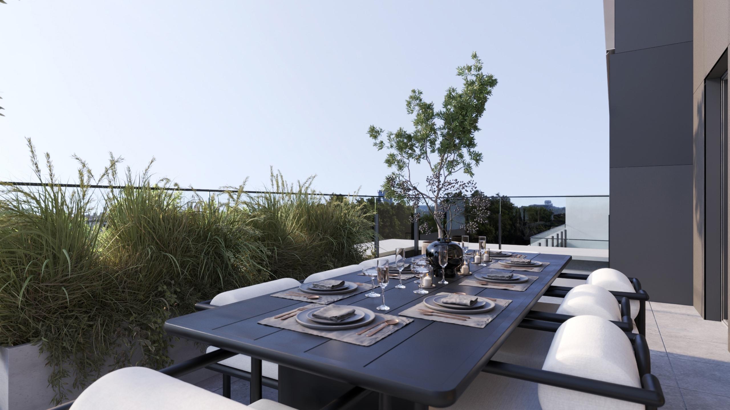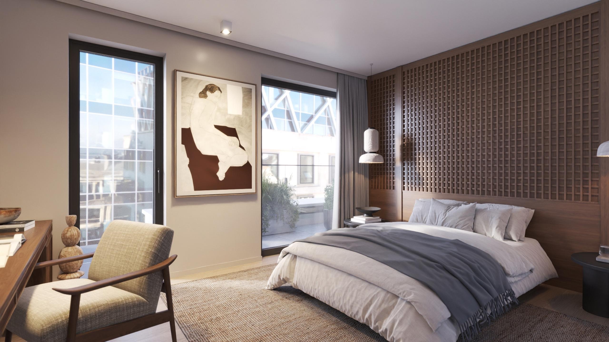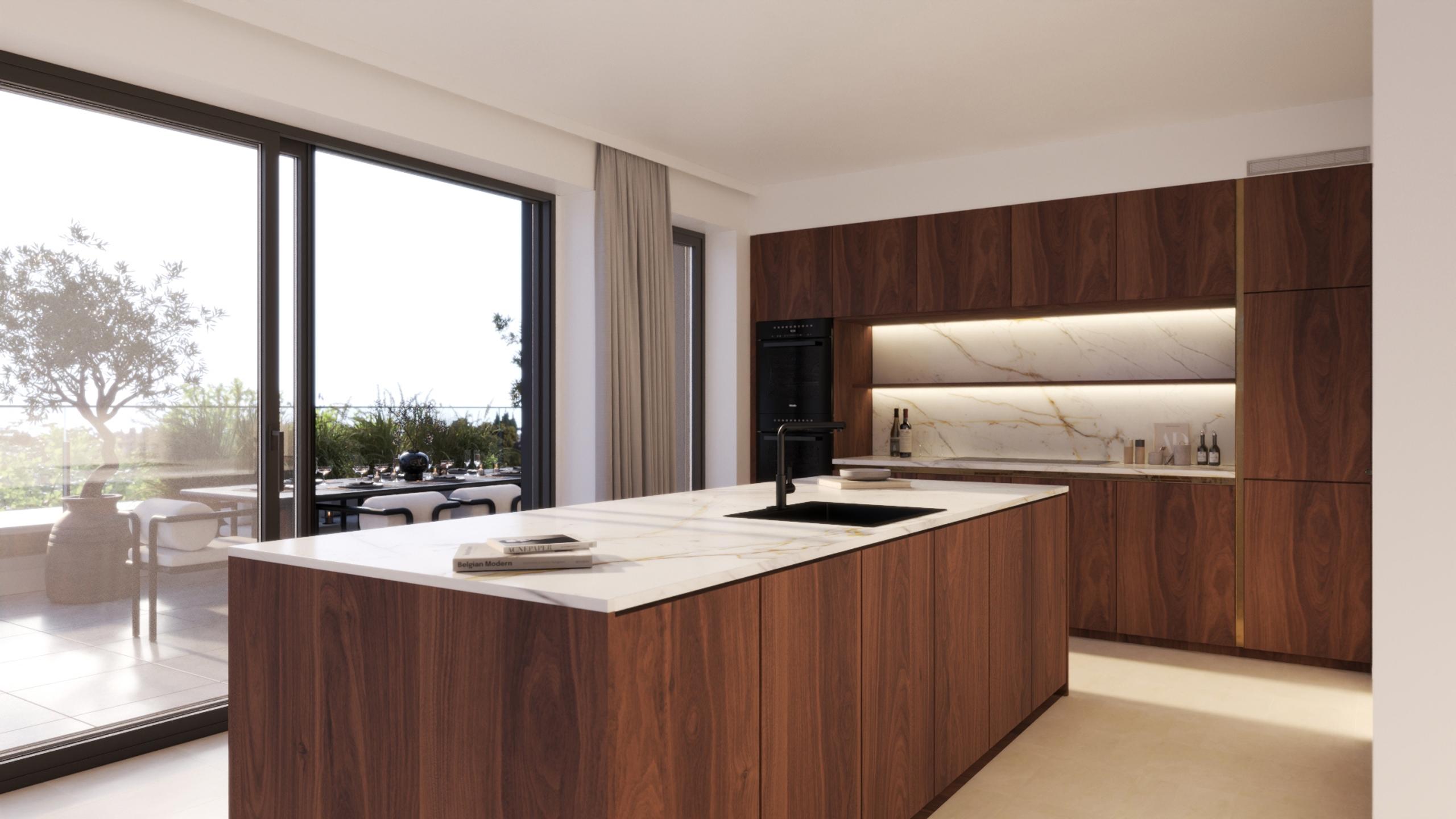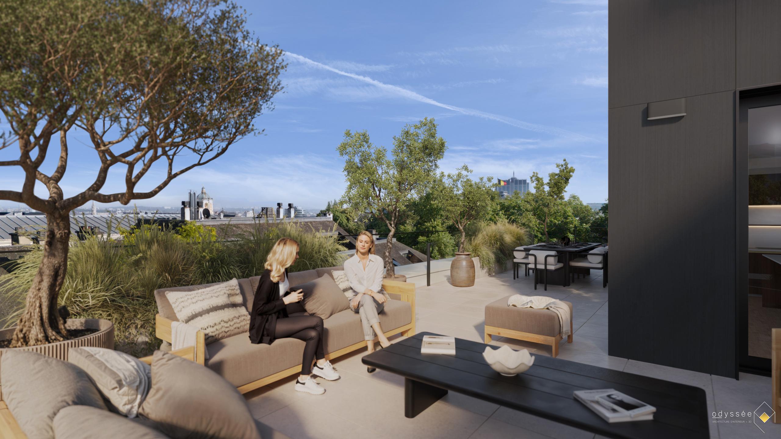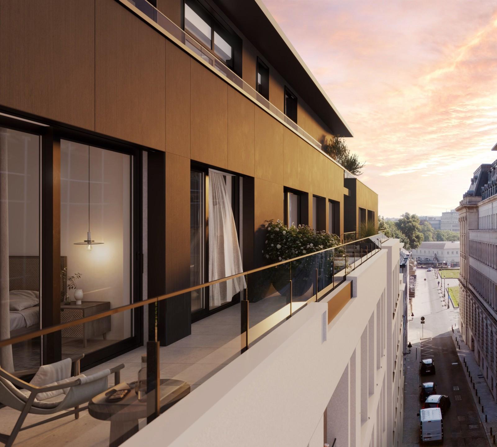 BRUSSELS - Located behind the gardens of the Royal Palace, in a beautiful historic neighborhood just steps away from the Boulevard de Waterloo, Avenue Louise, and many cultural and urban amenities (Sablon, Parc Royal, Bozar, quality shops and restaurants, numerous public transport options), LUXURY PENTHOUSE (3bed/1bath/1shower) of 156.3 m² with 2 LARGE TERRACES (41.8 m² to the S-W/S-E and 16.6 m² to the N-W) and a beautiful secure SHARED GARDEN. Located on the 6th floor, it comprises an entrance hall with guest WC, cloakroom and utility room, a spacious 49.7 m² living room with super-equipped open-plan kitchen opening onto the 2 terraces, a 16.2 m² master bedroom with en suite bathroom (double washbasin, bath, shower, WC), two other bedrooms (12 and 11.7 m²) and a shower room (washbasin, shower). The first 2 bedrooms have access to the main terrace. Nestled in the heart of the city yet sheltered from the hustle and bustle, the apartment is part of a building offering contemporary and sleek architecture, high-end finishes, and a sustainable approach (maximum insulation, dual-flow ventilation, green roofs, rainwater harvesting, etc.). Secured communal bicycle room. Cellar and parking at extra cost. EPC A- to B+. Sale subject to 21% VAT. Discover it at L&P!