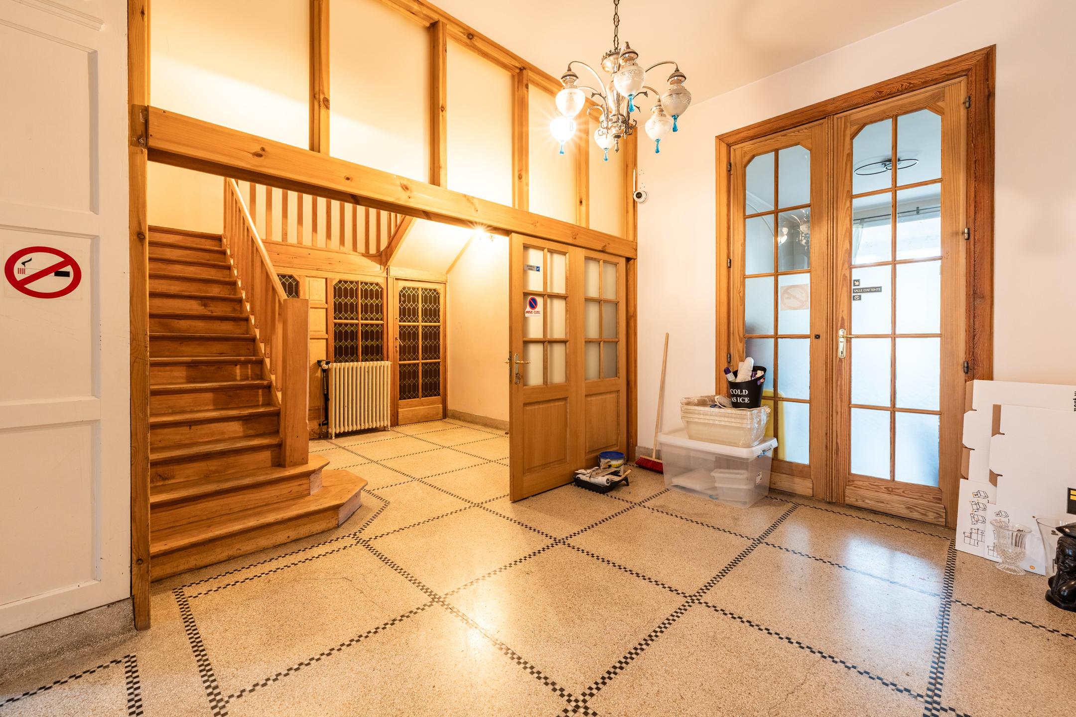 SCHAERBEEK, Fleurs district, Mixed-use building (offices on the ground floor and 2 apartments on the upper floors, approved by the city planning department) with a floor area of approximately 545 m² on a 5.15-acre plot with a beautiful garden. Built in approximately 1923 and extensively renovated in 2005. It is composed as follows: ground floor (± 150 m²): doctor's office with adjoining waiting room and toilet, large entrance hall with beautiful staircase (possibility of installing an elevator), 3 offices (21, 18, and 13.30 m²), access to the terrace and garden. First floor (1 apartment): currently: large staircase landing, living room and dining room of ± 40 m², fitted kitchen with access to a balcony, large bedroom of ± 35 m² (2 bedrooms originally), bathroom and separate toilet. 2nd floor (1 apartment): currently: large staircase landing, 3 beautiful bedrooms (± 21 - 18 and 17 m²), shower room and separate toilet. Basement: Hallway, large 1-car garage (approx. 22 m²) with electric door, several cellars, laundry room, boiler room with water softener, bicycle storage room. Also: PEB F (307 kWh/m²/year), double glazing almost everywhere, recent gas condensing boiler (2018), RU on request, spacious rooms and high ceilings. Ideal for investors or the self-employed! Don't wait to visit.
