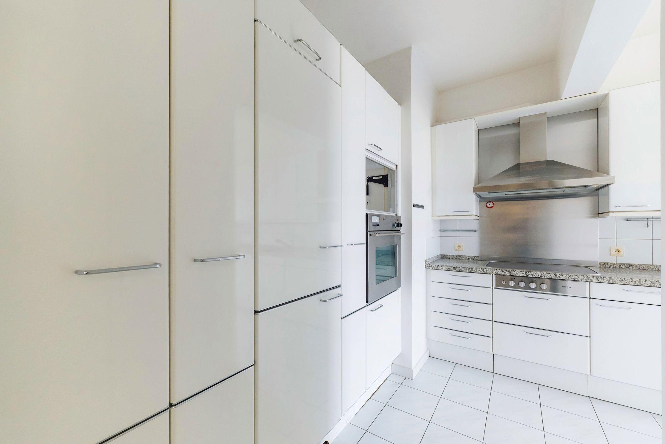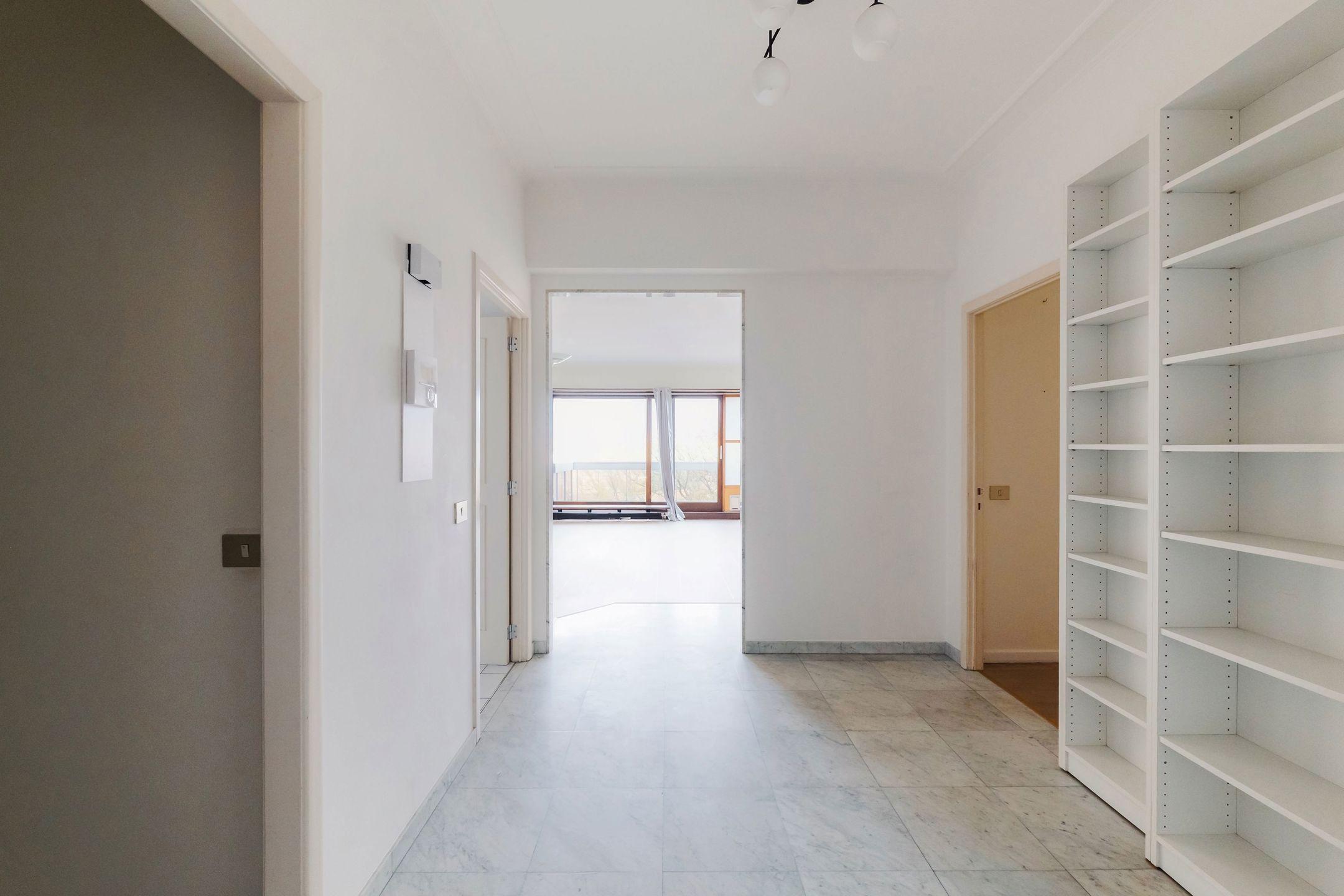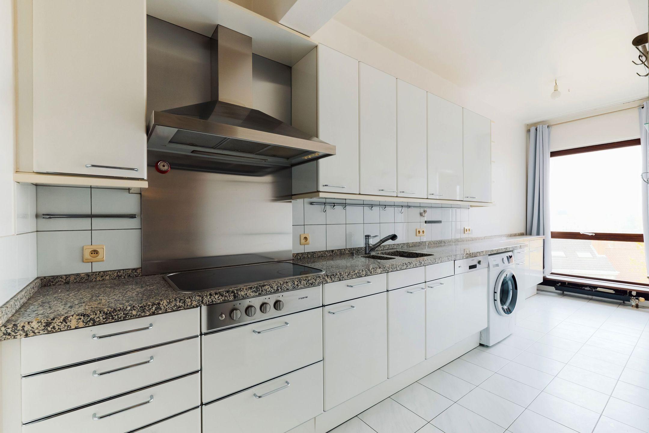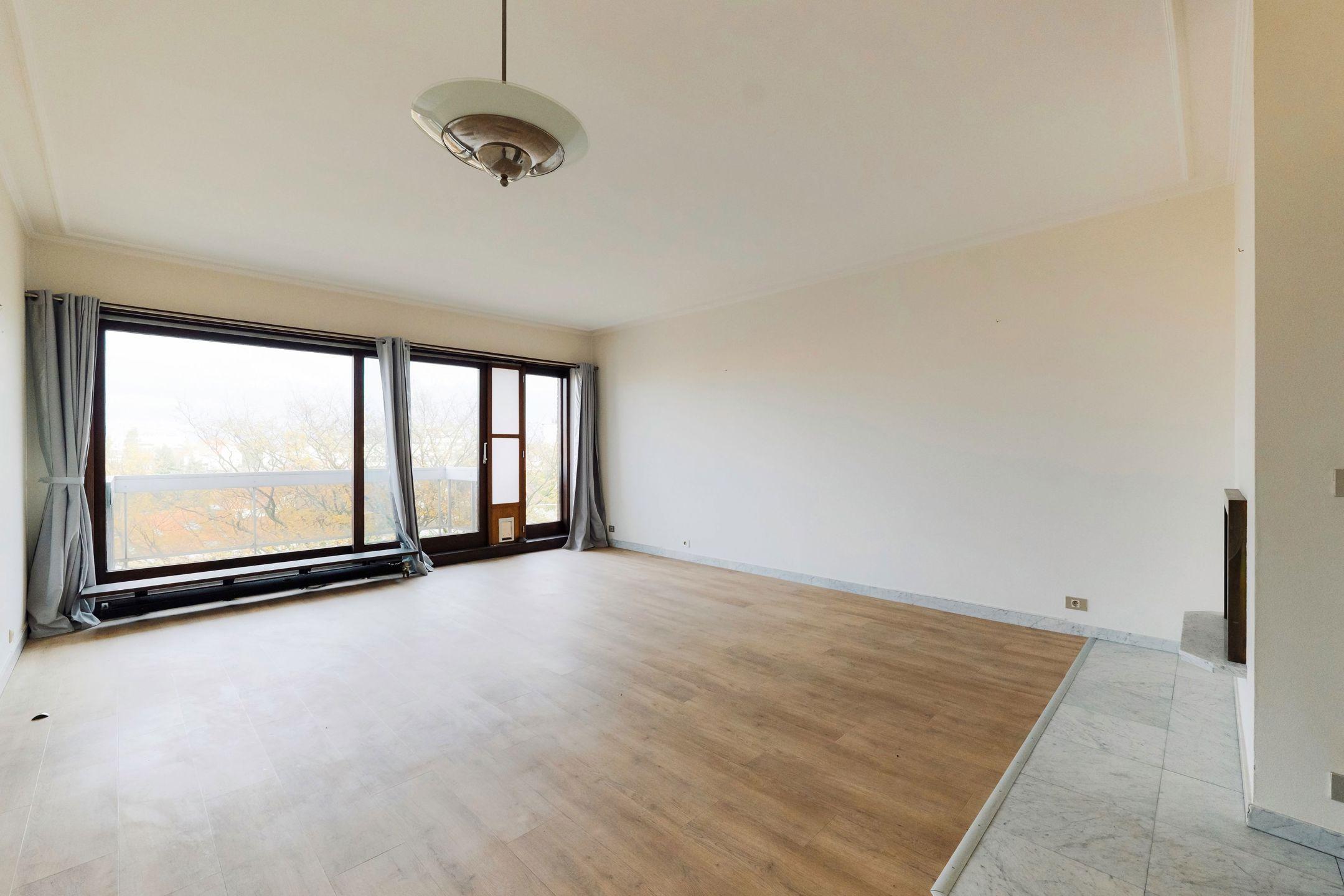 ETTERBEEK, close to the Cinquantenaire Park and Rue des Tongres, located in the Clos du Cinquantenaire, in a HIGH-END condominium, pleasant APARTMENT (2 bedrooms/1 bathroom) of 114m² with a beautiful terrace offering a magnificent unobstructed view of Brussels, cellar, and 2 parking spaces. Located on the 6th floor of 7, it is composed as follows: Entrance hall with guest toilet and cloakroom area, living room with working fireplace and door leading to the terrace, fitted kitchen, night hall with separate toilet, 2 bedrooms and a bathroom with shower and washbasin on cabinet. Double-glazed wooden window frames. Electricity (non-compliant). EXCELLENT EPC = B-, 86KWH/m²/year! New shared boiler with cogeneration system. Roof insulated in 2024. In the basement: Cellar no. 21 and 2 parking spaces included in the price ! An exclusive listing with Latour et Petit! Do not hesitate to watch the video on : https://youtube.com/shorts/u_pybZP4Dy0?feature=share .