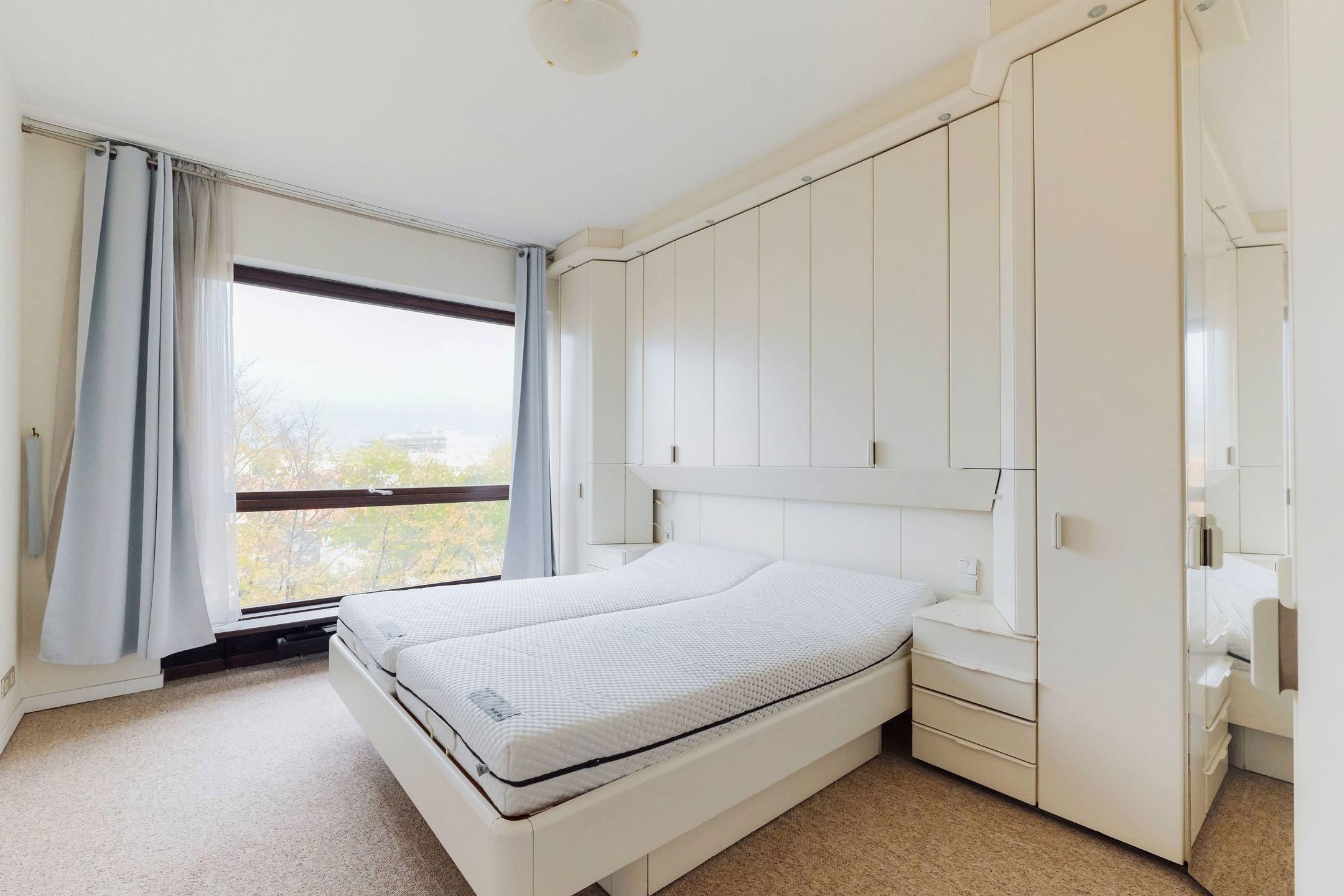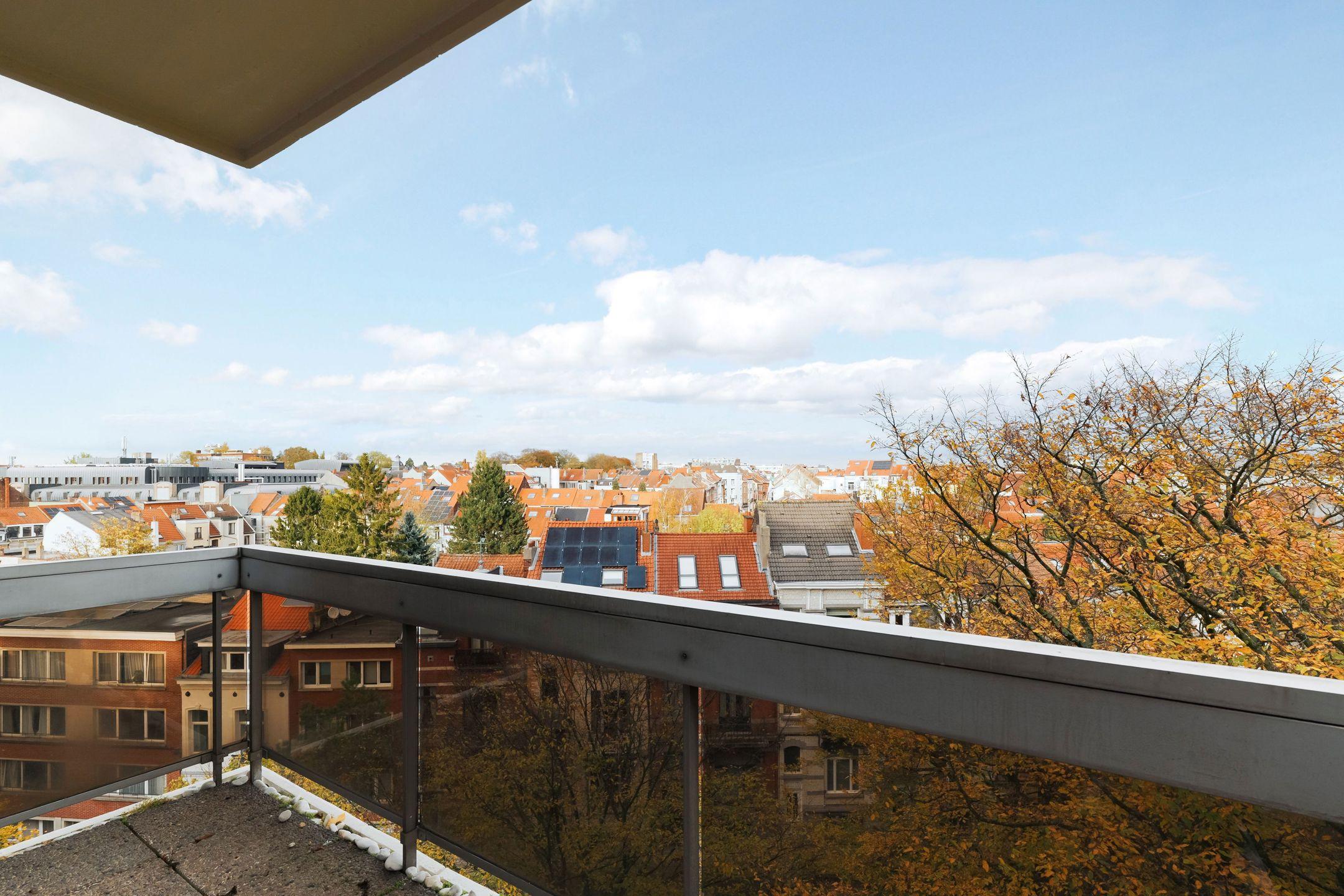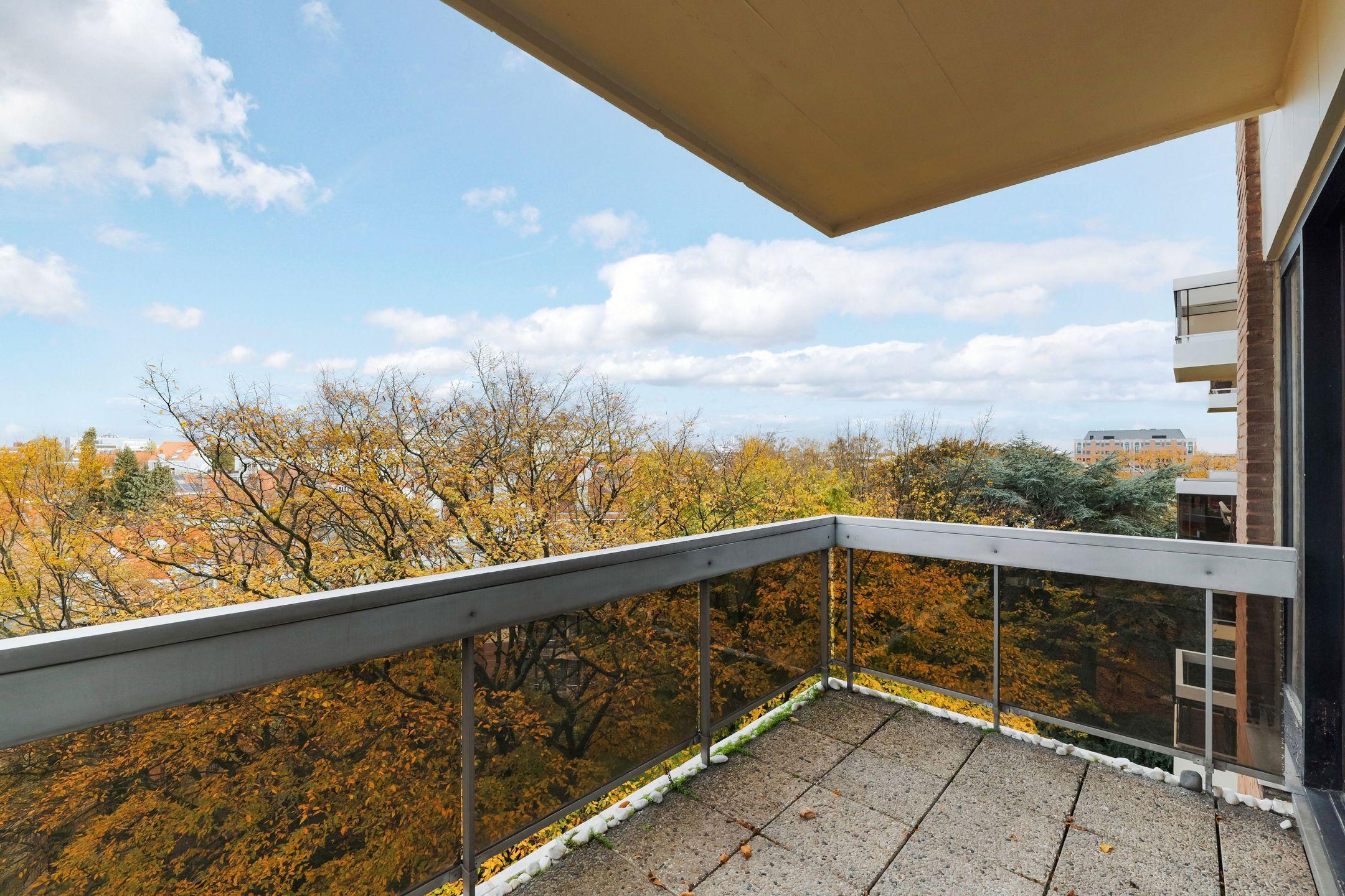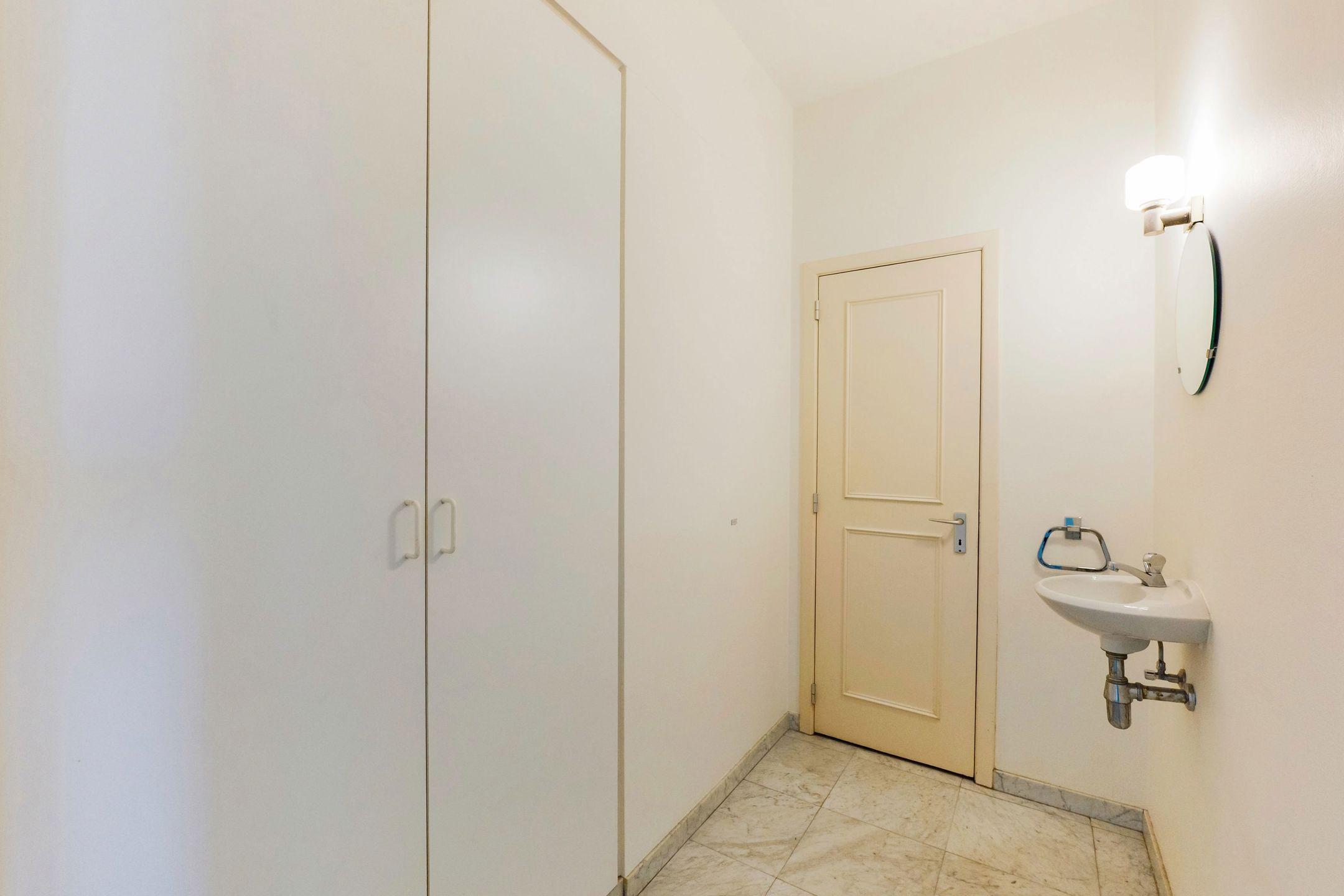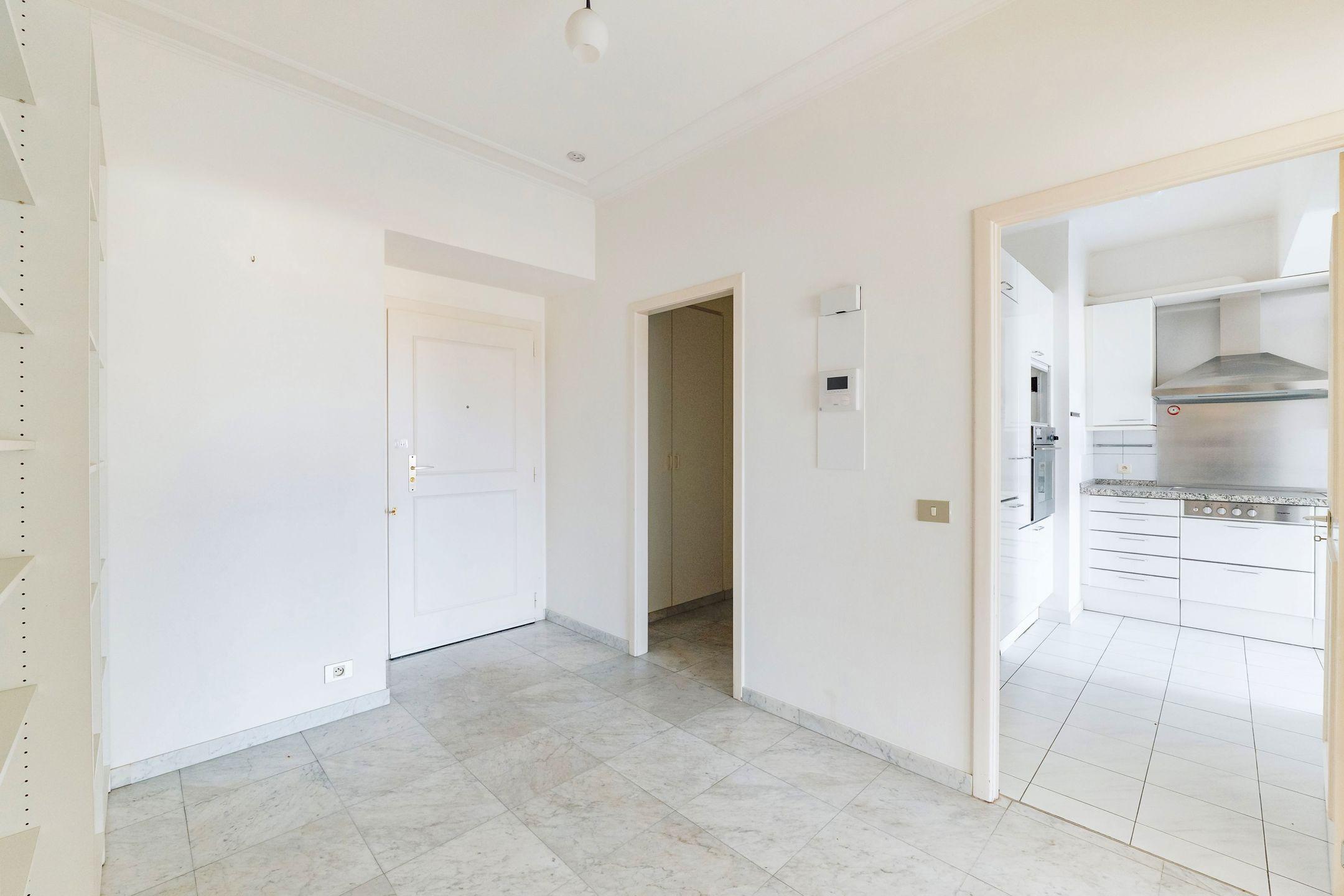 ETTERBEEK, close to the Cinquantenaire Park and Rue des Tongres, located in the Clos du Cinquantenaire, in a HIGH-END condominium, pleasant APARTMENT (2 bedrooms/1 bathroom) of 114m² with a beautiful terrace offering a magnificent unobstructed view of Brussels, cellar, and 2 parking spaces. Located on the 6th floor of 7, it is composed as follows: Entrance hall with guest toilet and cloakroom area, living room with working fireplace and door leading to the terrace, fitted kitchen, night hall with separate toilet, 2 bedrooms and a bathroom with shower and washbasin on cabinet. Double-glazed wooden window frames. Electricity (non-compliant). EXCELLENT EPC = B-, 86KWH/m²/year! New shared boiler with cogeneration system. Roof insulated in 2024. In the basement: Cellar no. 21 and 2 parking spaces included in the price ! An exclusive listing with Latour et Petit! Do not hesitate to watch the video on : https://youtube.com/shorts/u_pybZP4Dy0?feature=share .