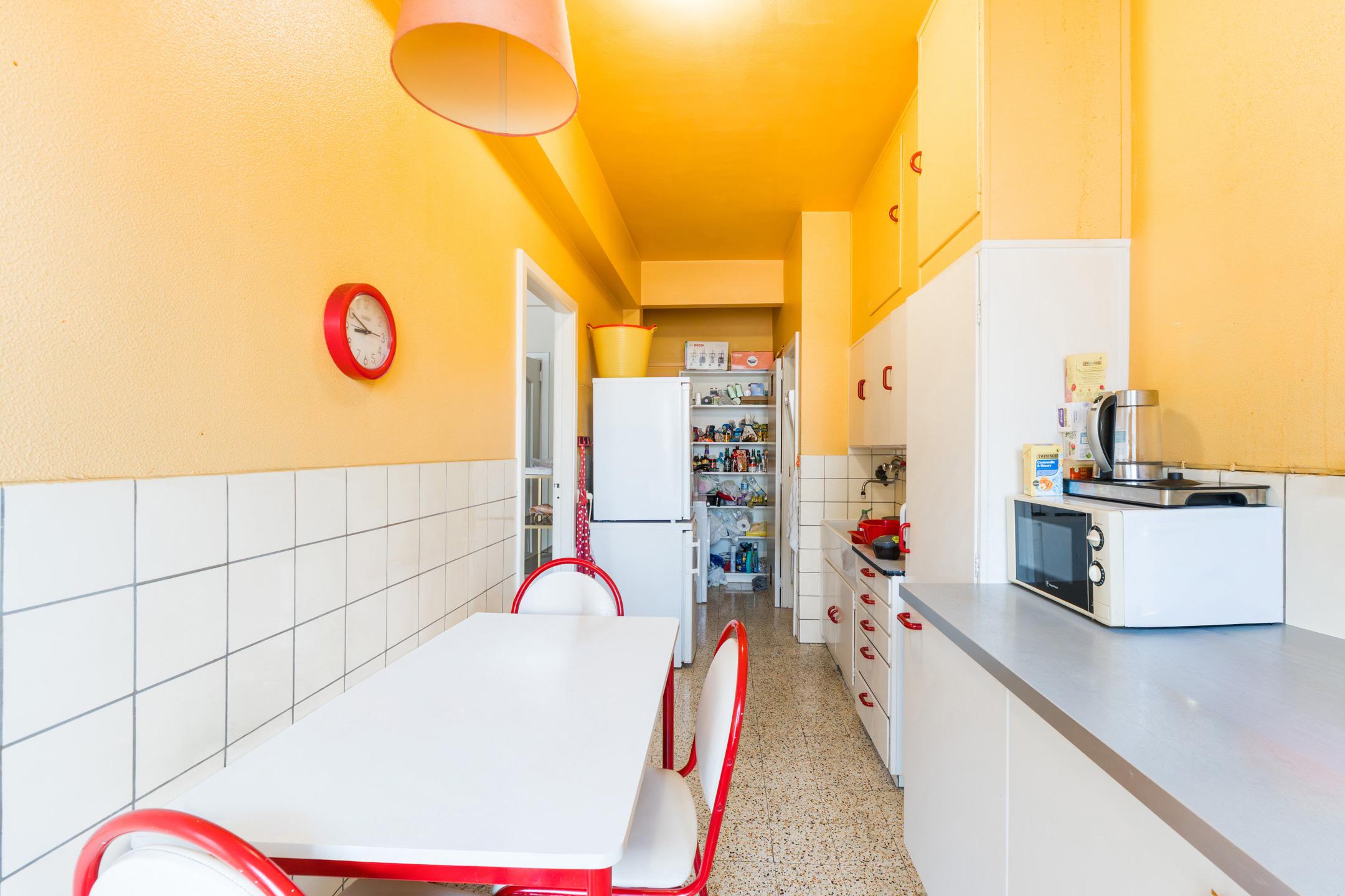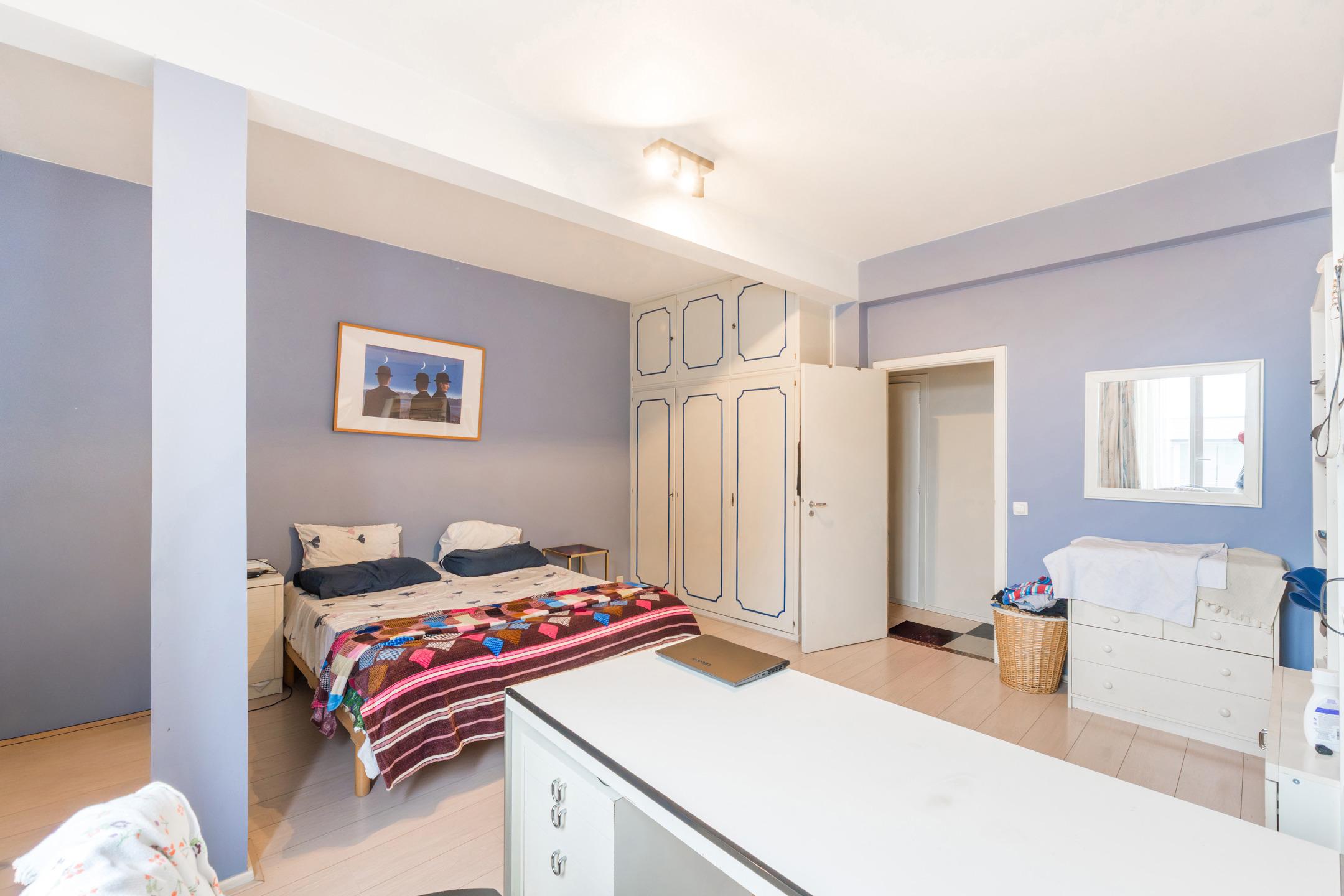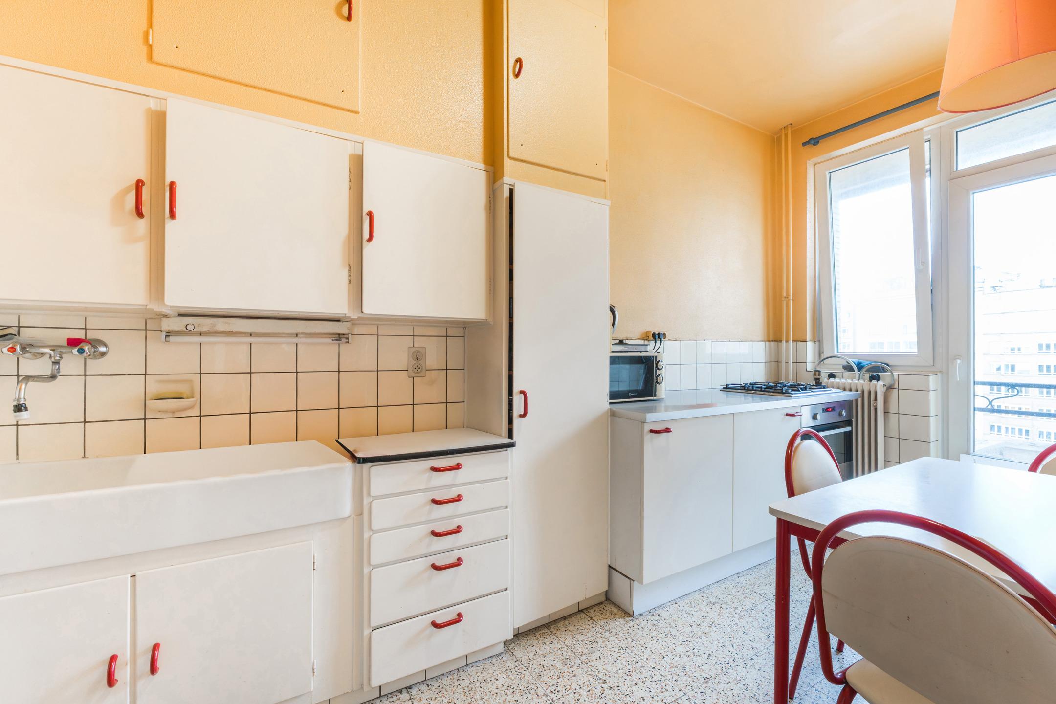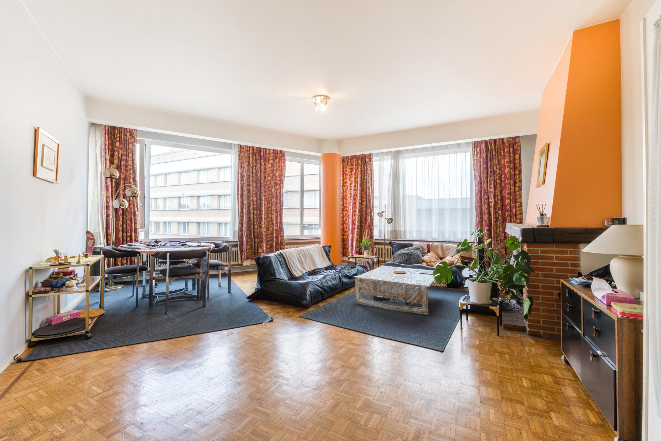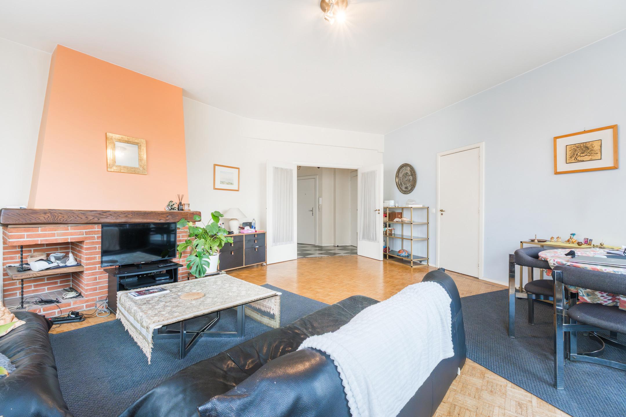 IXELLES, overlooking Place Flagey, pleasant APARTMENT (1 bedroom/1 bathroom) of ±97m² (EPC surface area) with balcony. EPC D. Located on the 7th and penultimate floor of a 1958 building with lift, it comprises an entrance hall with double cloakroom (±9m²), spacious and bright reception rooms (±35m²) with fireplace, fitted kitchen (±10m²) with balcony and beautiful view of Flagey. Hallway, spacious bedroom (±24m²), renovated shower room, separate WC with washbasin and built-in storage. Storage cellar in the basement. PEB D. Double-glazed PVC window frames. Communal gas boiler. Electricity to be brought up to standard. Security door. Intercom. Compliant lift. Communal condensing boiler with cogeneration replaced in 2021. Roof currently being renovated and insulated (work already financed). Caretaker. Charges: ±244/month (caretaker, communal charges, heating and hot and cold water). Regimmo property management company. The flat is currently rented at £1,148/month with a flat rate of £150/month for charges included (possibility of terminating the contract with 6 months' notice for personal occupation from the date of the deed). An ideally located property to be discovered exclusively with L&P!