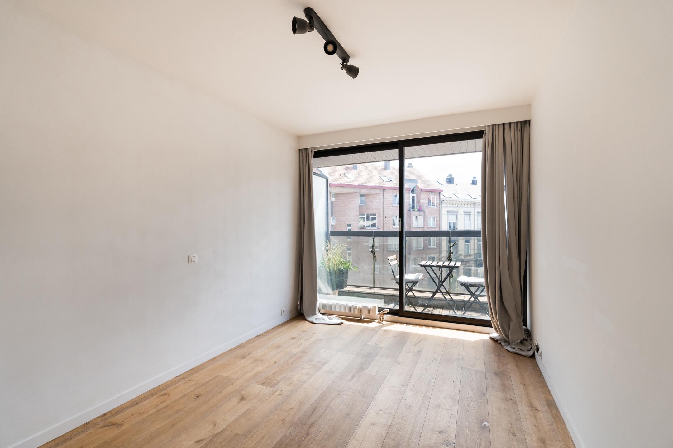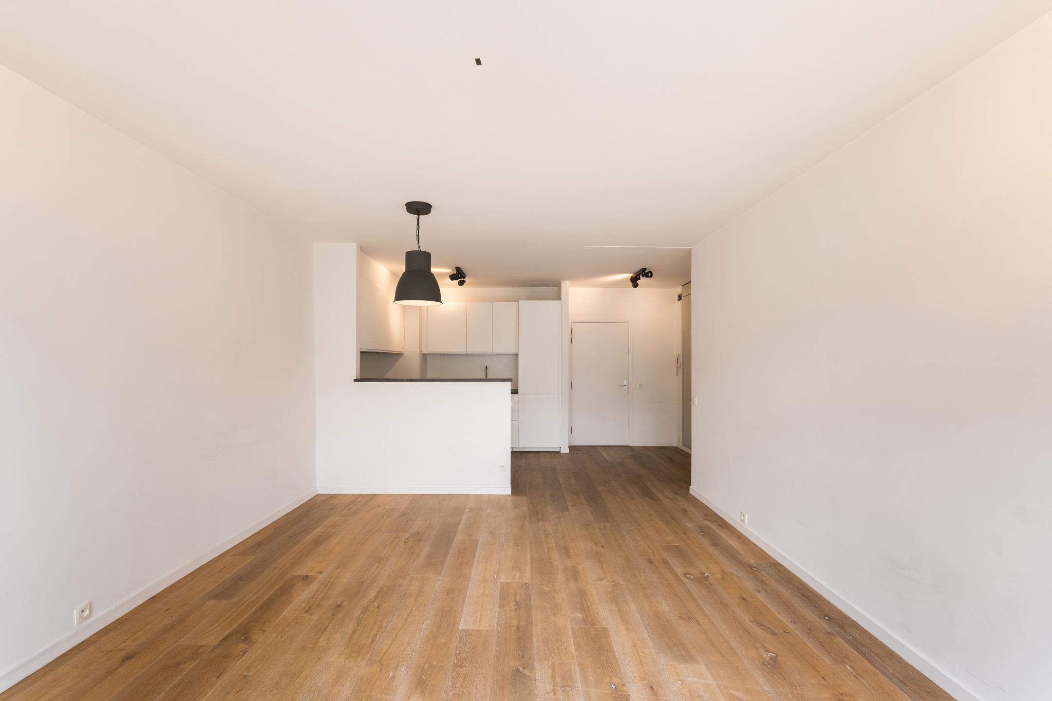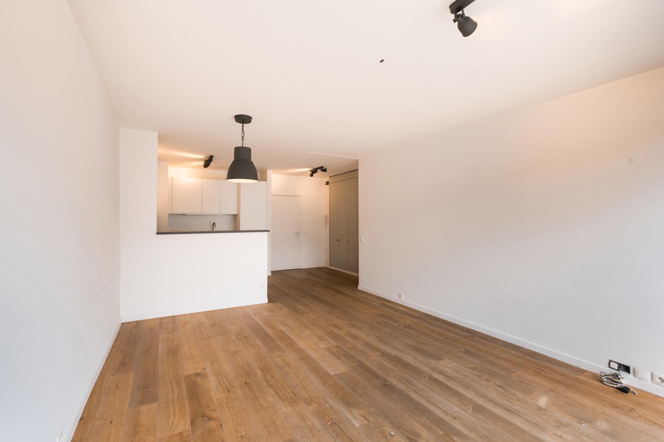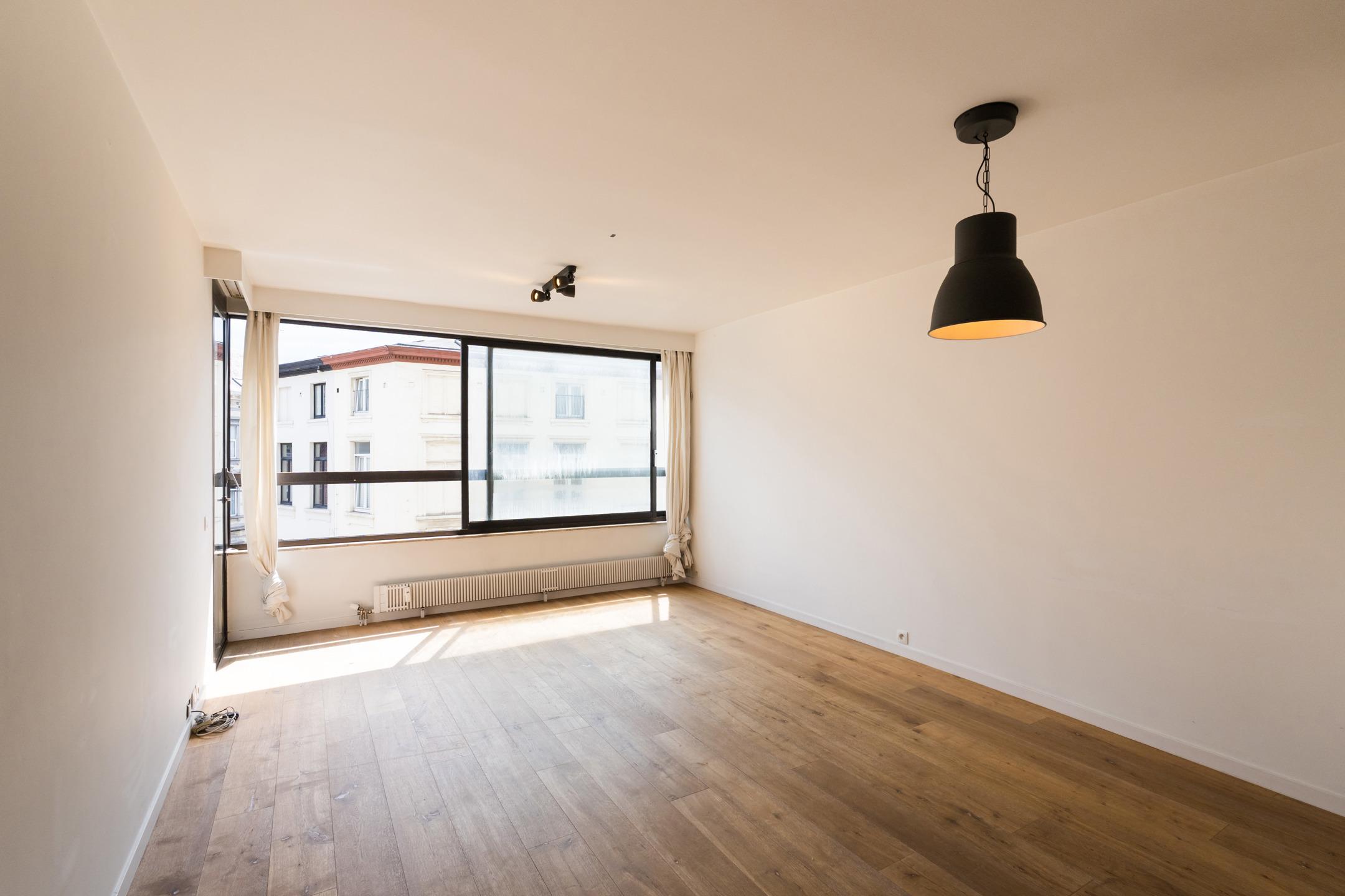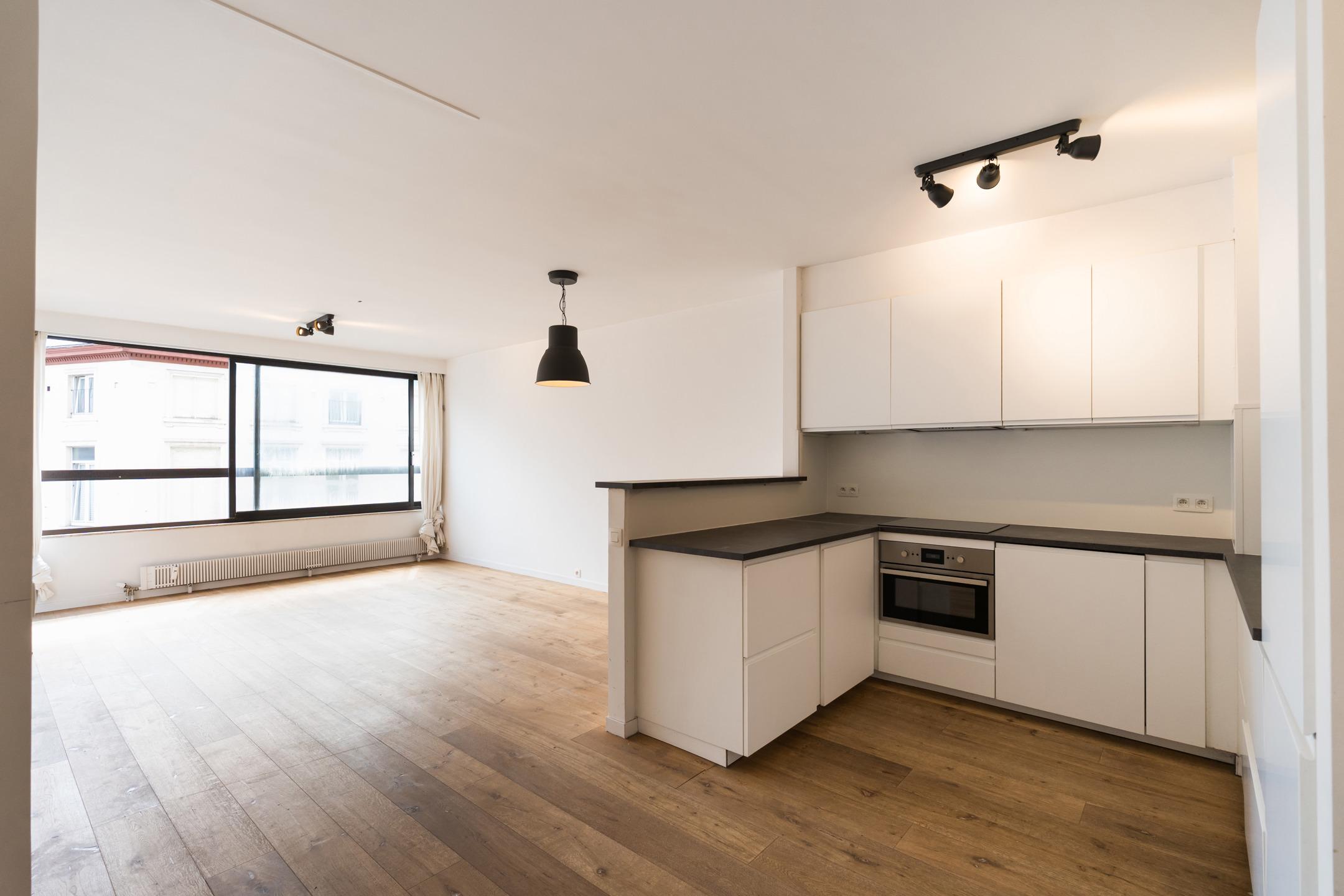 SAINT-GILLES, Defacqz, between Ma Campagne and Châtelain, on the 3rd floor of a building dating from around 1970, apartment of approximately 75 m² gross floor area. It is composed as follows: Entrance hall of ±6.5 m² with cloakroom, living room of ±22 m² giving access to the ±5.5 m² south-facing terrace, open-plan fitted kitchen of ±9 m². Hallway of ±2.5 m², 2 bedrooms of ±12.5 and 10.5 m², shower room with toilet of ±6 m² and toilet of ±2 m². Also: aluminum double glazing, security door, collective gas boiler, intercom, elevators, PEB: D +. Discover this exclusive listing at L&P.
