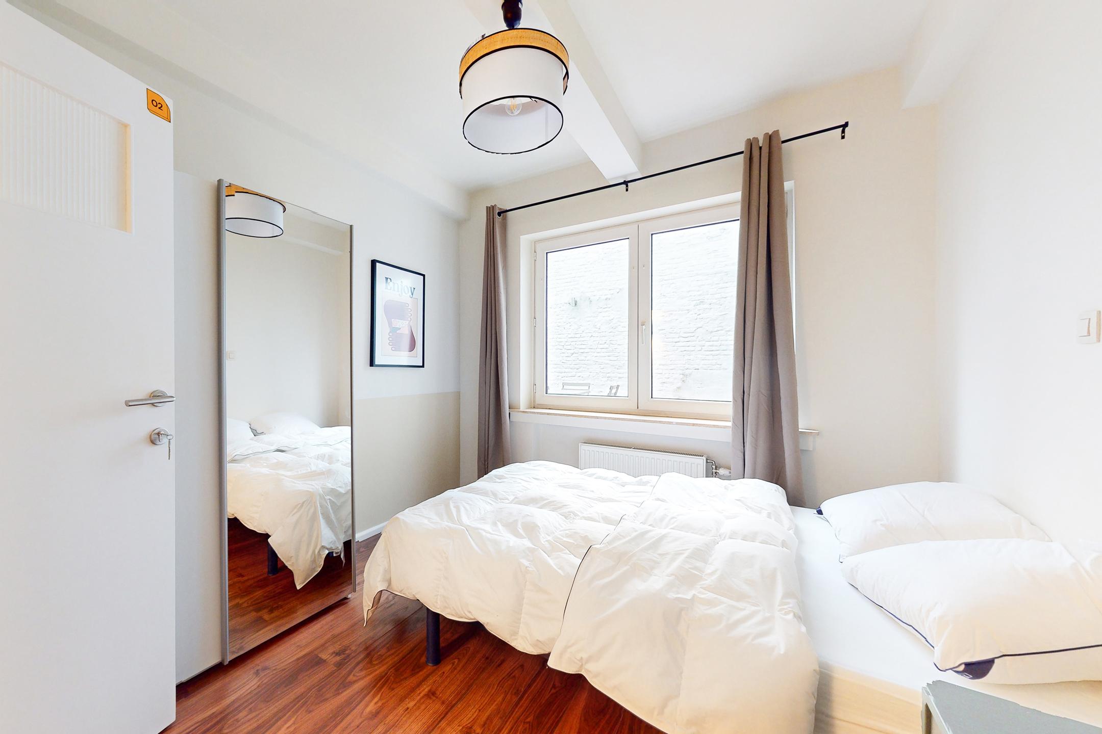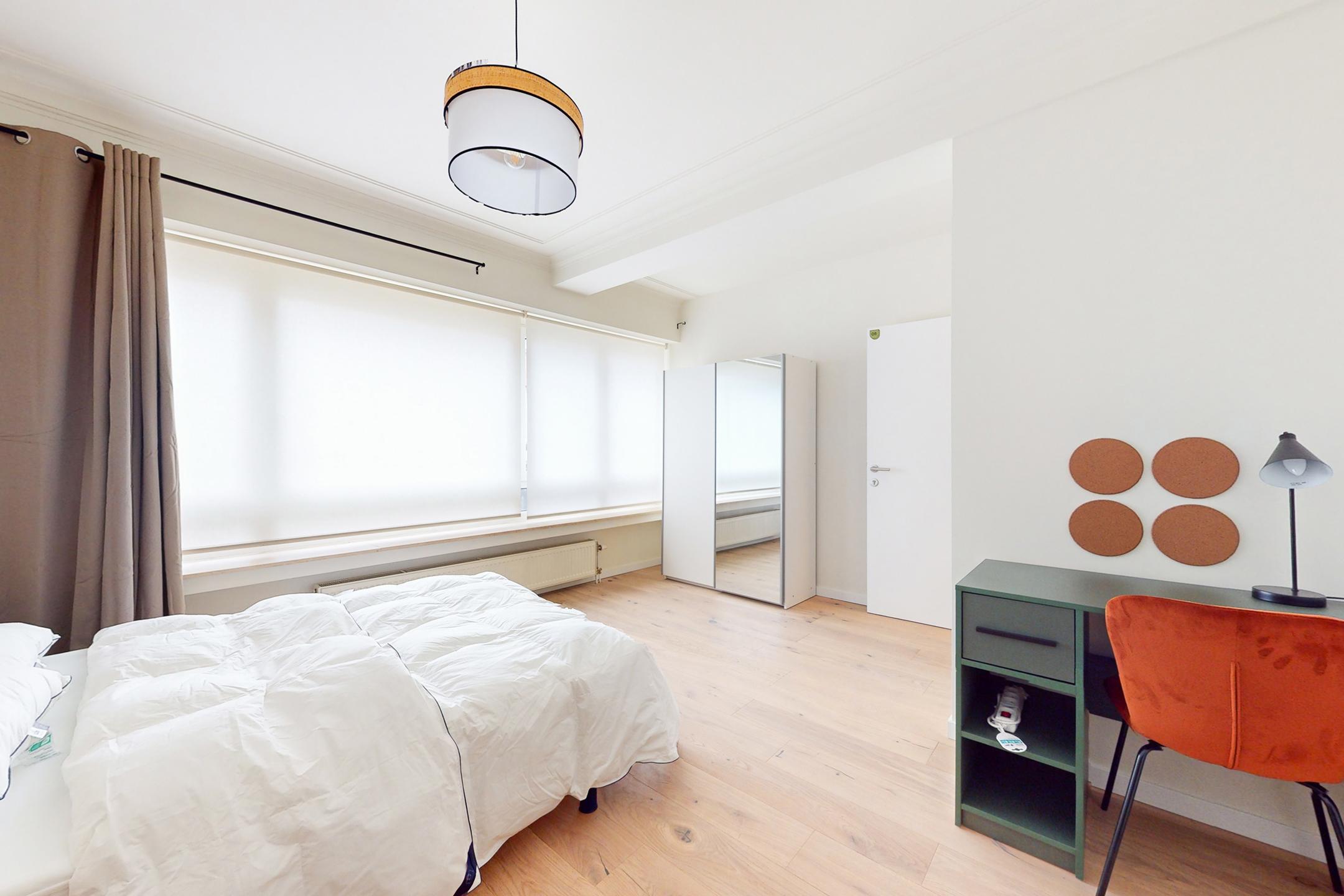 JETTE, near Place Reine Astrid and shops, in a small co-ownership – Beautiful 151m² APARTMENT (according to PEB) with a +/- 52m² TERRACE currently furnished as a 5-bedroom shared apartment. Located on the 1st floor, the apartment is composed as follows: an entrance hall, a living room of +/- 20m² with dining area, a fully equipped kitchen giving access to a magnificent terrace of +/- 52m², 5 bedrooms all perfectly furnished with double beds, individual desks, and storage cupboards, two shower rooms, one with a toilet, and a separate toilet. PEB: D-. Electricity not compliant. Individual gas boiler. Small co-ownership with individual consumption and low charges. Property tax: €1,304.50. Current rental income: €3,350/month including flat-rate charges. Ideal for investment. Don't wait to discover it at L&P!