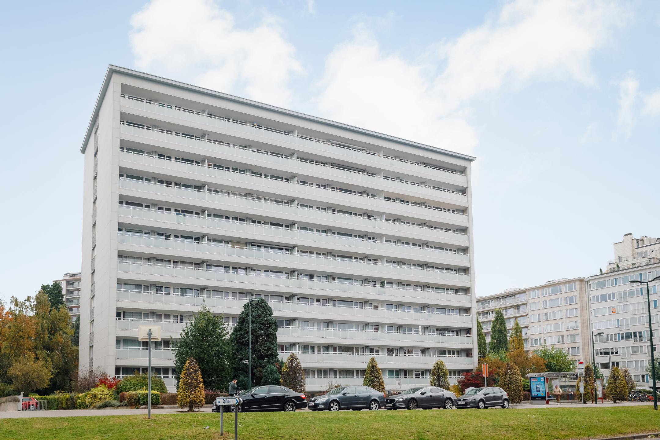 EVERE, on rue de Genève close to many facilities. Beautiful APARTMENT (2 bedrooms/1 bathroom) of 100m² with terrace and parking. Located on the 10th floor out of 11 in a 1970 building with elevator, it consists of: Entrance hall with cloakroom area, living room giving access to the west-facing 8m² terrace, fully equipped kitchen, night hall, 2 bedrooms, bathroom (bathtub, sink), separate toilet, laundry room. In the basement, storage cellar, parking space. Electricity not compliant, provision charges: €276/month (heating, water, common areas) and €68/month (reserve fund). PEB : B (86 kWh/m²/year). Available exclusively at L&P!
