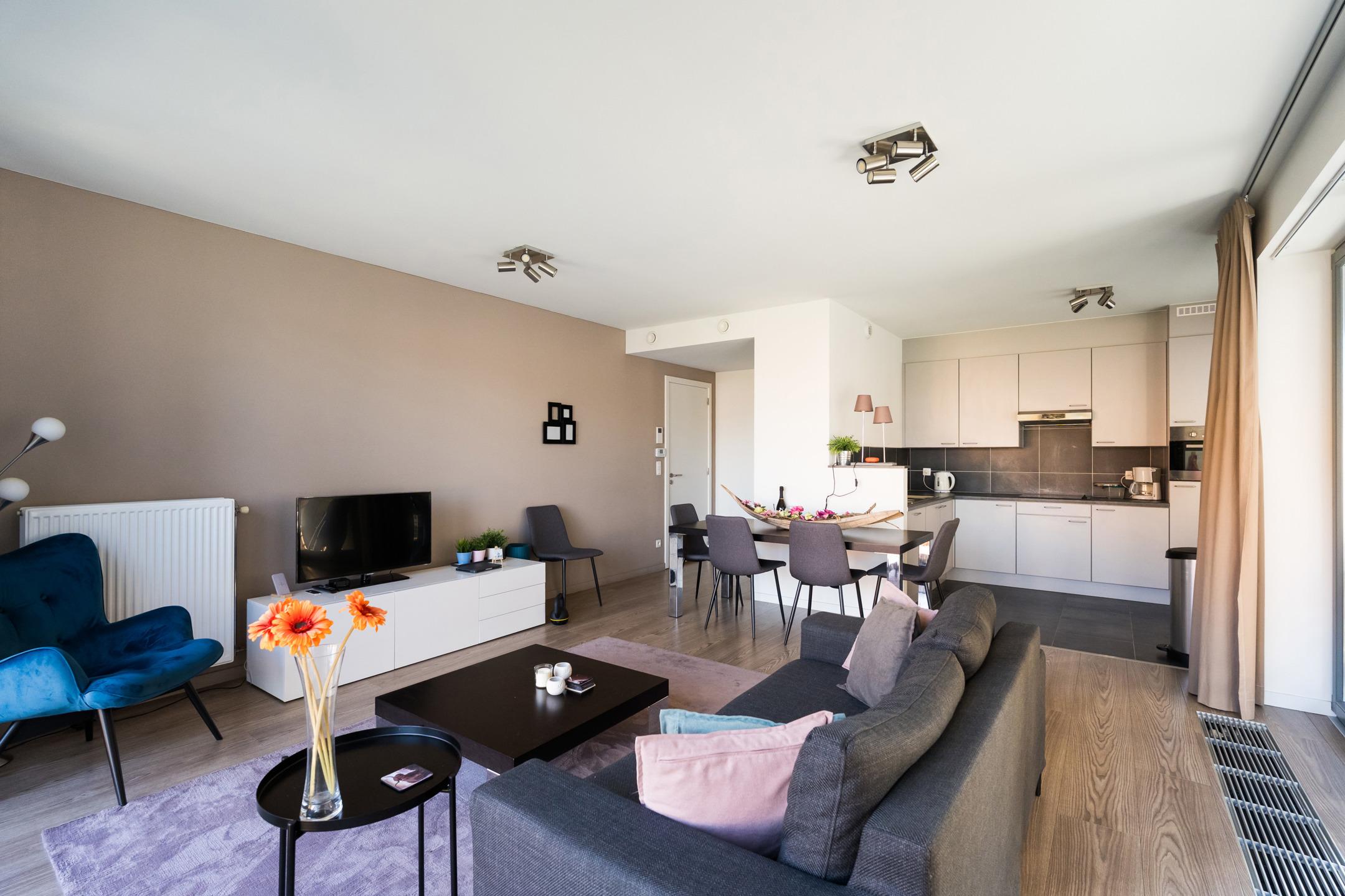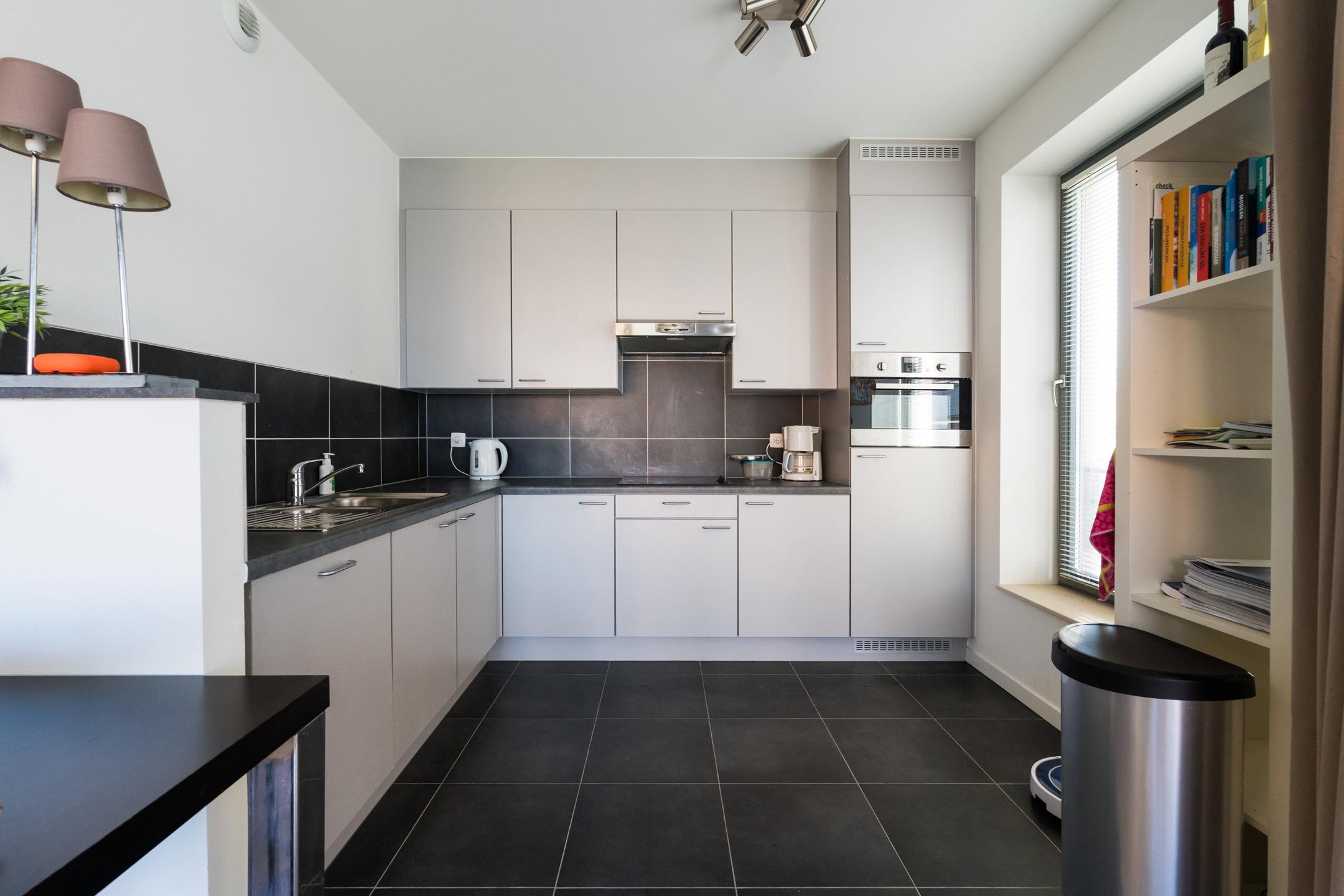 EVERE, close to all amenities, very beautiful APARTMENT (2bed/2bath) of 80m² with a lovely TERRACE and PARKING. Located in a building constructed in 2011, this apartment represents an excellent opportunity for safe and sustainable investment, but also a pleasant place to live. Sold fully furnished and equipped, the apartment is composed as follows: an entrance hall with guest toilet, a laundry room, a spacious and bright living room with office area, ideal for remote working, and a large open equipped kitchen, giving access to the 8m² terrace. A 13m² bedroom with its private shower room, a second 18m² bedroom with dressing area and its private bathroom. This apartment also includes a cellar and an underground parking space n°13 (+30.000€). The apartment is very well maintained and is equipped with an individual gas heating system. The price includes furniture, appliances, and cellar! EPC C 126kWh/m².year. Urban planning information available. A magnificent apartment to discover exclusively with Latour & Petit!