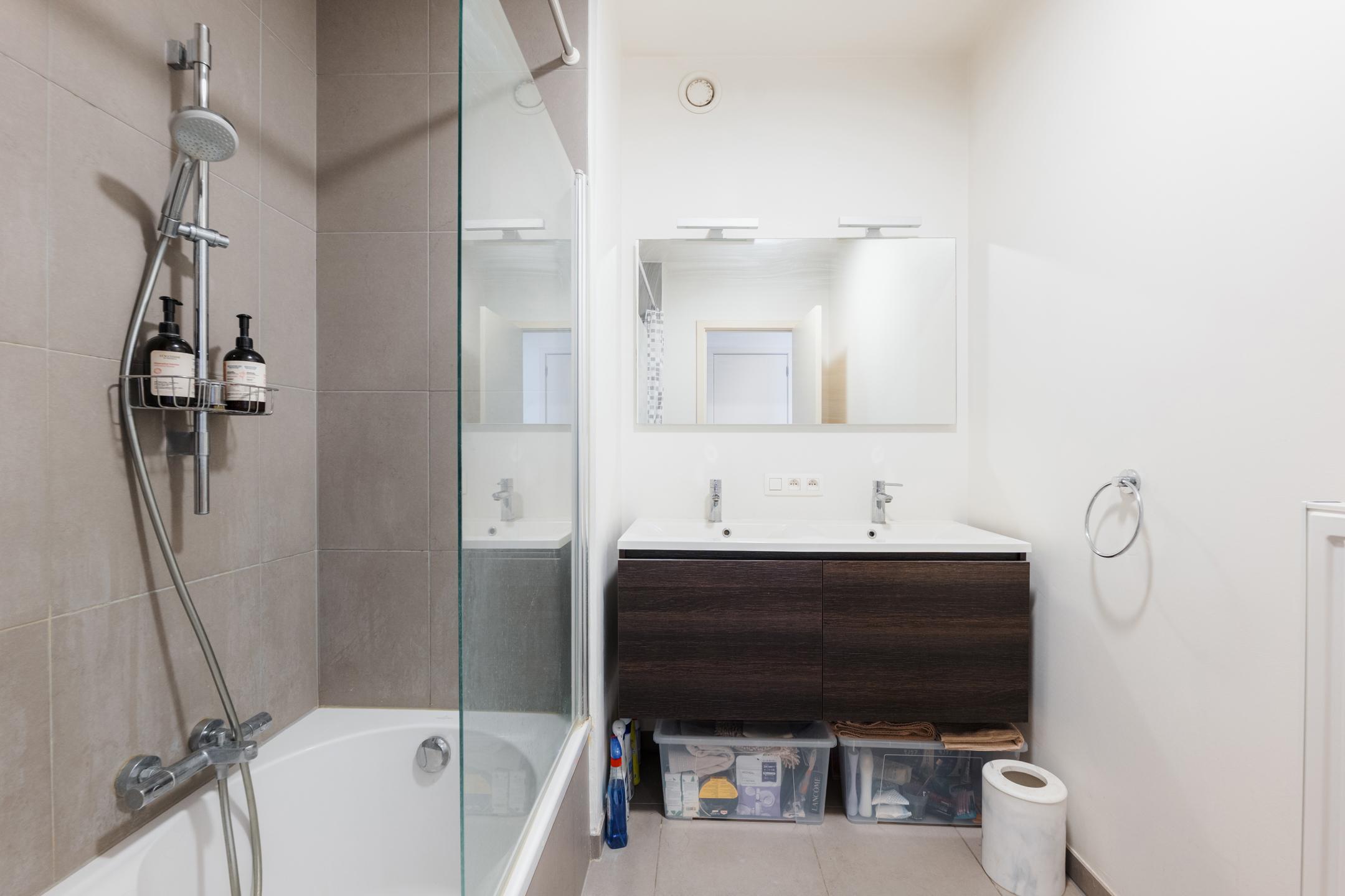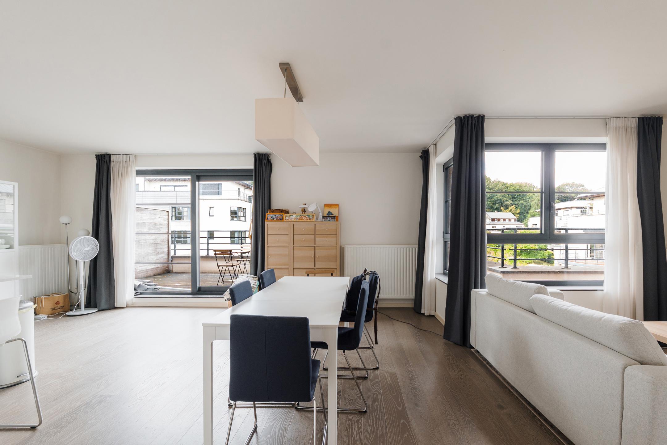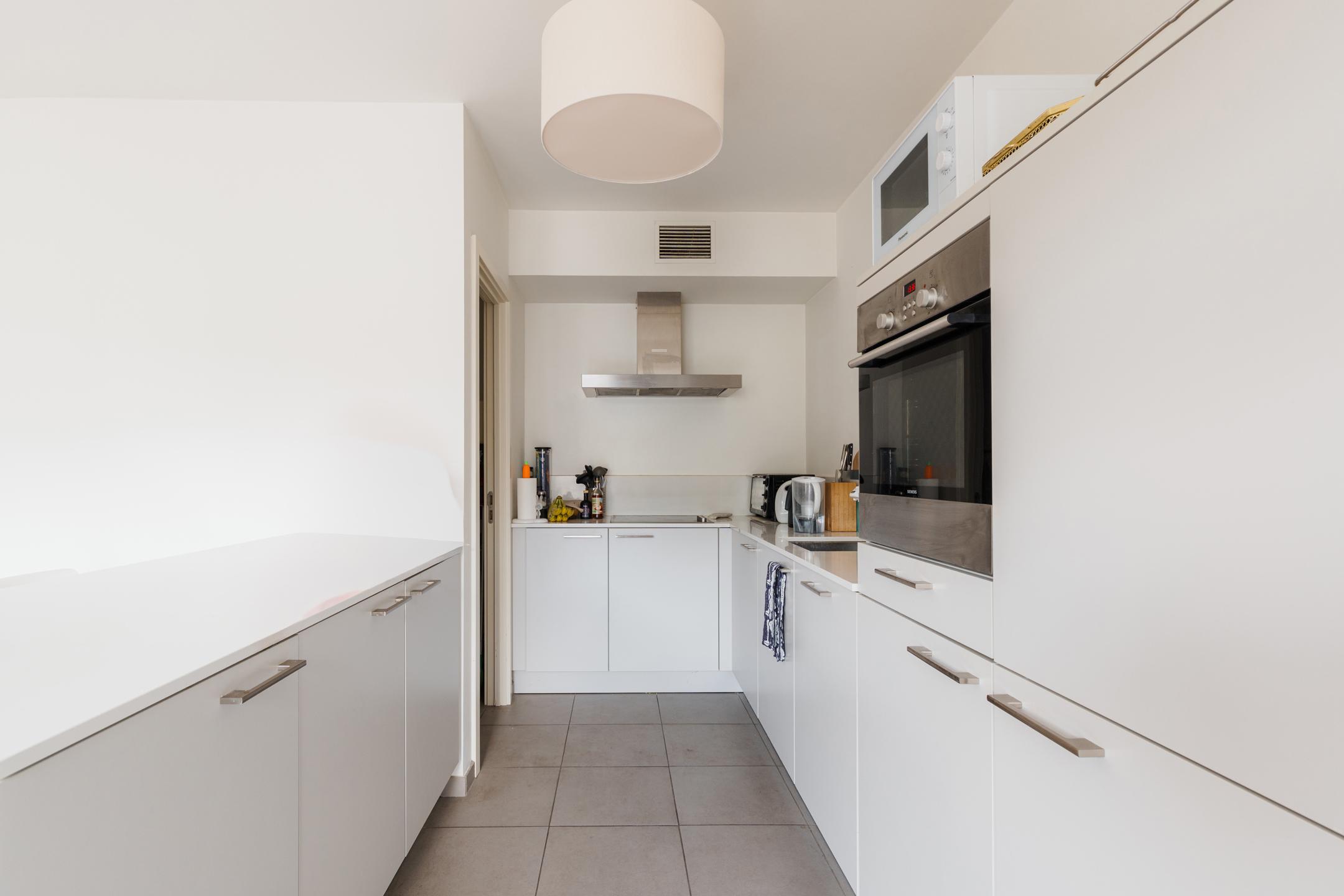 Close to the Mellaert Ponds and all amenities, in a luxury residence built in 2013, magnificent 2-bedroom/1-bathroom apartment of ± 107 m² with a ± 26 m² west-facing terrace. It is composed as follows: entrance hall with built-in cloakroom and guest toilet, bright living room of ± 42 m² with fully equipped open-plan kitchen and access to the terrace, 2 bedrooms (15 and 12 m²), one with built-in wardrobe, beautiful bathroom, technical room/equipped laundry room. Also: CPE C (123 kWh/m²/year), compliant electricity, concierge service, “SieMatic” kitchen with ‘Siemens’ appliances, numerous custom-made storage spaces from the “Camber” brand, double glazing throughout, individual gas boiler, videophone, solid parquet flooring, elevator, water softener, secure access, reinforced door, private cellar no. 25 and parking space no. 2 at an additional cost (+ €30,000), share 313/10,000 + 5 + 13, available immediately, previously rented at €2,322.72/month excluding charges. Magnificent apartment offering all the necessary comforts with high-quality materials and equipment! Don't wait to visit.