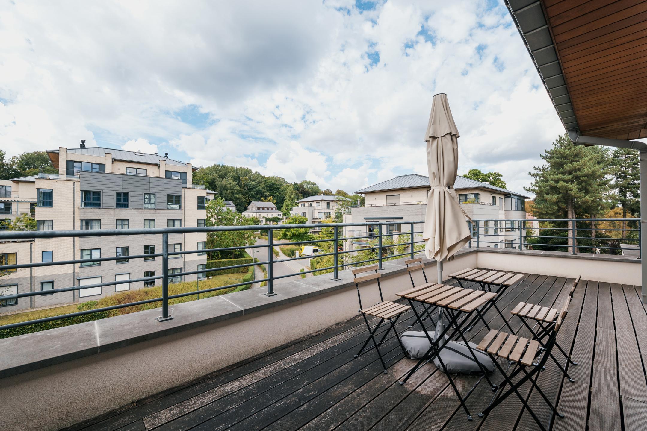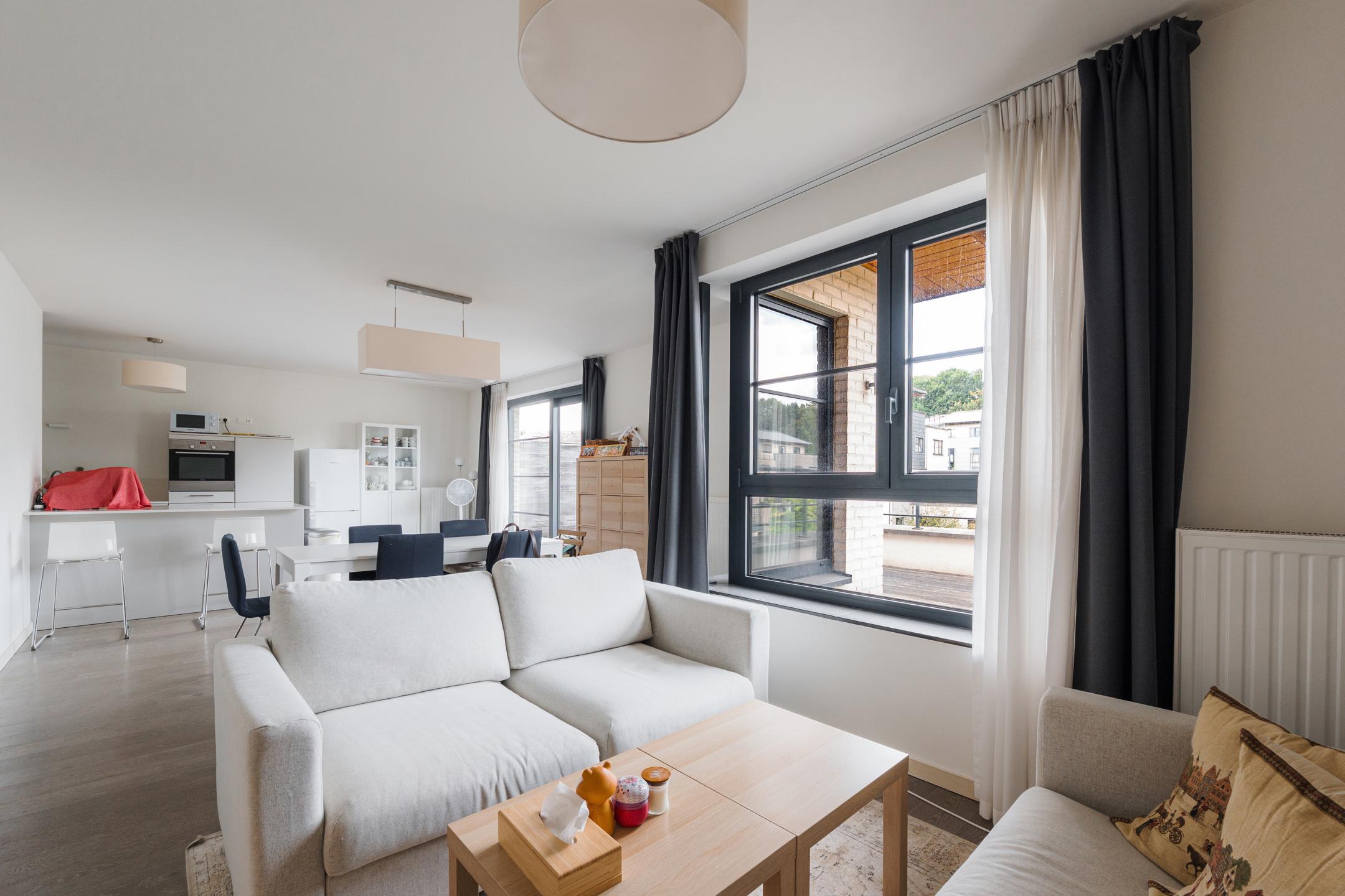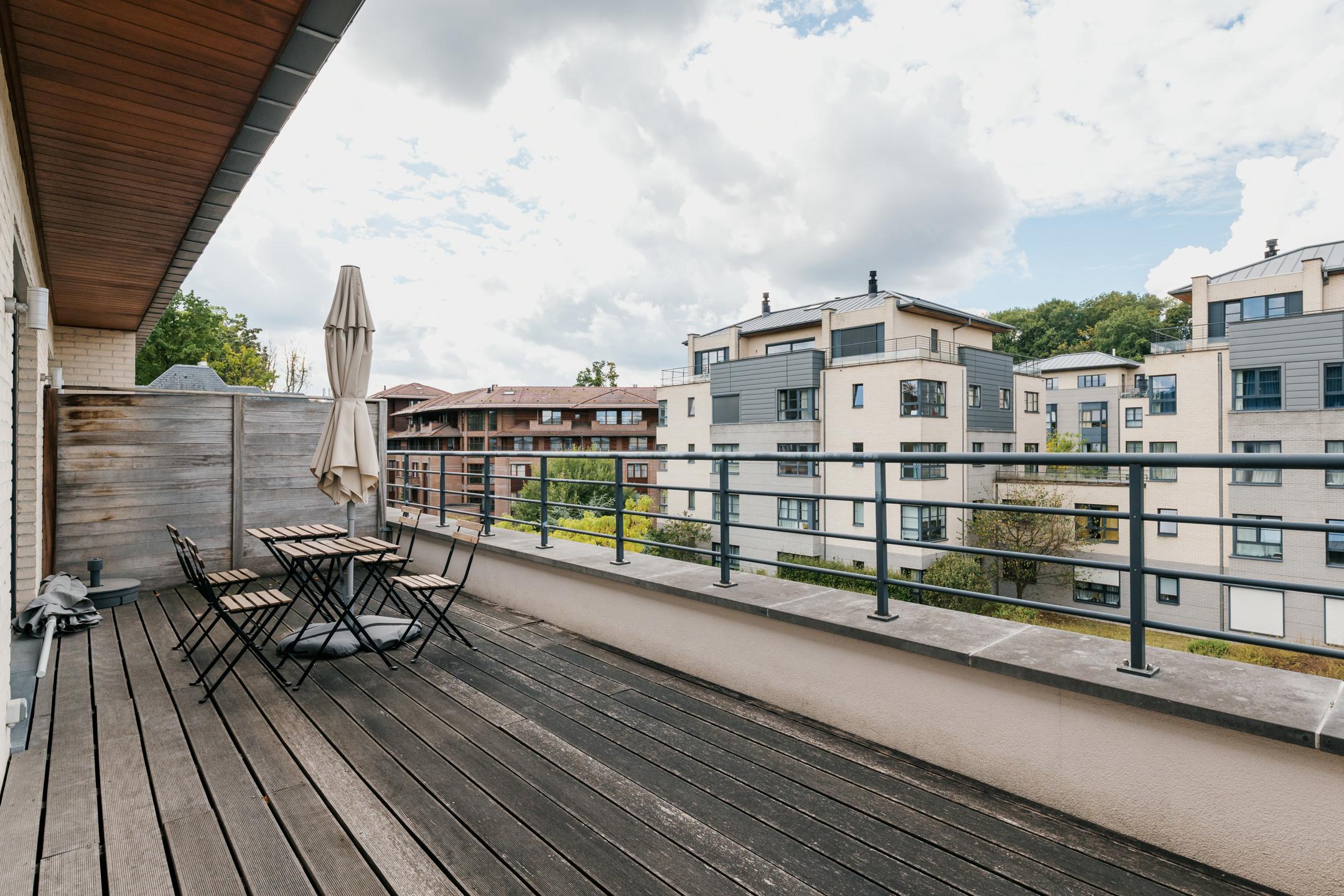 Close to the Mellaert Ponds and all amenities, in a luxury residence built in 2013, magnificent 2-bedroom/1-bathroom apartment of ± 107 m² with a ± 26 m² west-facing terrace. It is composed as follows: entrance hall with built-in cloakroom and guest toilet, bright living room of ± 42 m² with fully equipped open-plan kitchen and access to the terrace, 2 bedrooms (15 and 12 m²), one with built-in wardrobe, beautiful bathroom, technical room/equipped laundry room. Also: CPE C (123 kWh/m²/year), compliant electricity, concierge service, “SieMatic” kitchen with ‘Siemens’ appliances, numerous custom-made storage spaces from the “Camber” brand, double glazing throughout, individual gas boiler, videophone, solid parquet flooring, elevator, water softener, secure access, reinforced door, private cellar no. 25 and parking space no. 2 at an additional cost (+ €30,000), share 313/10,000 + 5 + 13, available immediately, previously rented at €2,322.72/month excluding charges. Magnificent apartment offering all the necessary comforts with high-quality materials and equipment! Don't wait to visit.
