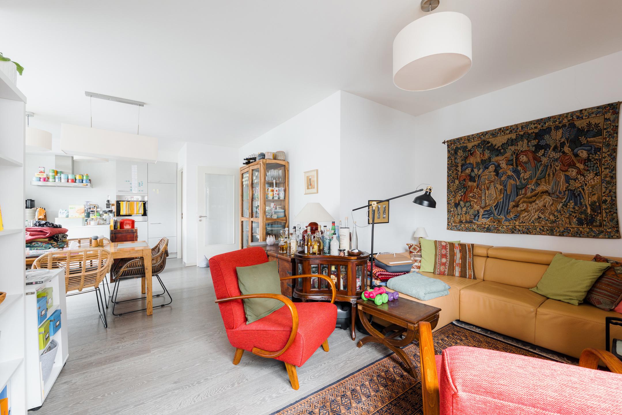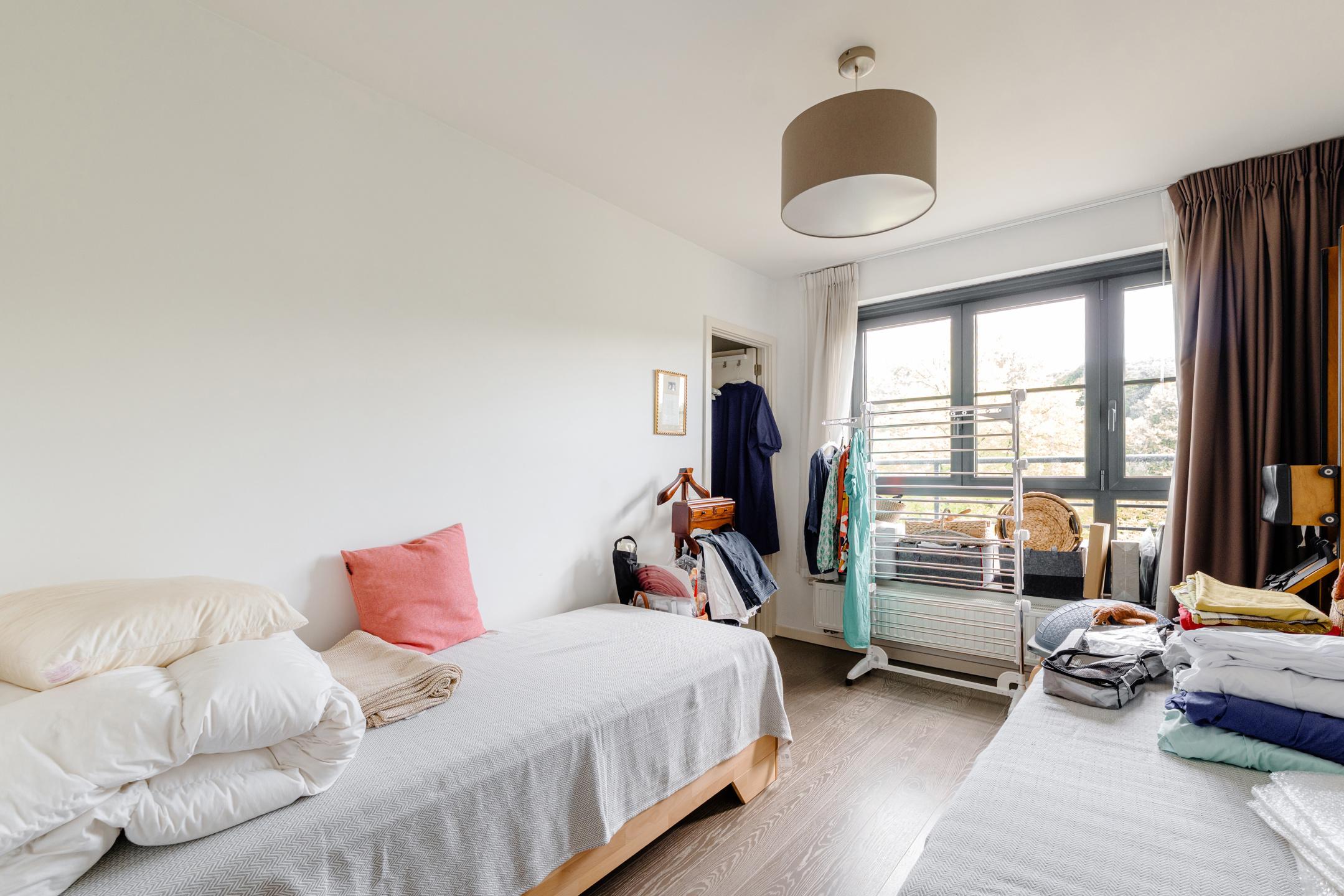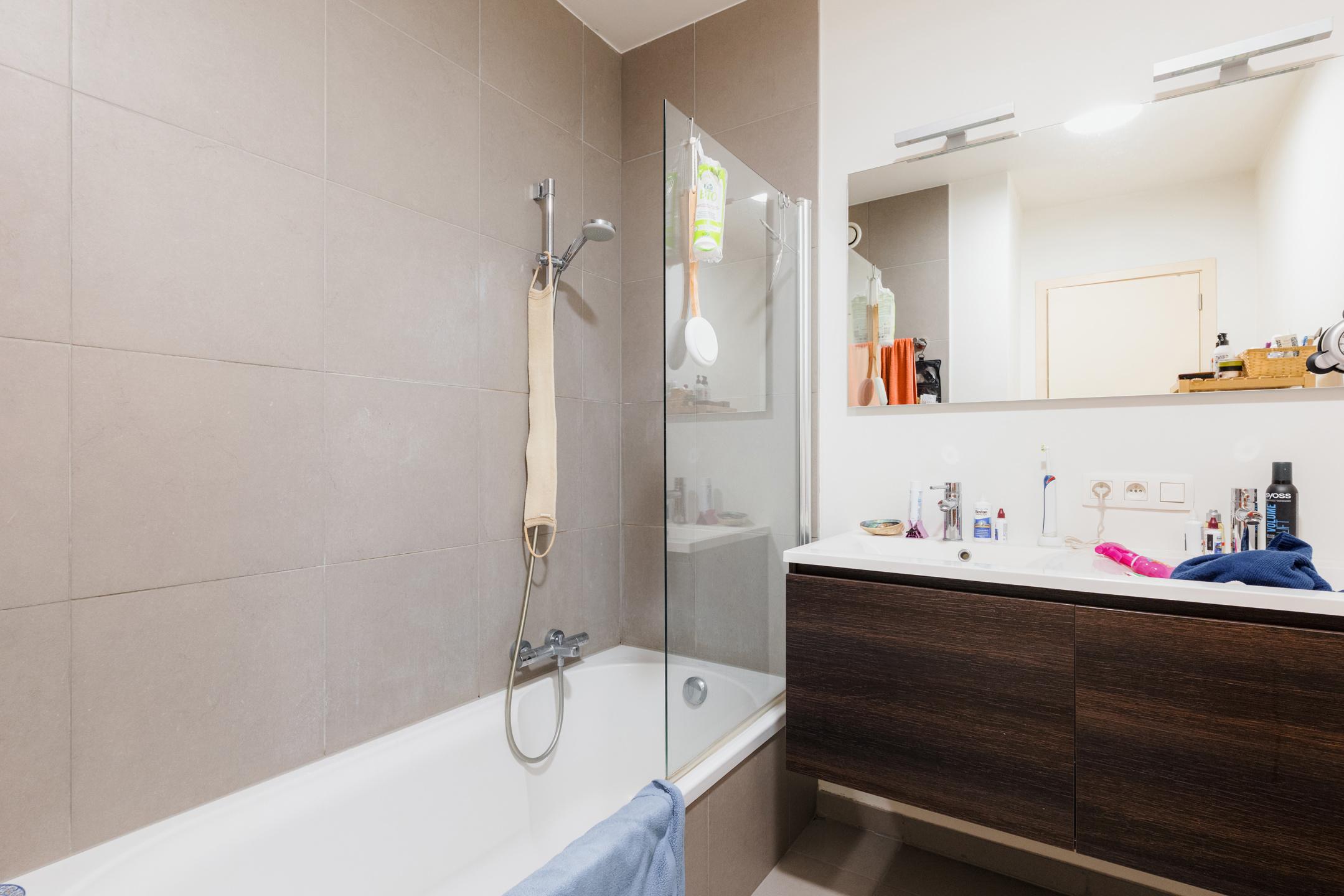 Close to the Mellaert Ponds and all amenities, in a luxury residence built in 2013, magnificent 2-bedroom/1-bathroom penthouse of ± 99 m² with 1 large terrace of 46 m². It is composed as follows: entrance hall with guest toilet, bright living room of ± 32 m² with fully equipped open-plan kitchen and access to the terrace, 2 bedrooms of ± 17 and 10 m², one with built-in wardrobes, beautiful bathroom, technical room/equipped laundry room. Also: PEB C (129 kWh/m²/year), compliant electricity, concierge service, “SieMatic” kitchen with ‘Siemens’ appliances, numerous custom-made storage spaces from the “Camber” brand, double glazing throughout, individual gas boiler, video intercom, solid parquet flooring, elevator, water softener, secure access, reinforced door, previously rented for €2,159.77/month (parking included), private cellar no. 20 and a parking space (no. 17) at an additional mandatory cost (+ €30,000), share 295/10,000 + 4 + 13, free at the time of sale. Magnificent penthouse offering all the necessary comforts with high-quality materials and equipment! Don't wait to visit.