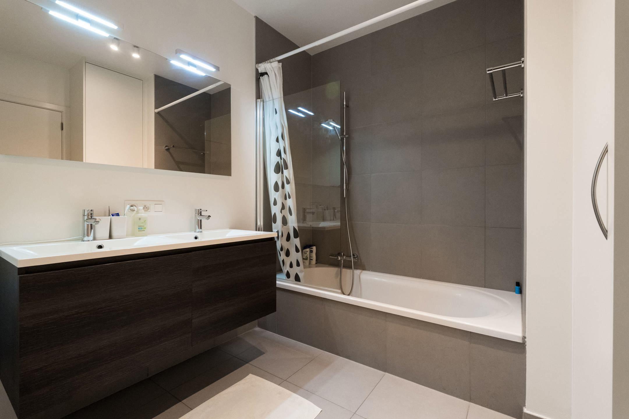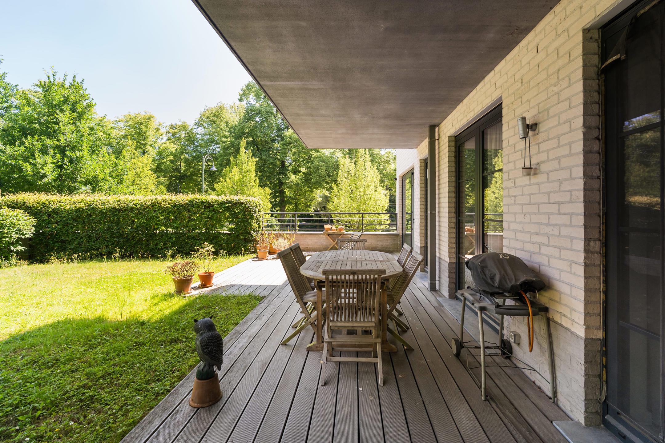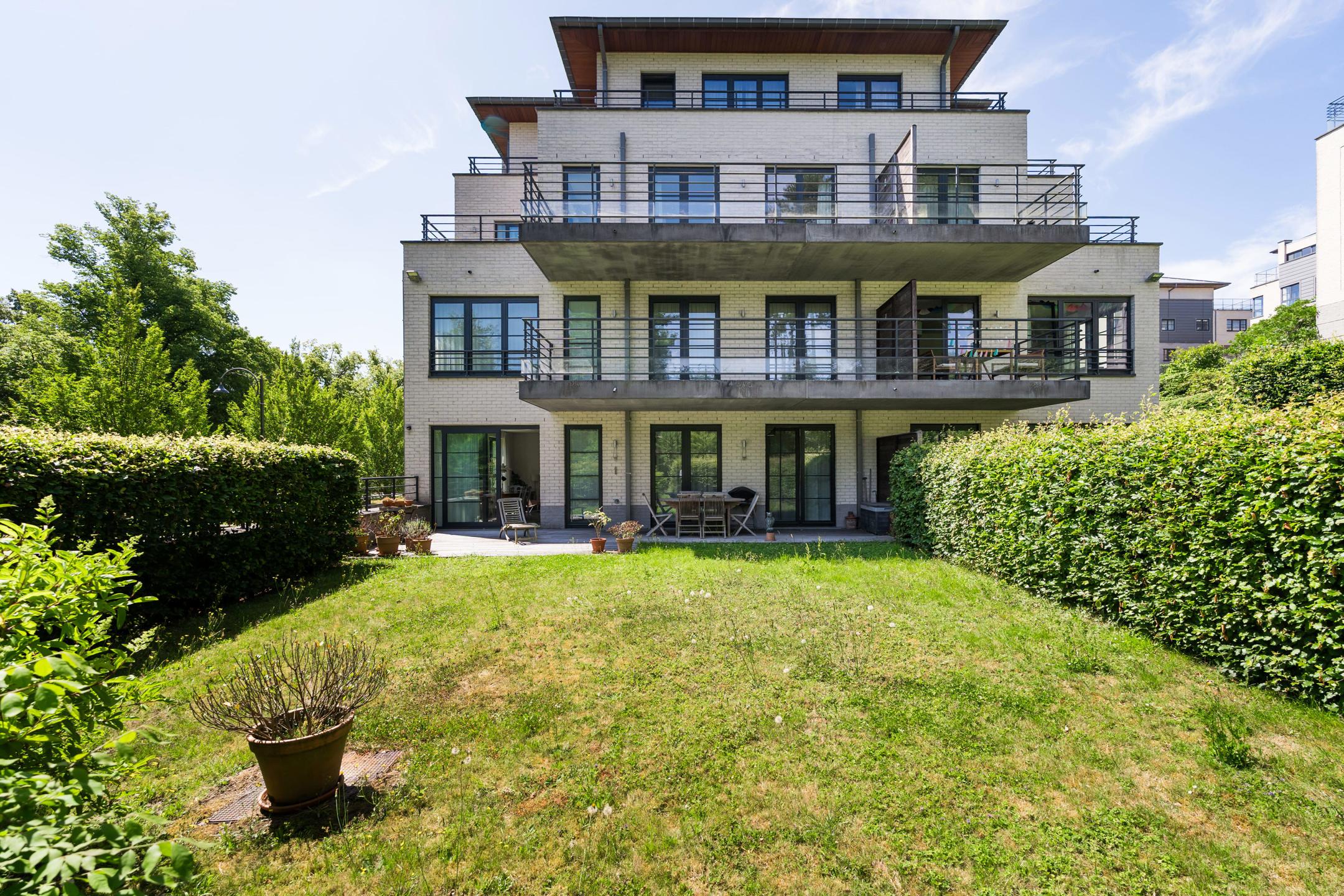 Close to the Mellaert Ponds and all amenities, in a luxury residence built in 2013, magnificent 2-bedroom/1-bathroom apartment of ± 91 m² with beautiful private garden and terrace. It comprises: entrance hall with guest toilet, bright living room of ± 34 m² with fully equipped open-plan kitchen and access to the terrace and garden, 2 bedrooms of ± 14 and 10 m², one with built-in wardrobes, beautiful bathroom, technical room/equipped laundry room. Also: PEB C (142 kWh/m²/year), compliant electricity, concierge service, “SieMatic” kitchen with ‘Siemens’ appliances, numerous custom-made storage spaces from the “Camber” brand, double glazing throughout, individual gas boiler, video intercom, solid parquet flooring, elevator, water softener, secure access, reinforced door, currently rented at €1,736.08/month, private cellar no. 14 and a parking space at an additional mandatory cost (+ €30,000), share 335/10,000 + 4 + 13. Magnificent apartment offering all the necessary comforts with high-quality materials and equipment! Don't wait to visit.